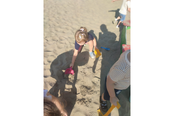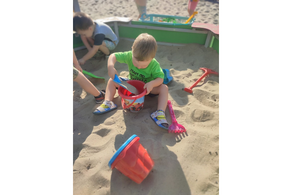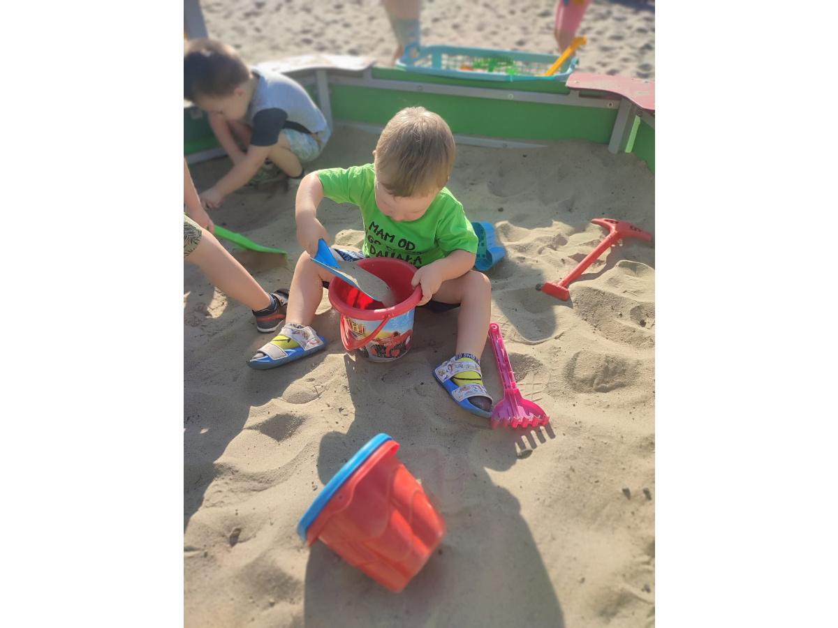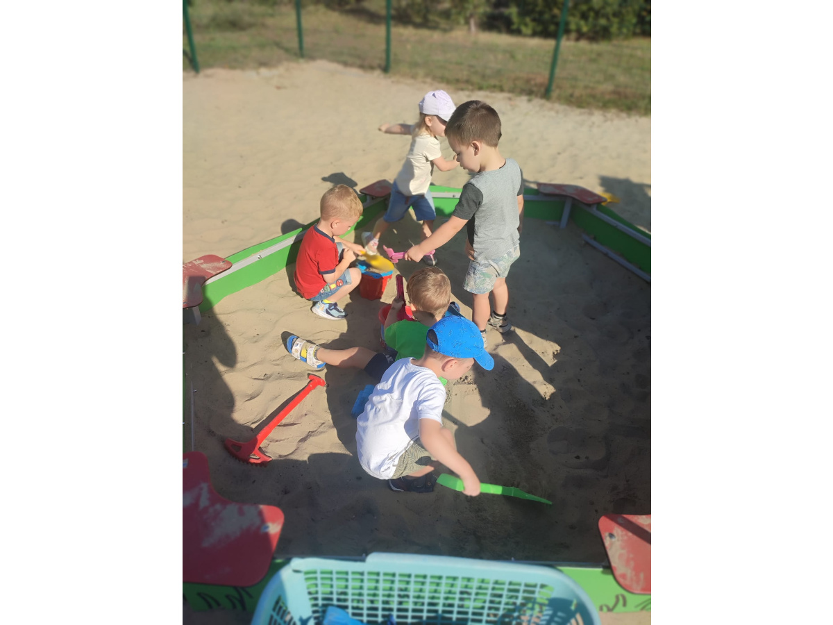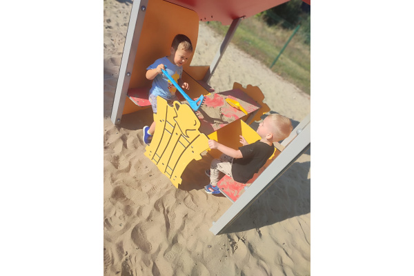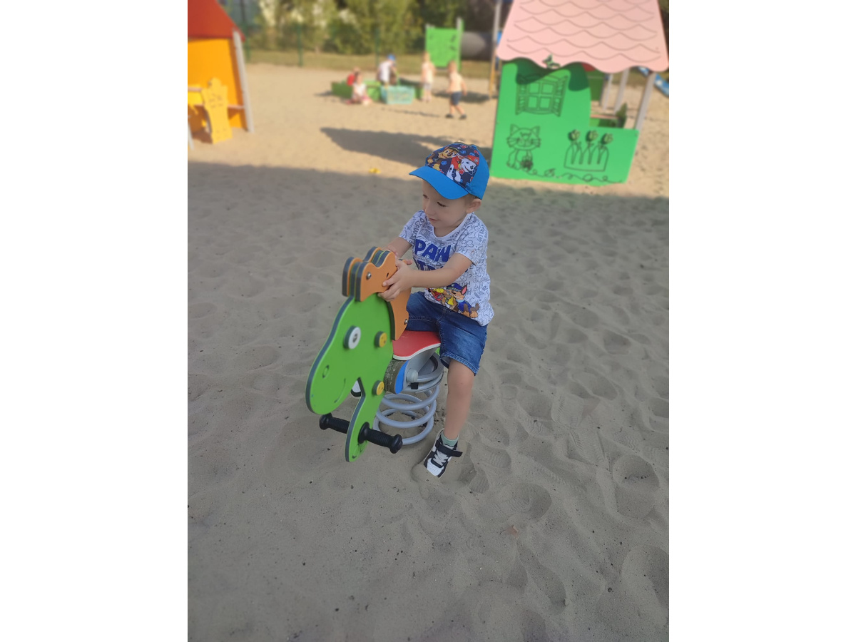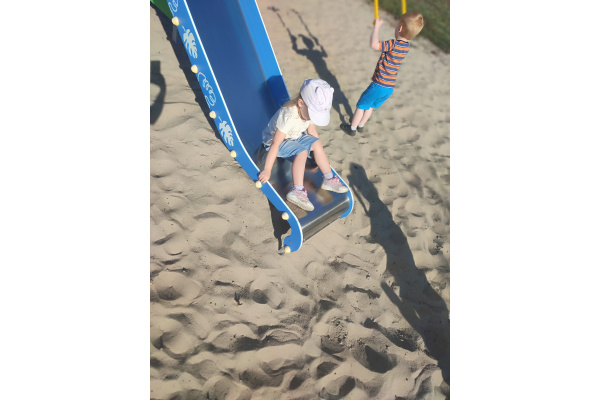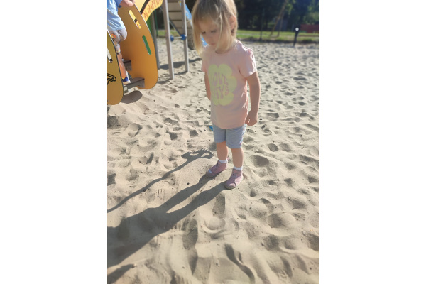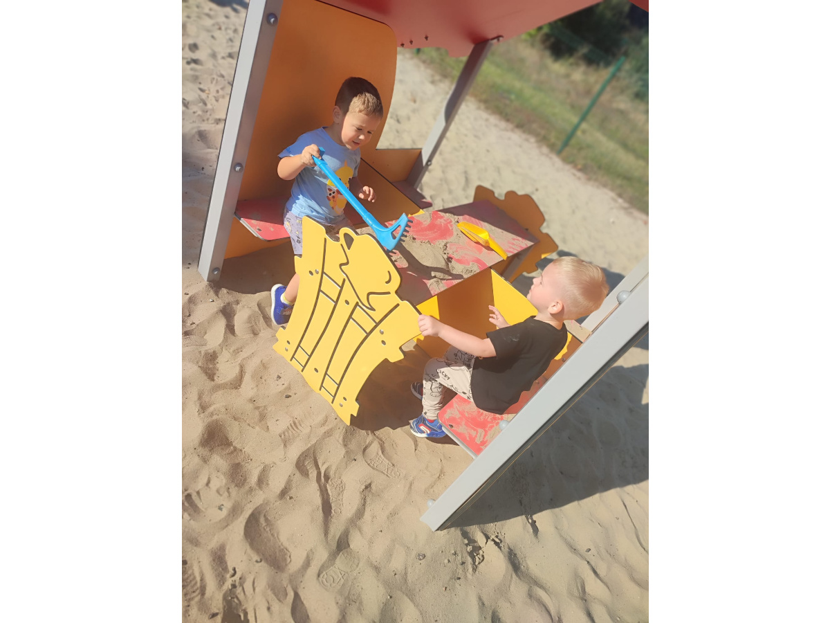 Dzieci z entuzjazmem poznawały nowe miejsce, korzystając ze zjeżdżalni i piaskownicy. Wspólna zabawa sprzyjała integracji grupy, uczyła dzielenia się i współpracy. Przedszkolaki wróciły do sali z uśmiechami na twarzach i miłymi wspomnieniami.