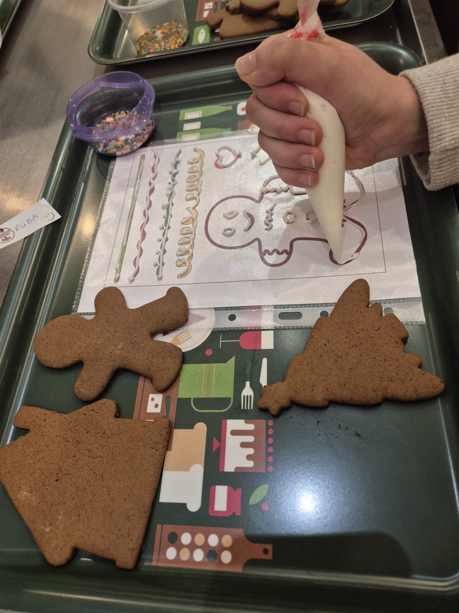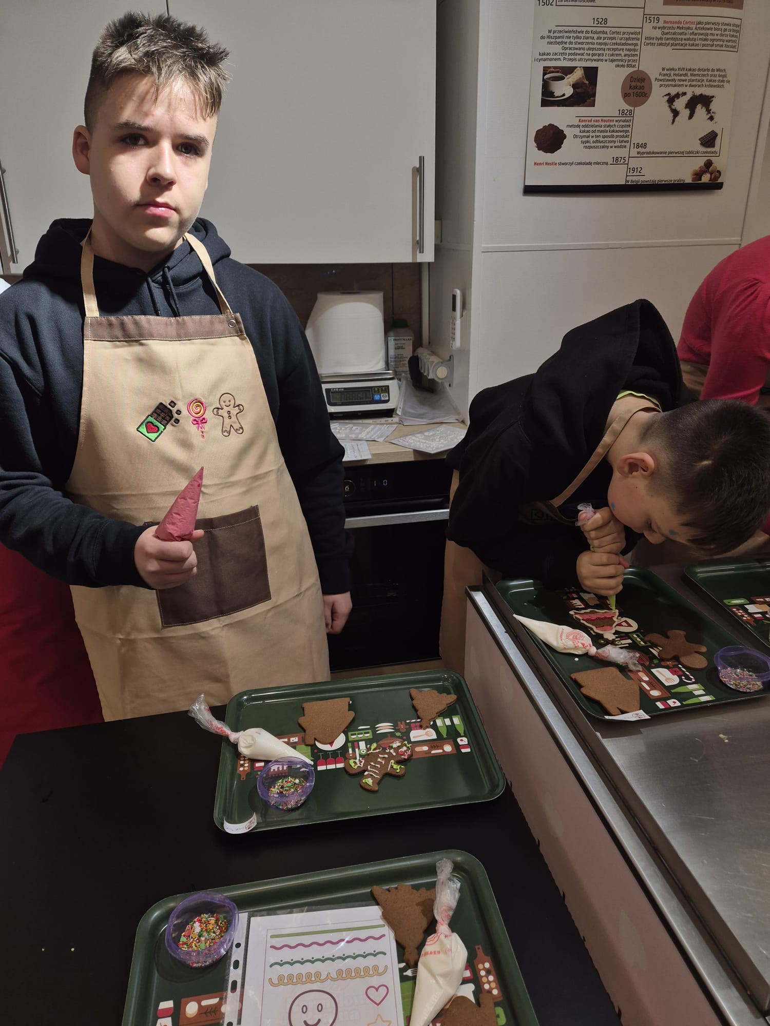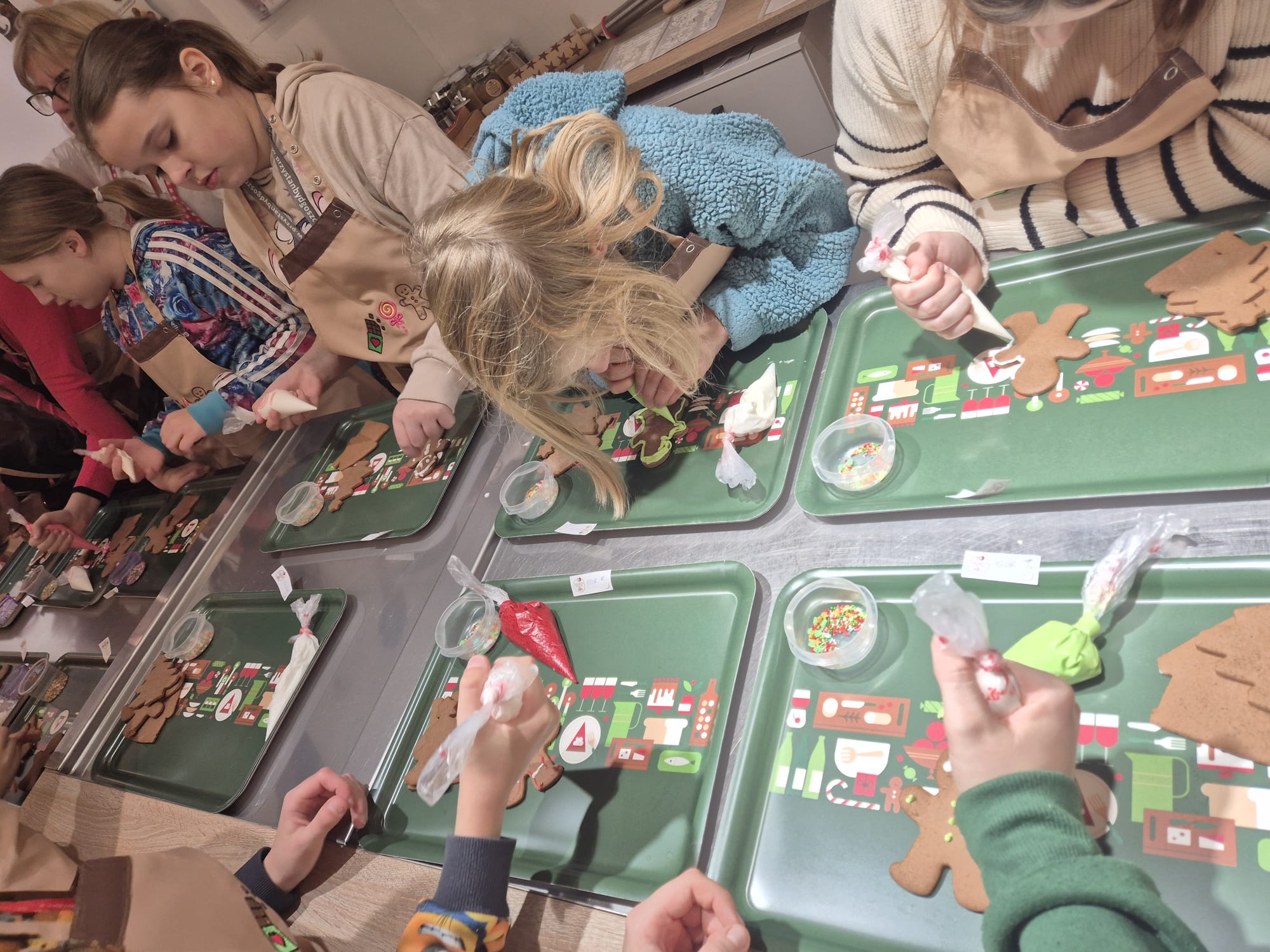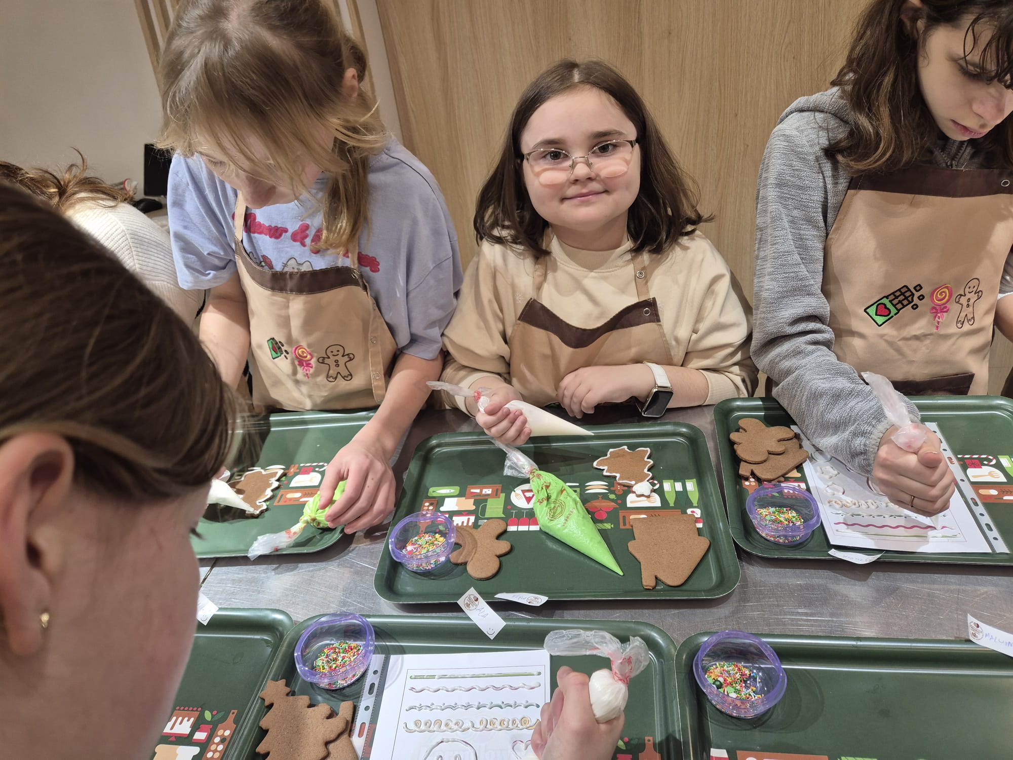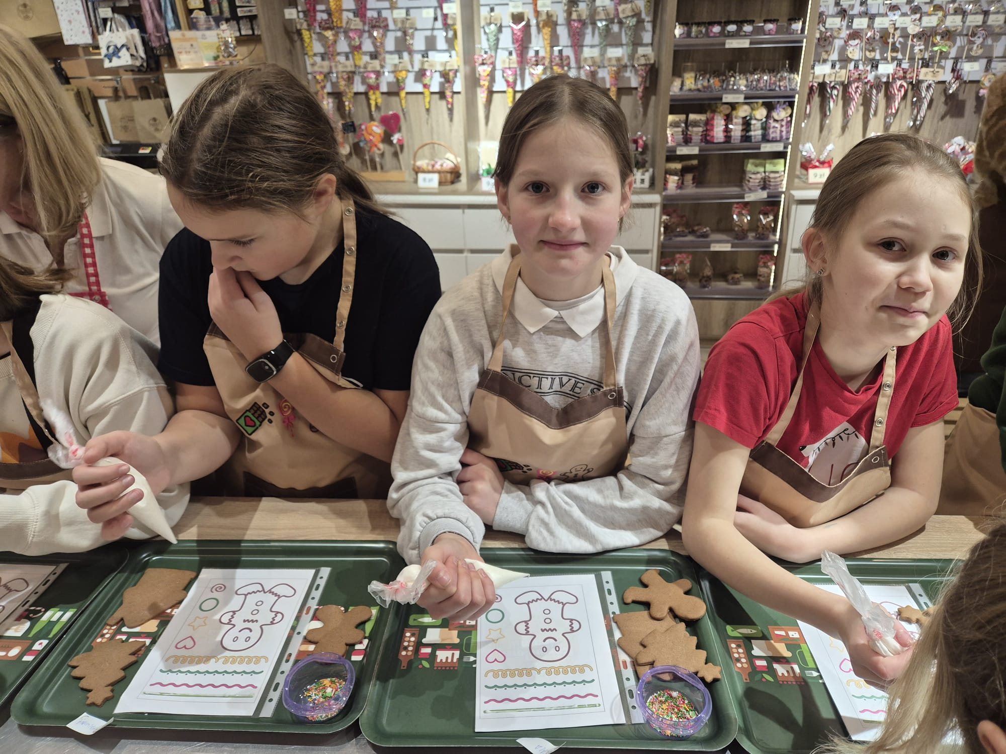 17 grudnia klasa 5a wybrała się na wycieczkę do Manufaktury Słodyczy „Karmelowa Kraina”. Uczestniczyliśmy w warsztatach, w trakcie których dowiedzieliśmy się, jak wygląda proces produkcyjny pierników. Panie w ciekawy sposób opowiedziały historię piernikarstwa. Uczniowie ręcznie dekorowali pierniki, które zabrali do domu. Każdy swoje pierniki dekorował z ogromną starannością i zaangażowaniem: lukrem królewskim, posypkami. Bardzo nam się podobało – było kolorowo, pysznie i mega ciekawie.