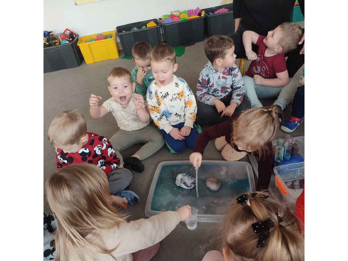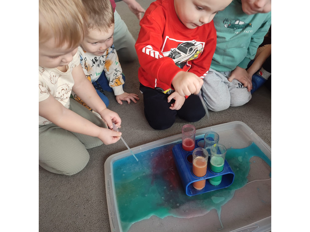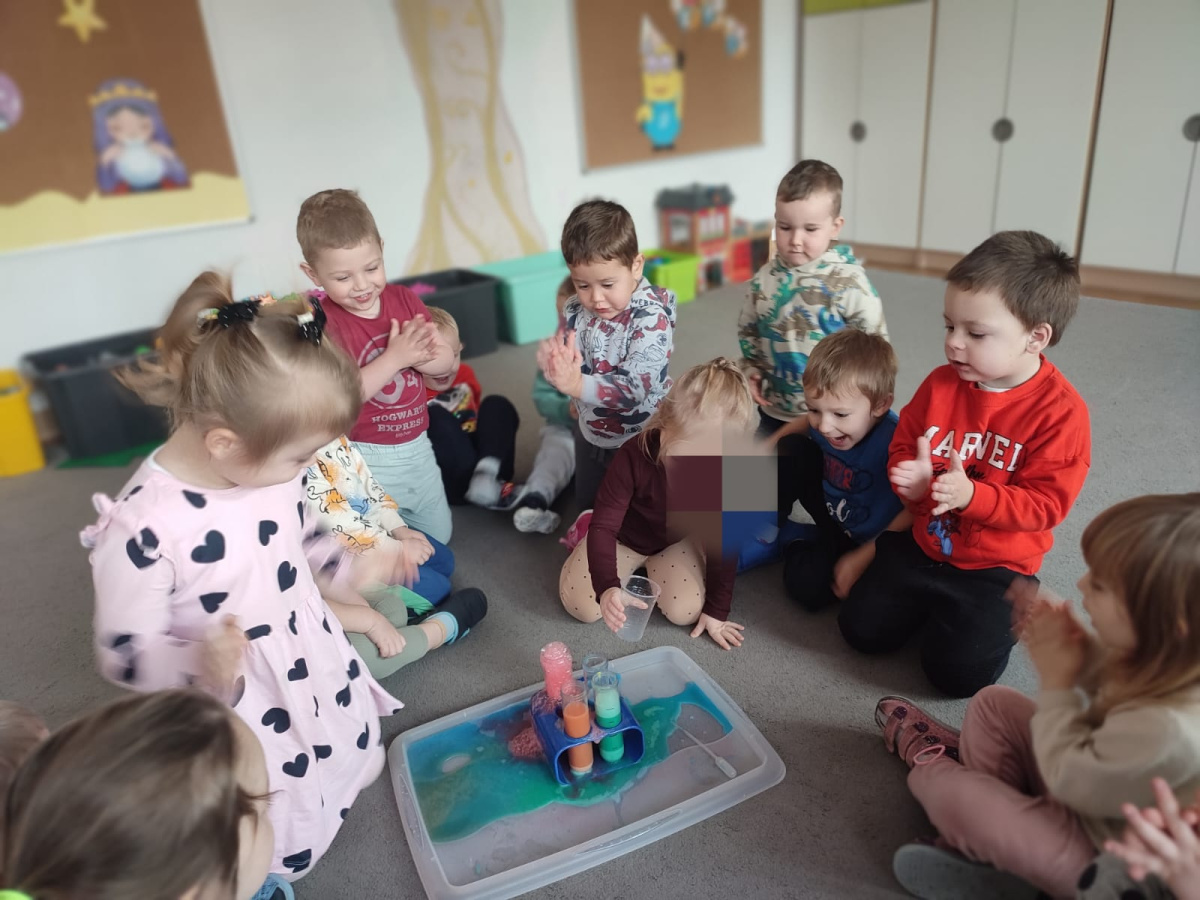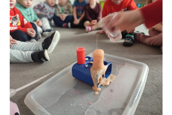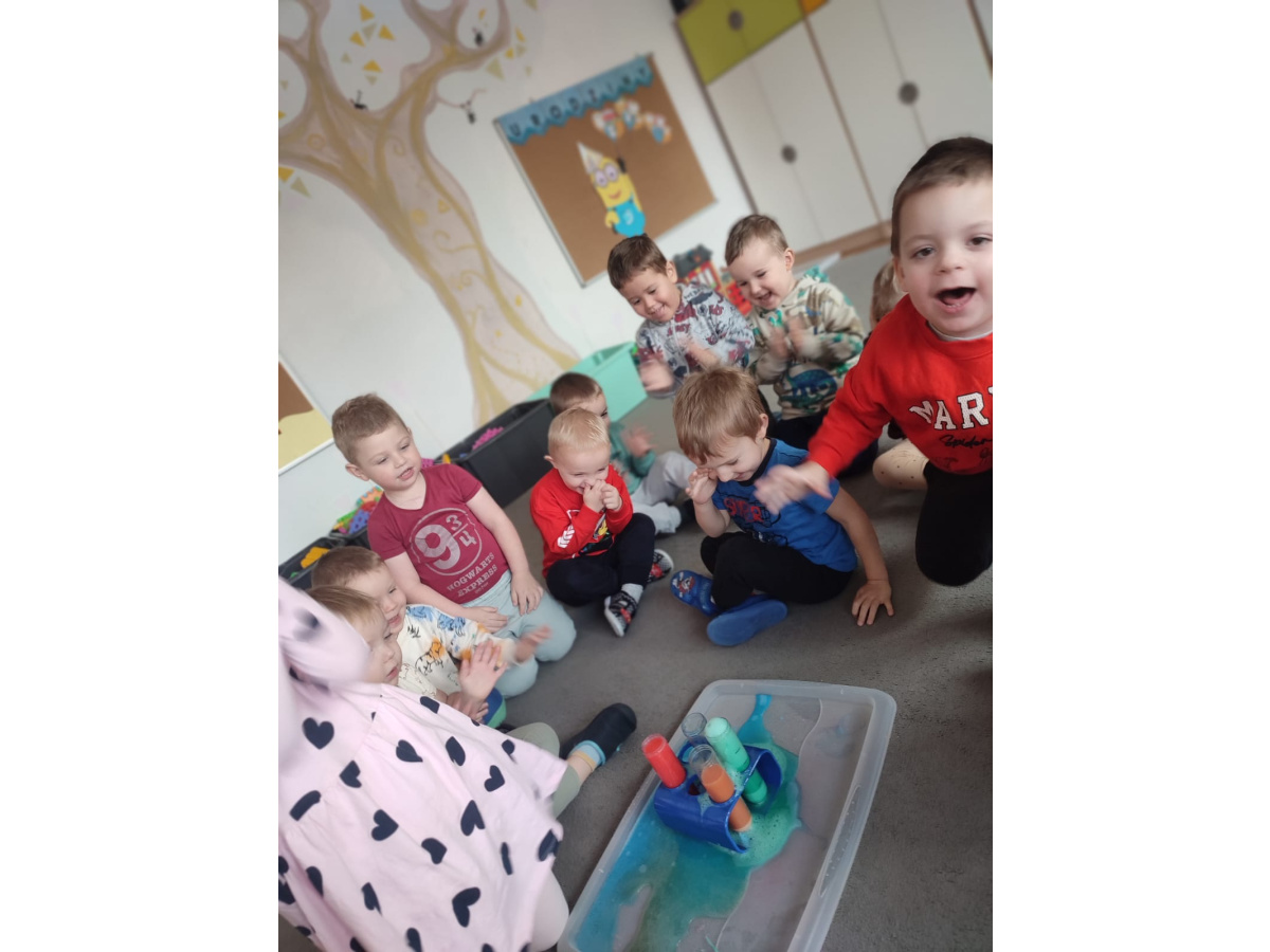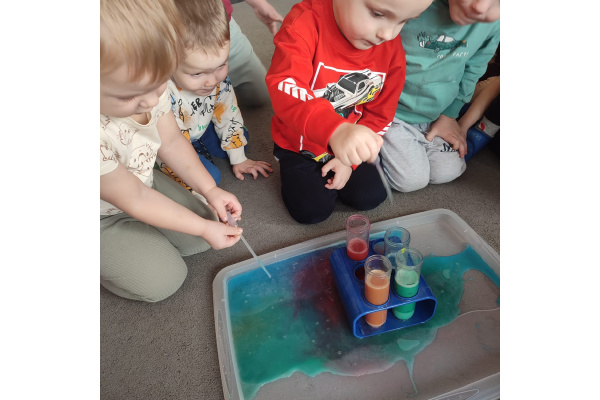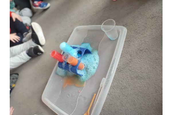 Dzieci uczestniczyły w zabawach badawczych, podczas których mogły obserwować zmiany zachodzące w prostych doświadczeniach.