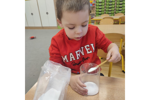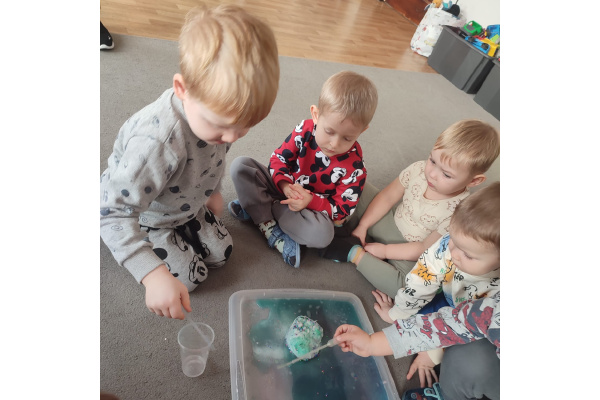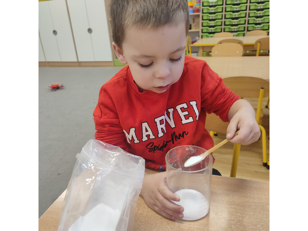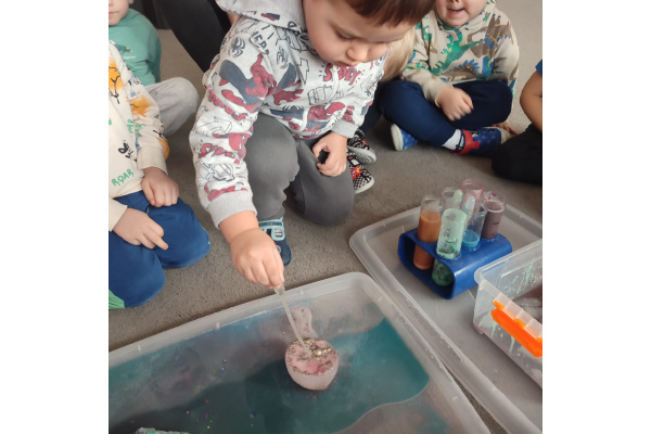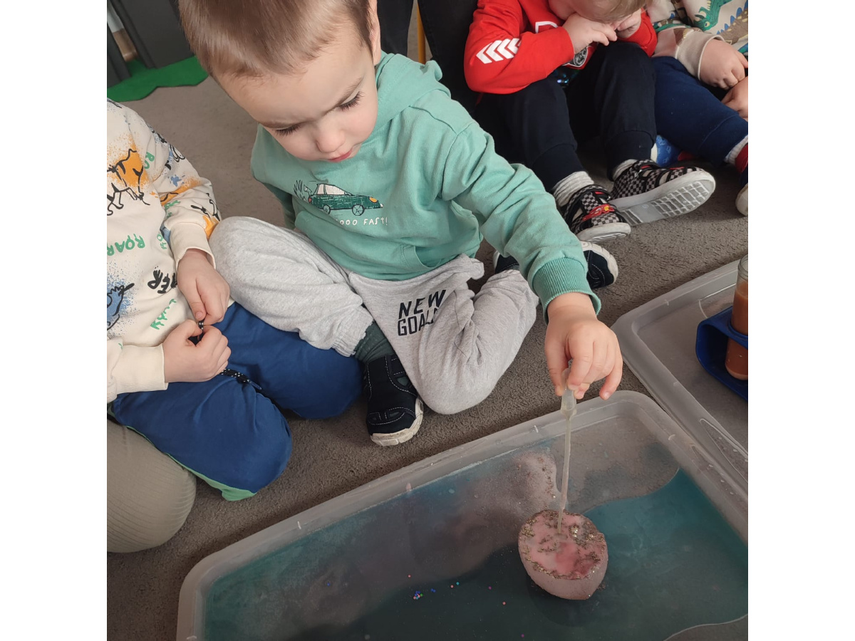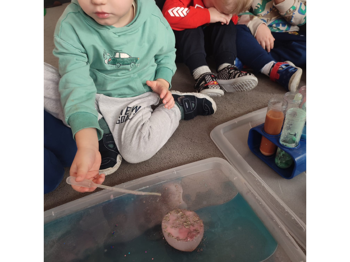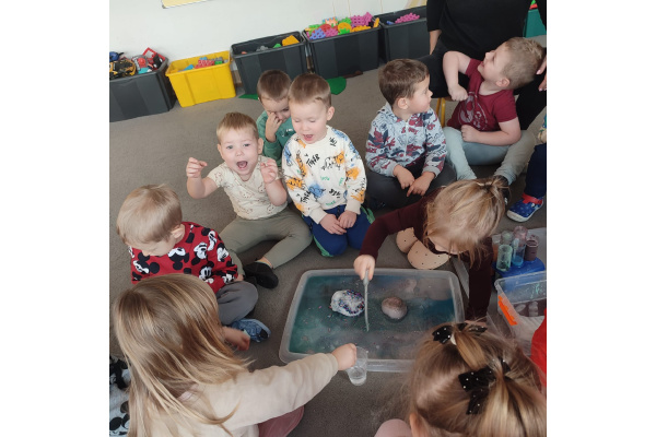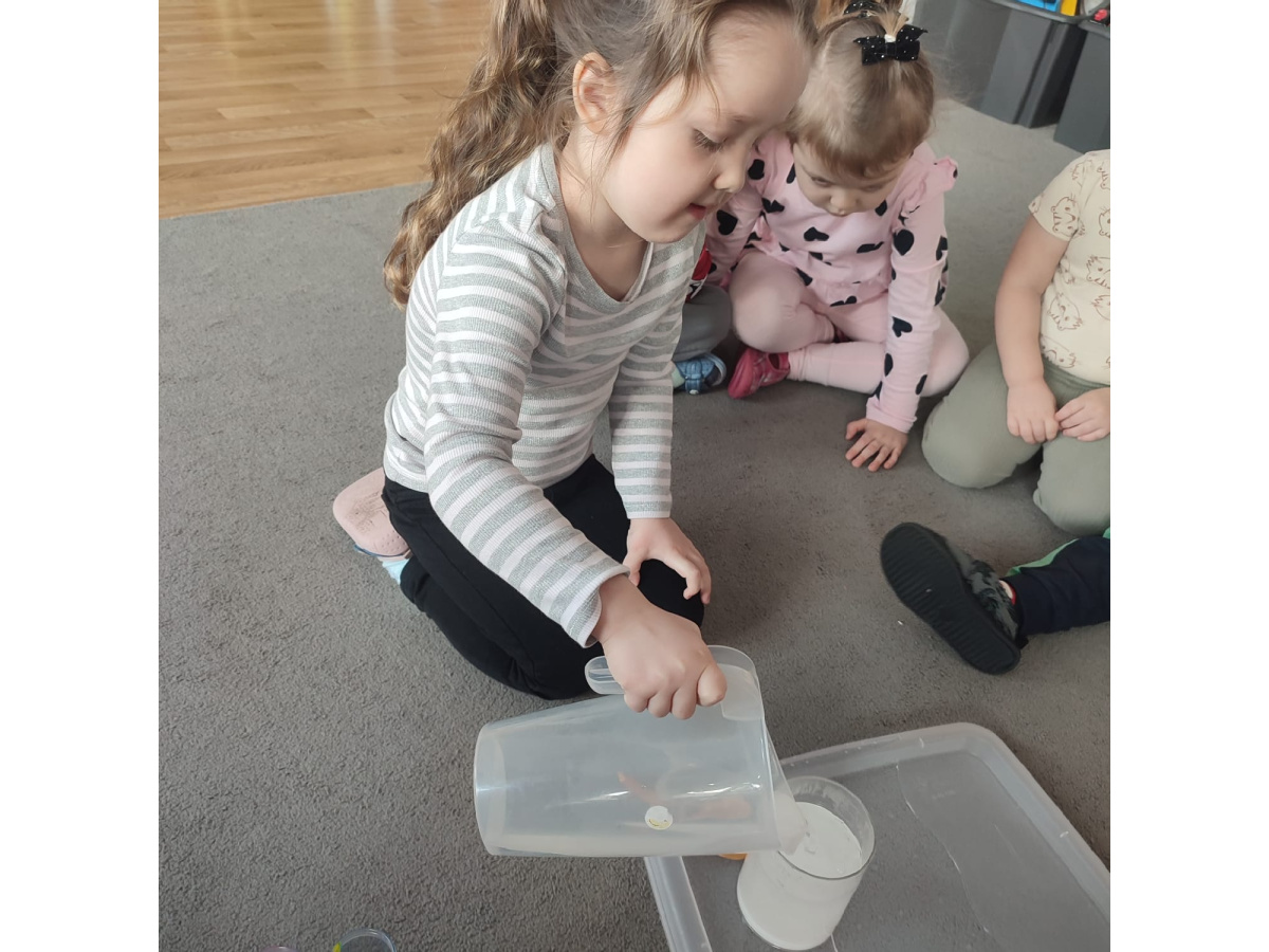 Dzieci uczestniczyły w zabawach badawczych, podczas których mogły obserwować zmiany zachodzące w prostych doświadczeniach.