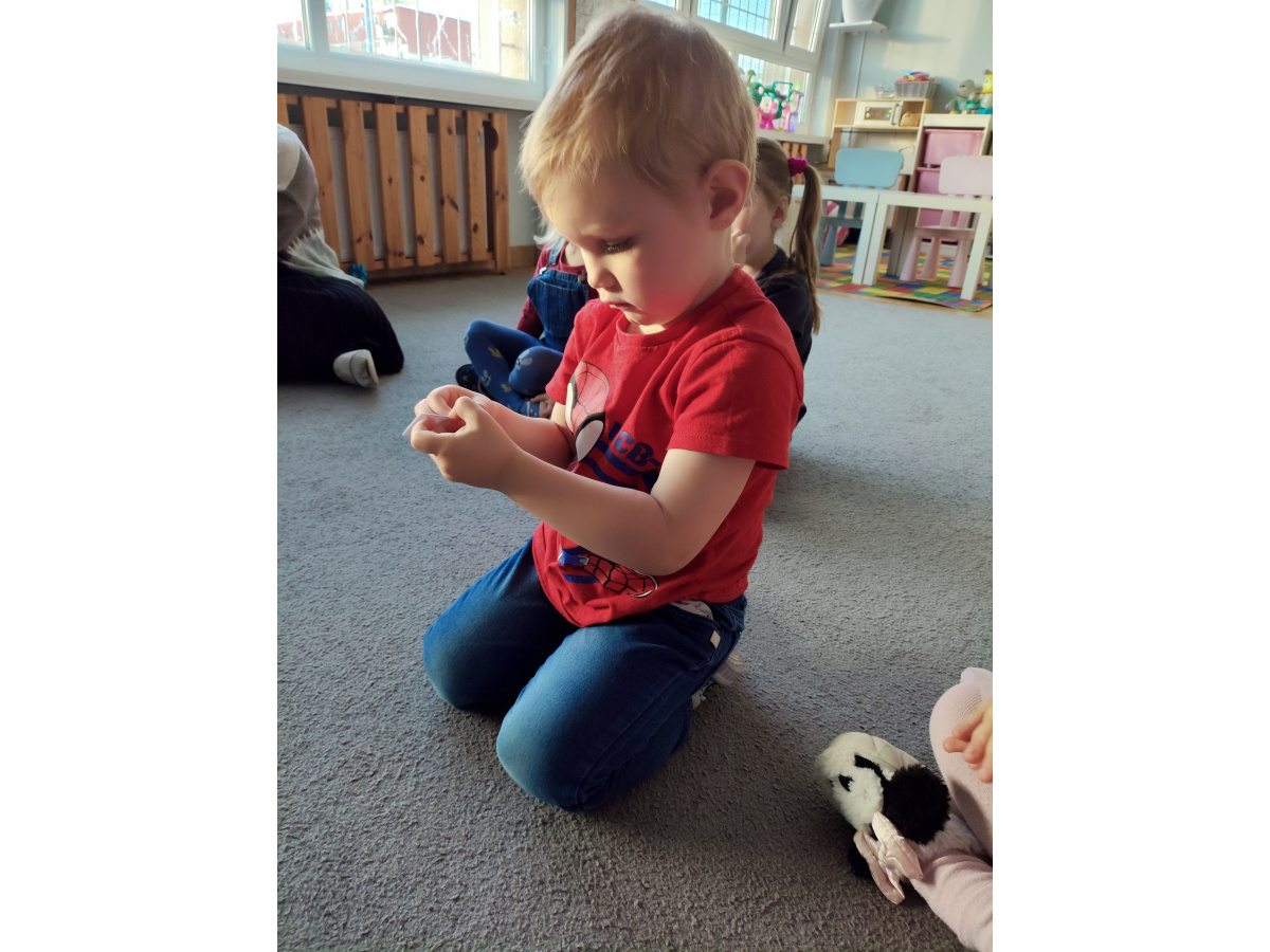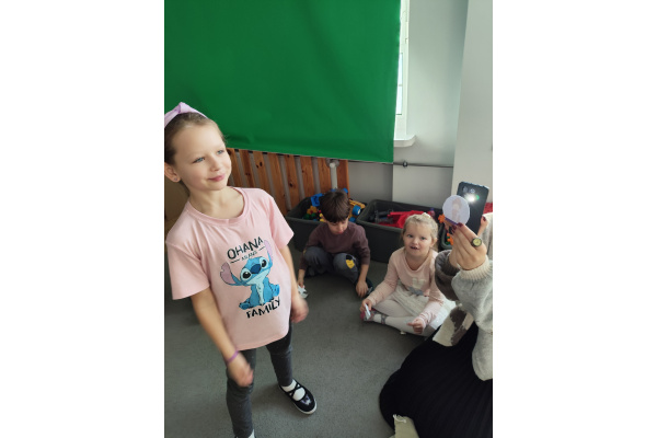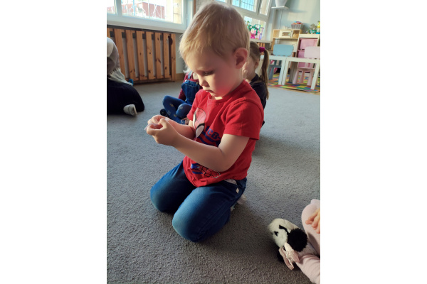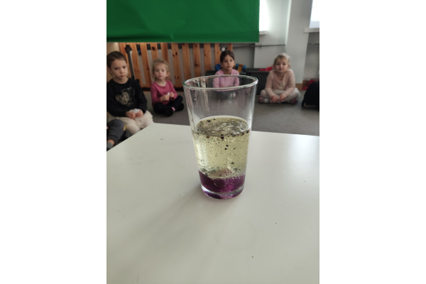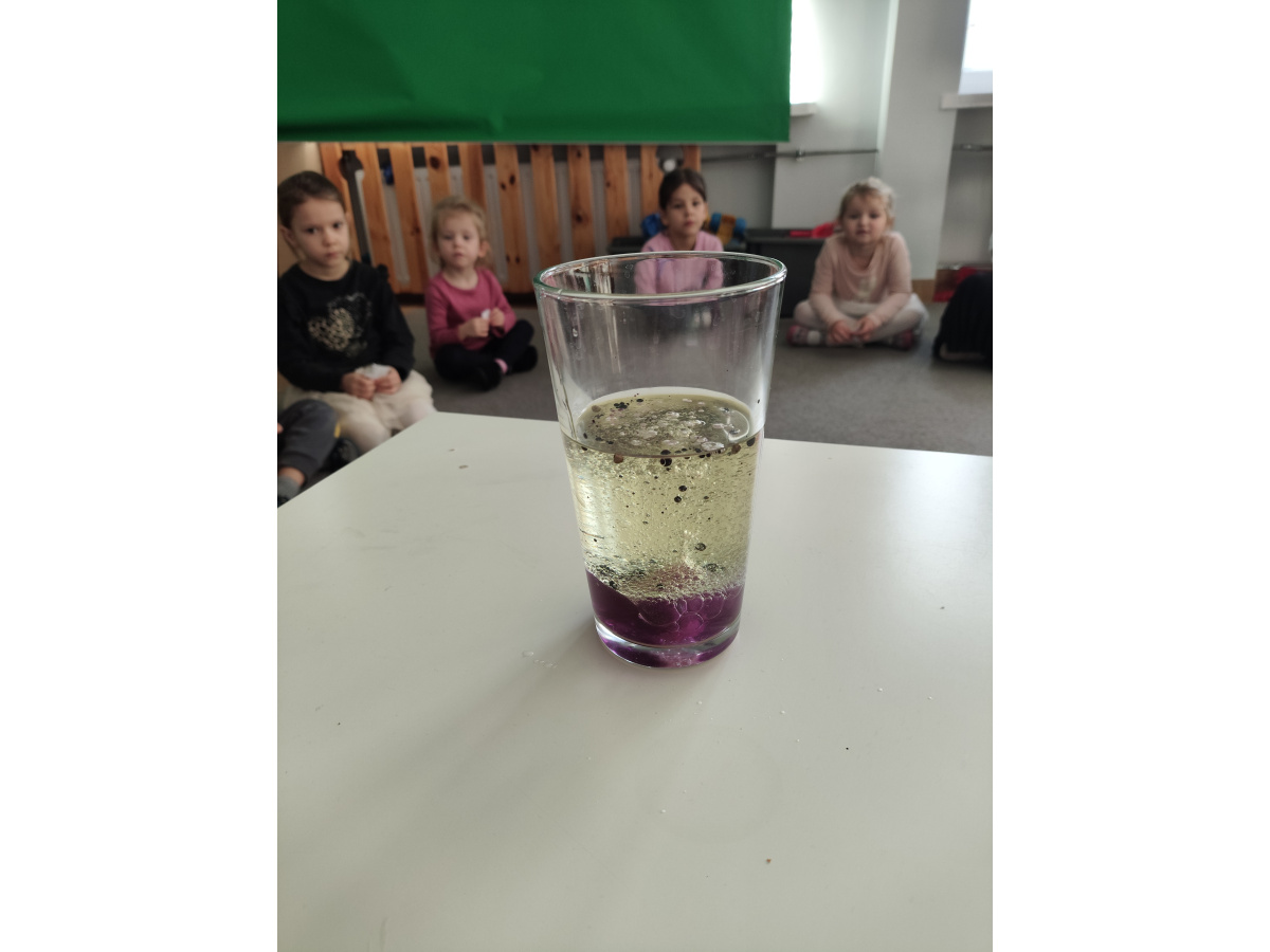 Nie zabrakło również zabawy z imionami – maluchy poznały imiona swoich „przyszłych połówek”, co wywołało wiele śmiechu i ciekawych rozmów. Największą atrakcją była jednak magiczna lawa, którą dzieci stworzyły własnoręcznie, obserwując niezwykłe efekty i ucząc się, jak działa prosty eksperyment.