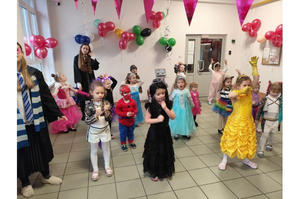We wtorek, w naszym przedszkolu odbył się wyjątkowy Bal Karnawałowy, na który dzieci czekały z ogromną niecierpliwością. Tego dnia przedszkole zamieniło się w bajkową krainę pełną księżniczek, superbohaterów, zwierzątek i wielu innych fantastycznych postaci.