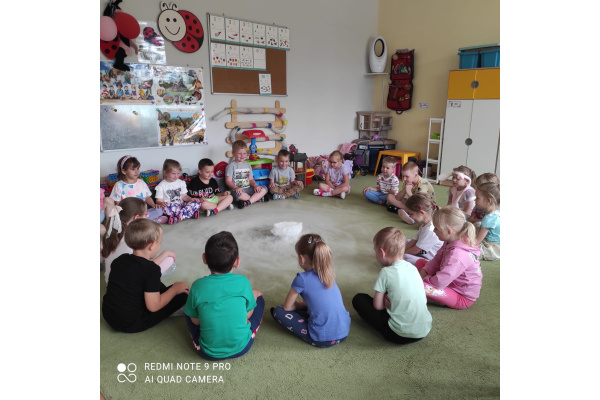 Biedronki przedstawiły Inscenizacje wiersza "Na straganie", dla społeczności przedszkolnej, jako promowanie zdrowego stylu życia, zjadania zdrowych posiłków, surówek, zachęcały dzieci do ruchu dla zdrowia poprzez wspólny taniec.