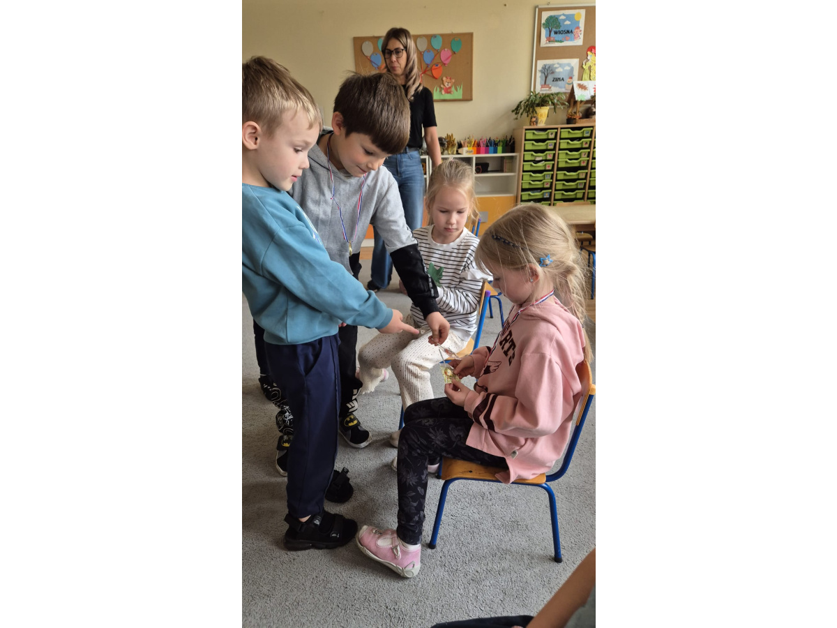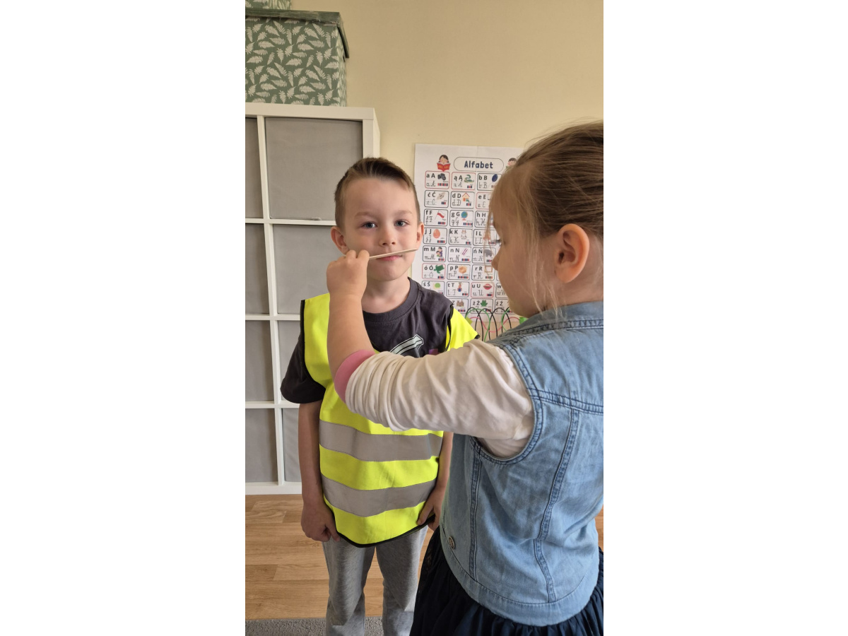 Nie zabrakło też zabaw z przymrużeniem oka – dziewczynki miały za zadanie „ogolić brodę” chłopcom, z użyciem patyczków.Śmiechu było co niemiara!