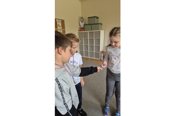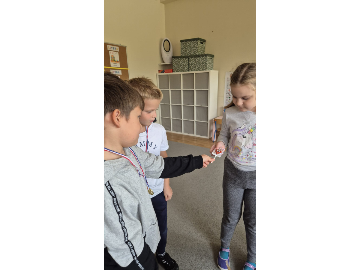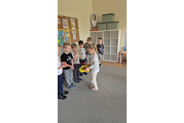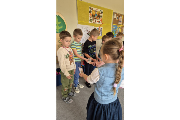 Na zakończenie dnia chłopcy otrzymali prezenty od dziewczynek, a w ramach podziękowania obdarowali koleżanki słodkimi lizakami.