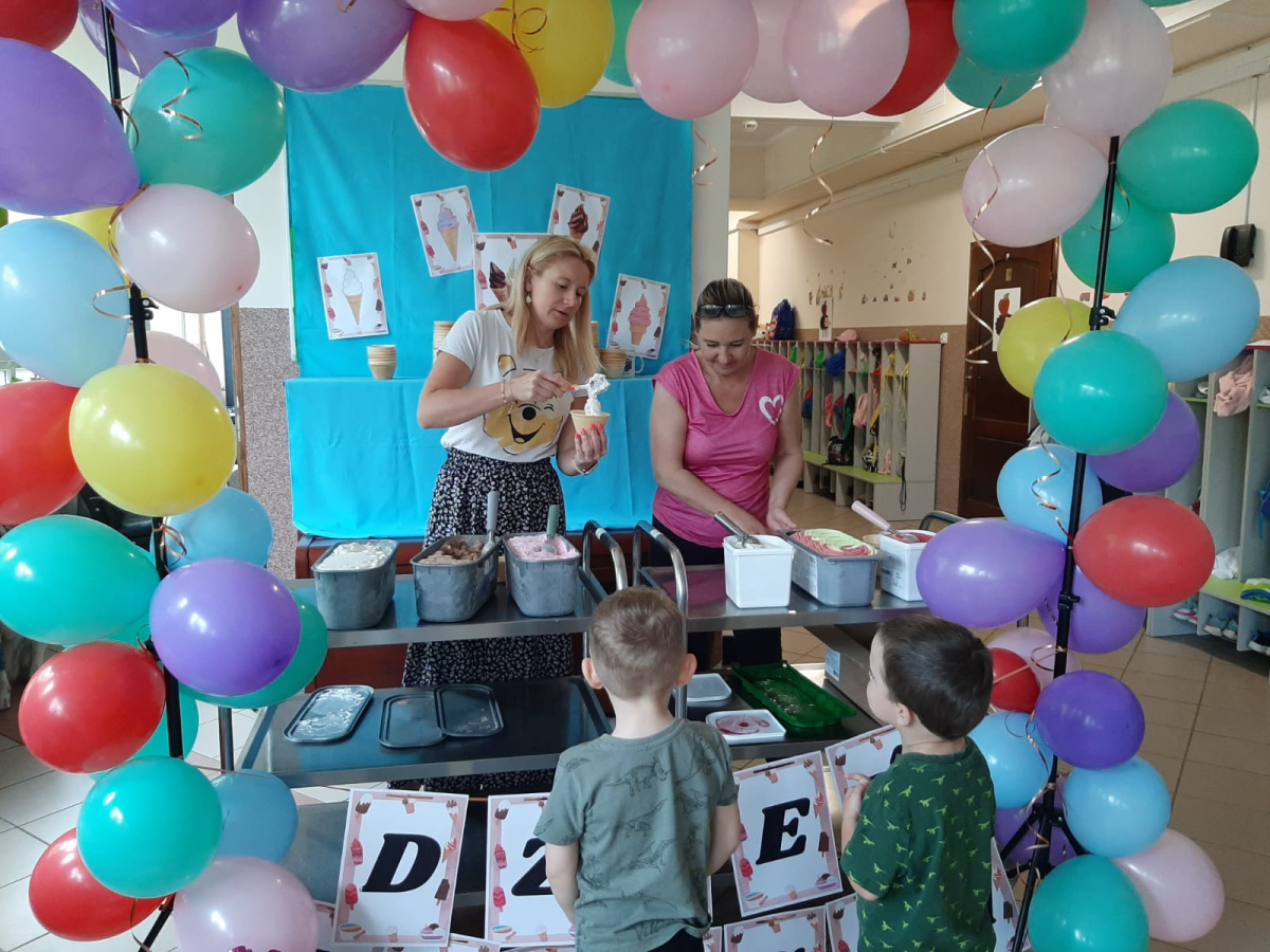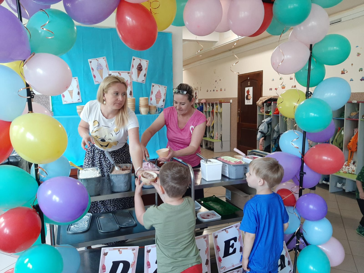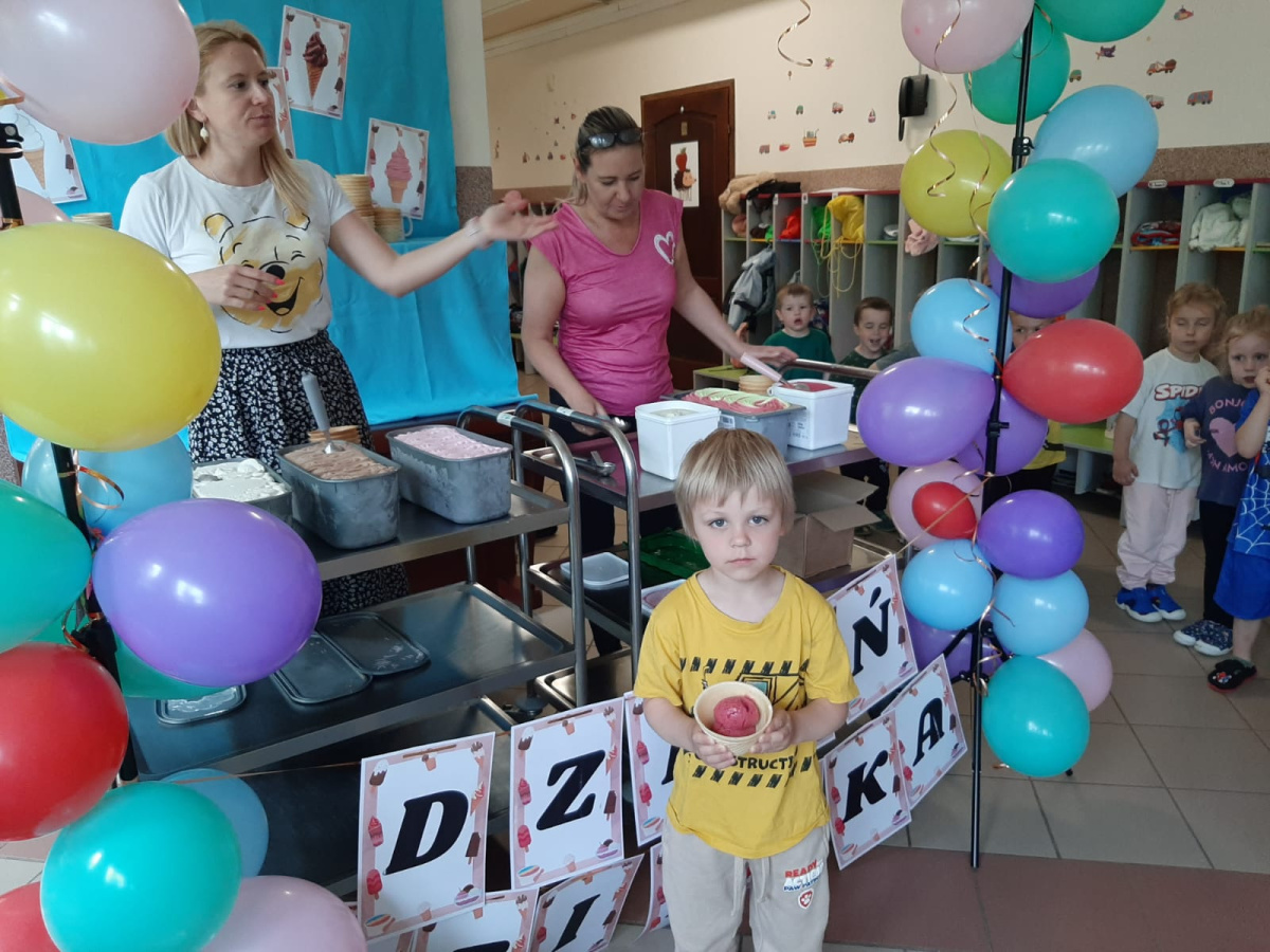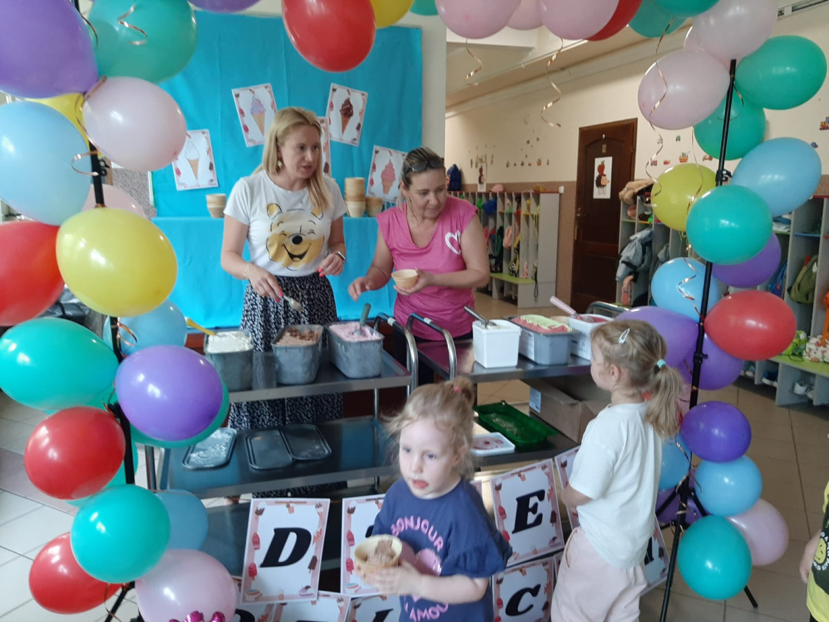 Dnia 2 czerwca w naszym przedszkolu obchodziliśmy ważne święto jakim jest Dzień Dziecka, z tej okazji dzieci mogły przynieść do przedszkola swoje ulubione zabawki, kocyki i ulubione przekąski - którymi bawiliśmy i jedliśmy się na pikniku przedszkolnym. Tego dnia każde dziecko otrzymło loda w swoim ulubiony smaku - były lody truskawkowe, czekoladowe, waniliowe, pistacjowe i kwaśne jabłko oraz sorbet malinowy. W każdej sali były wiele radości i uśmiehców na twarzy. Odbywały się tańce, zabawy sportowe i wiele innych atrkacji. To był super dzień!