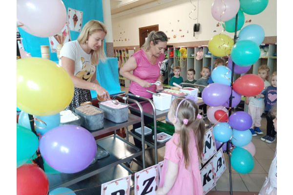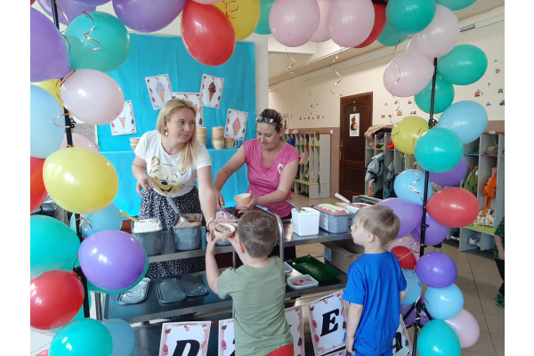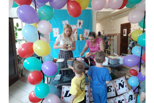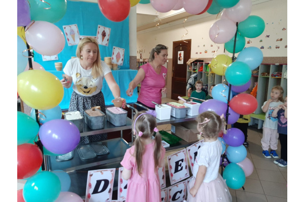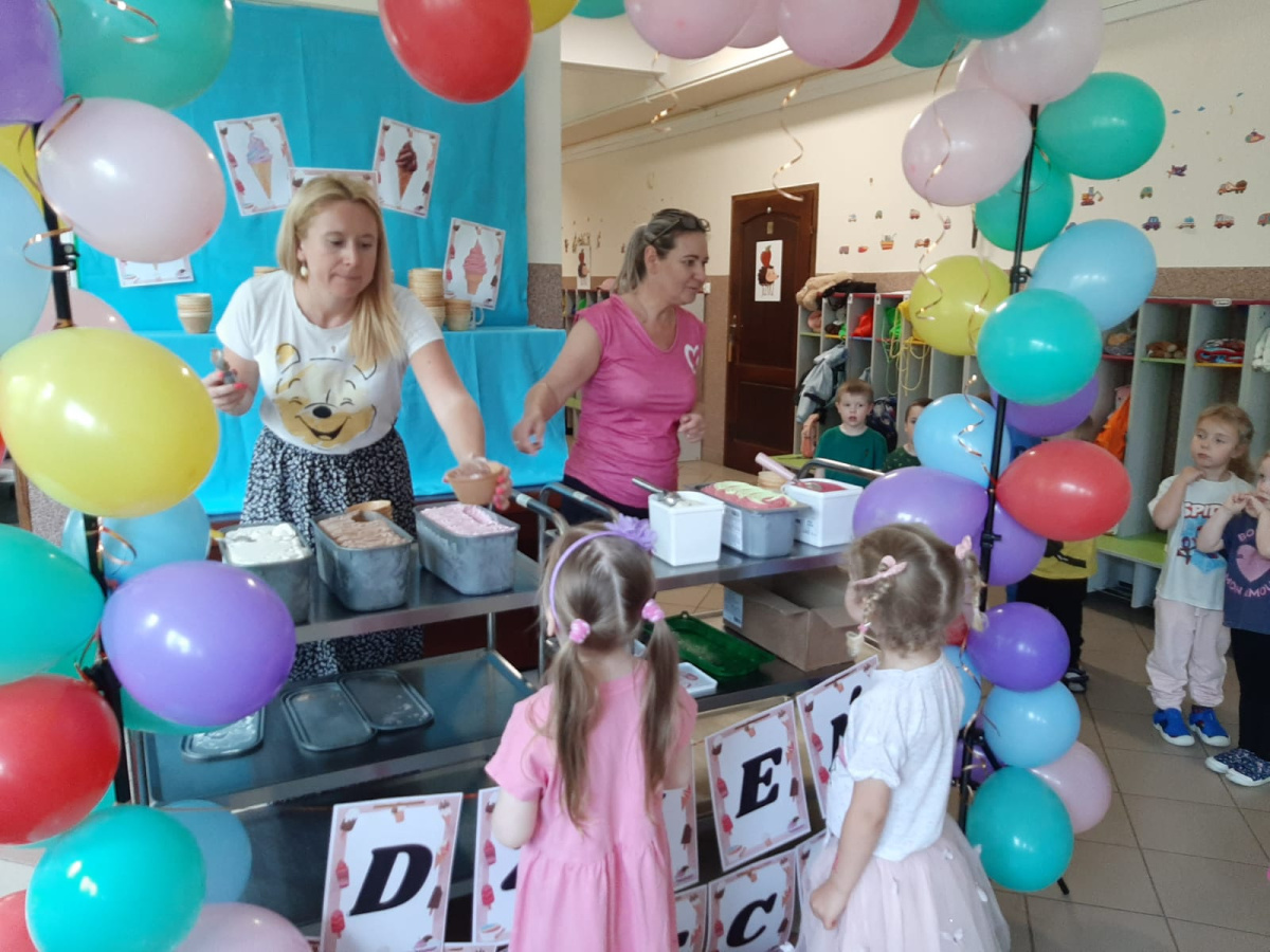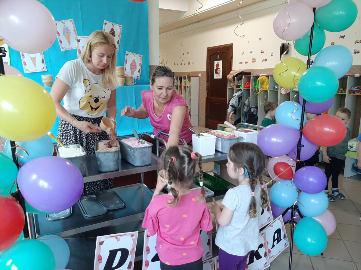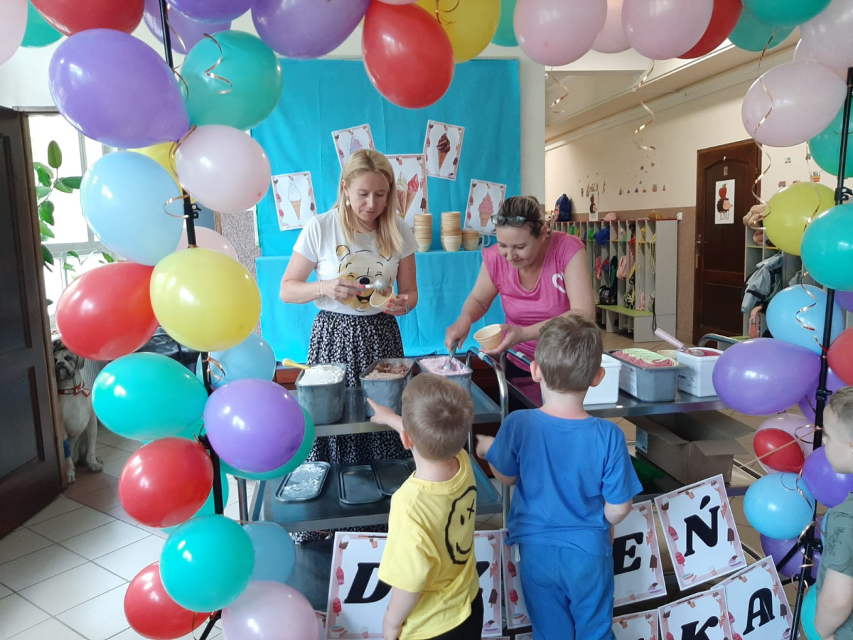 Dnia 2 czerwca w naszym przedszkolu obchodziliśmy ważne święto jakim jest Dzień Dziecka, z tej okazji dzieci mogły przynieść do przedszkola swoje ulubione zabawki, kocyki i ulubione przekąski - którymi bawiliśmy i jedliśmy się na pikniku przedszkolnym. Tego dnia każde dziecko otrzymło loda w swoim ulubiony smaku - były lody truskawkowe, czekoladowe, waniliowe, pistacjowe i kwaśne jabłko oraz sorbet malinowy. W każdej sali były wiele radości i uśmiehców na twarzy. Odbywały się tańce, zabawy sportowe i wiele innych atrkacji. To był super dzień!
