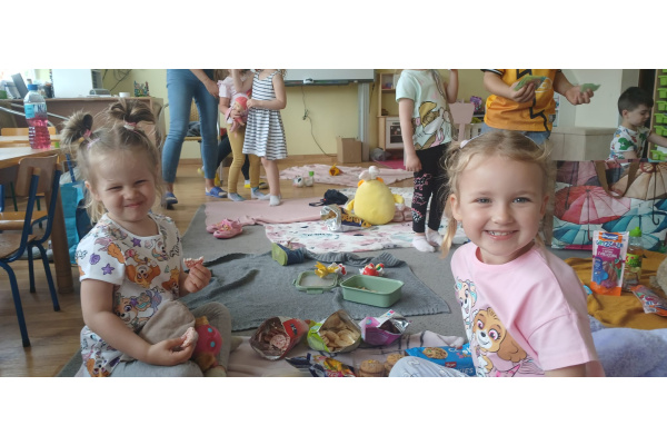 Dnia 2 czerwca w naszym przedszkolu obchodziliśmy ważne święto jakim jest Dzień Dziecka, z tej okazji dzieci mogły przynieść do przedszkola swoje ulubione zabawki, kocyki i ulubione przekąski - którymi bawiliśmy i jedliśmy się na pikniku przedszkolnym. Tego dnia każde dziecko otrzymło loda w swoim ulubiony smaku - były lody truskawkowe, czekoladowe, waniliowe, pistacjowe i kwaśne jabłko oraz sorbet malinowy. W każdej sali były wiele radości i uśmiehców na twarzy. Odbywały się tańce, zabawy sportowe i wiele innych atrkacji. To był super dzień!