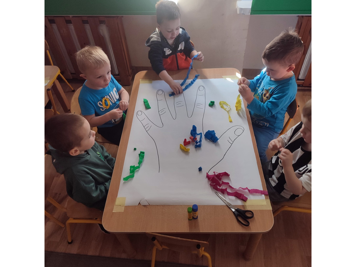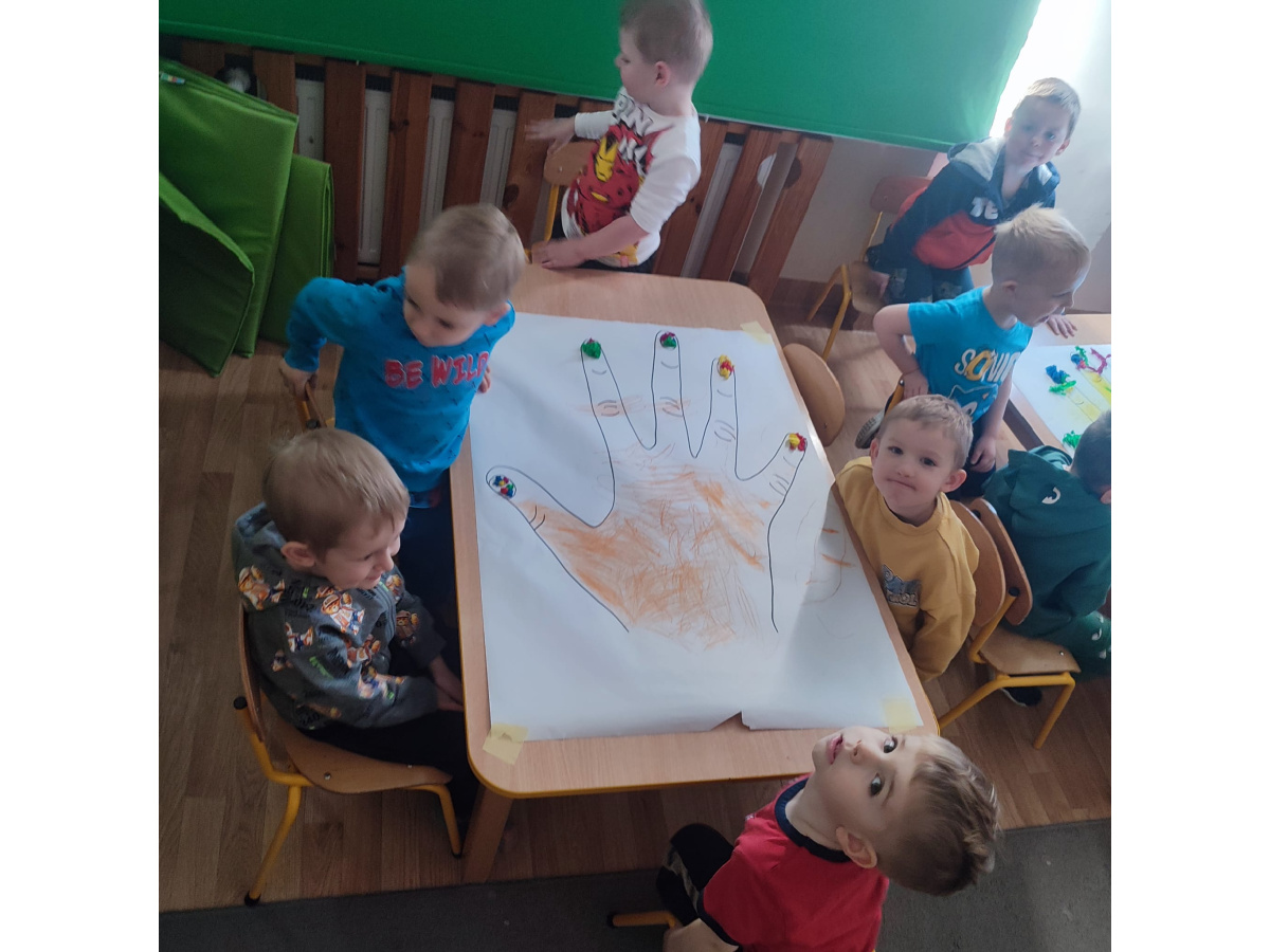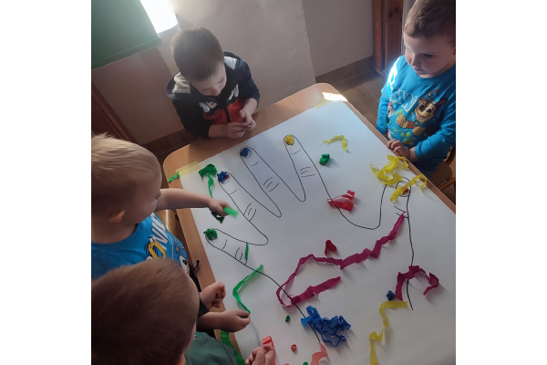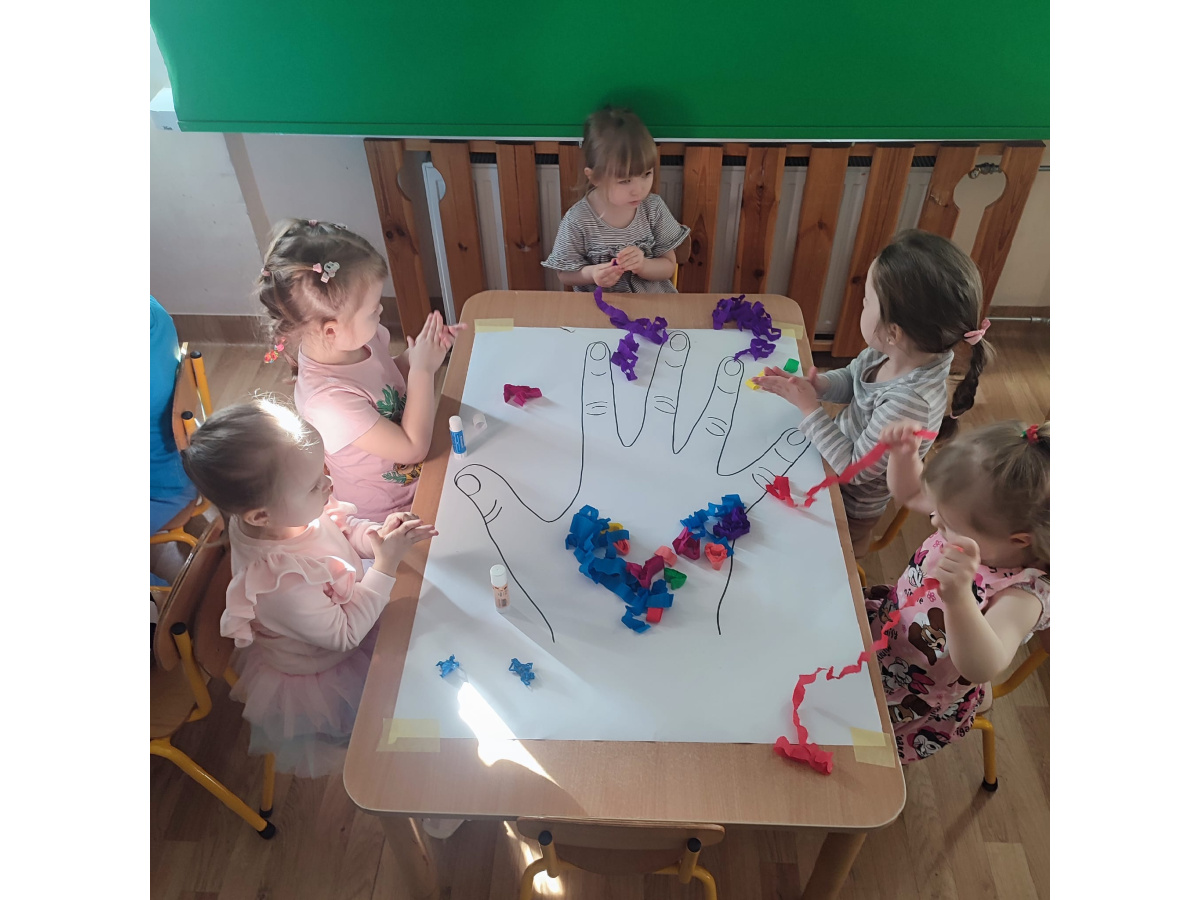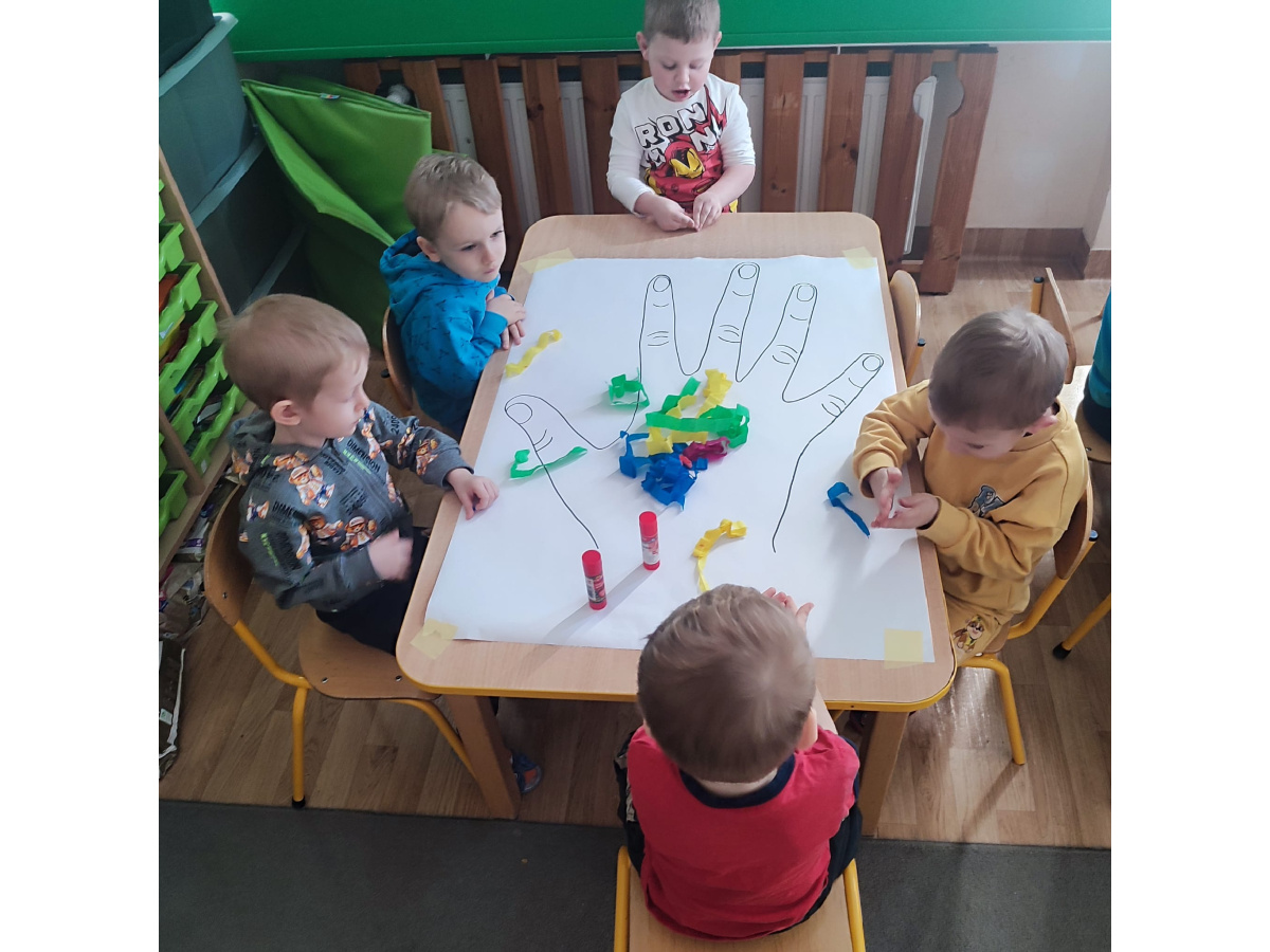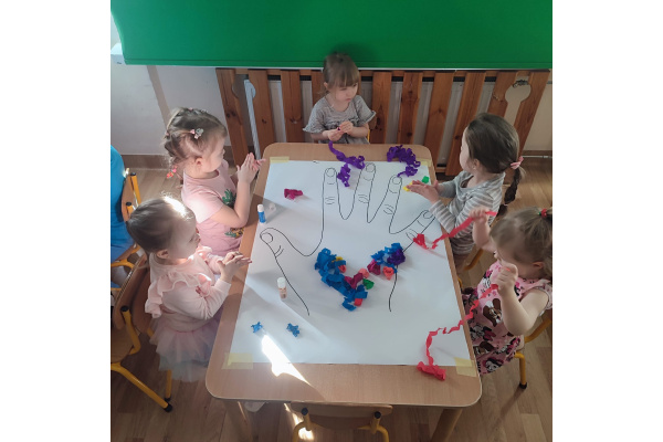 Z okazji Dnia Kobiet nasze 3-latki uczestniczyły w radosnych zajęciach plastycznych. Dzieci wspólnie wyklejały kolorowe paznokcie z krepy rozwijając przy tym swoją kreatywność i sprawność manualną.