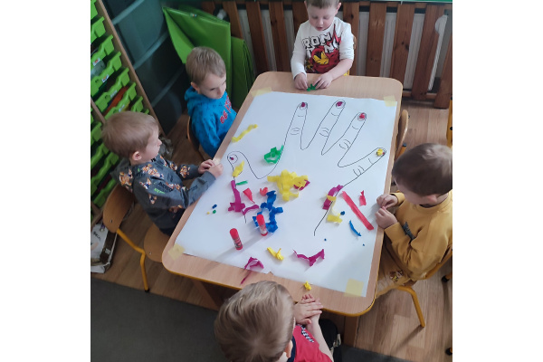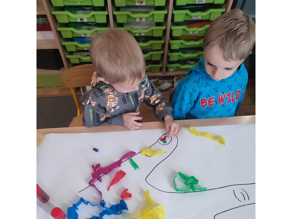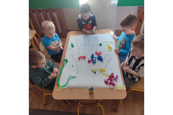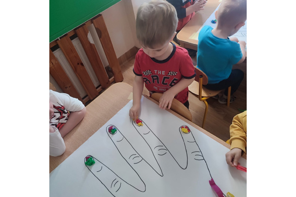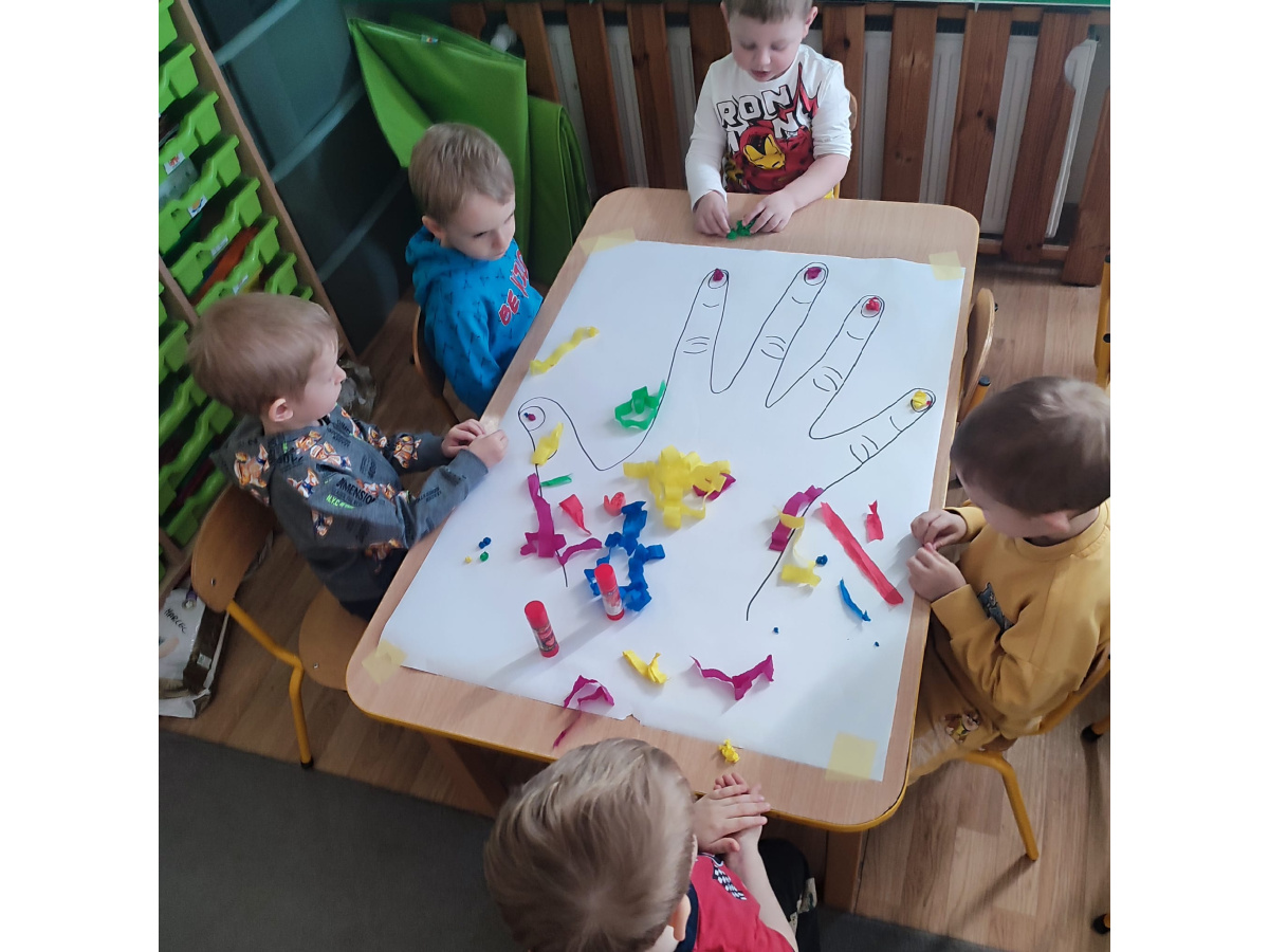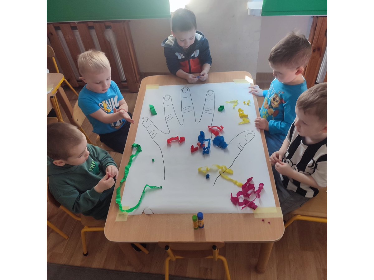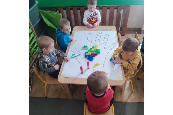 Z okazji Dnia Kobiet nasze 3-latki uczestniczyły w radosnych zajęciach plastycznych. Dzieci wspólnie wyklejały kolorowe paznokcie z krepy rozwijając przy tym swoją kreatywność i sprawność manualną.