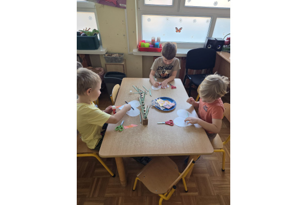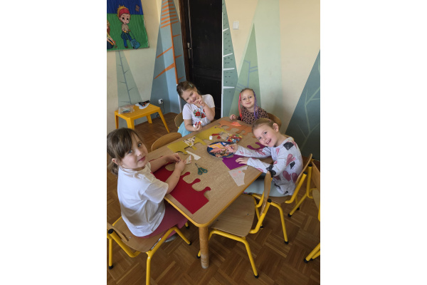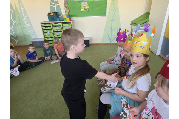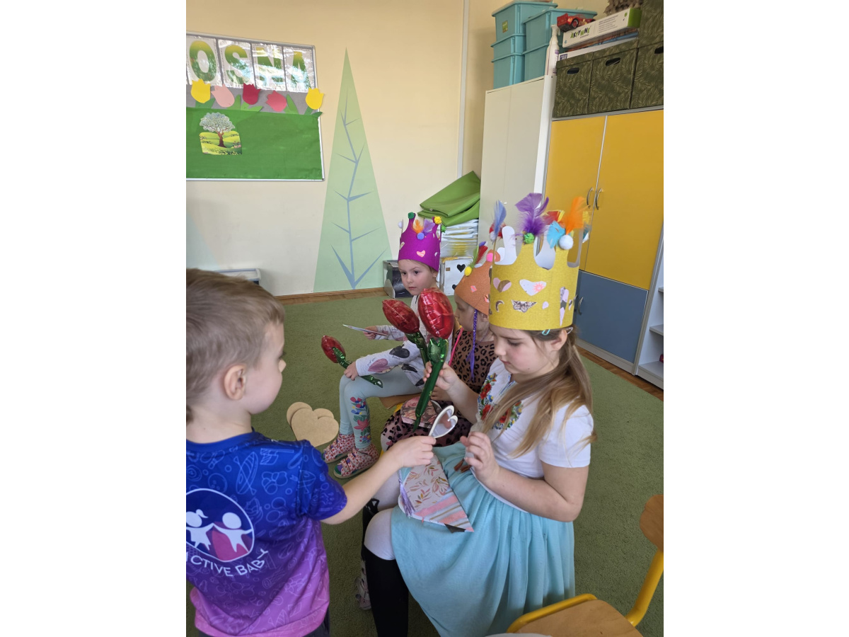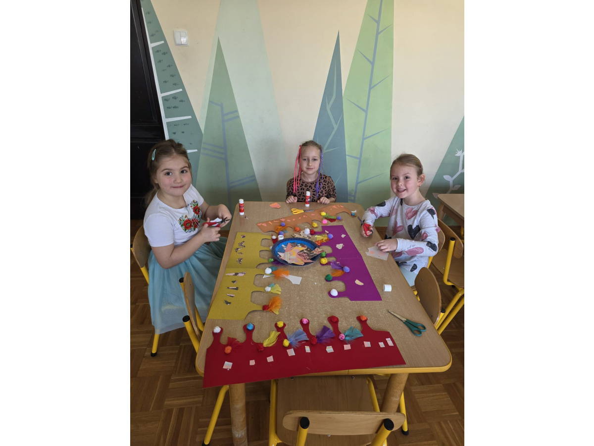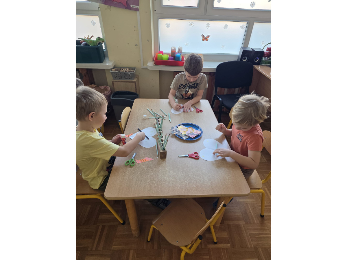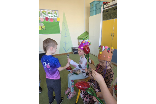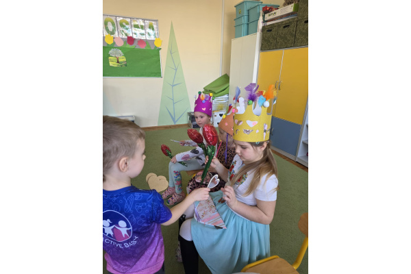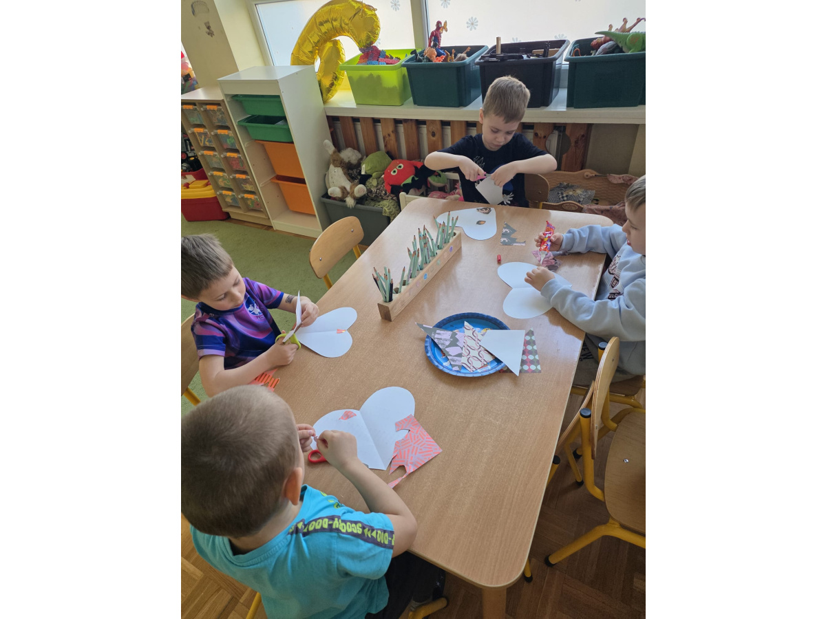 Jak na kobietki przystało,dziewczynki same zdobiły sobie piękne korony ,a chłopcy w tym czasie tworzyli przepiękne serduszkowe laurki.