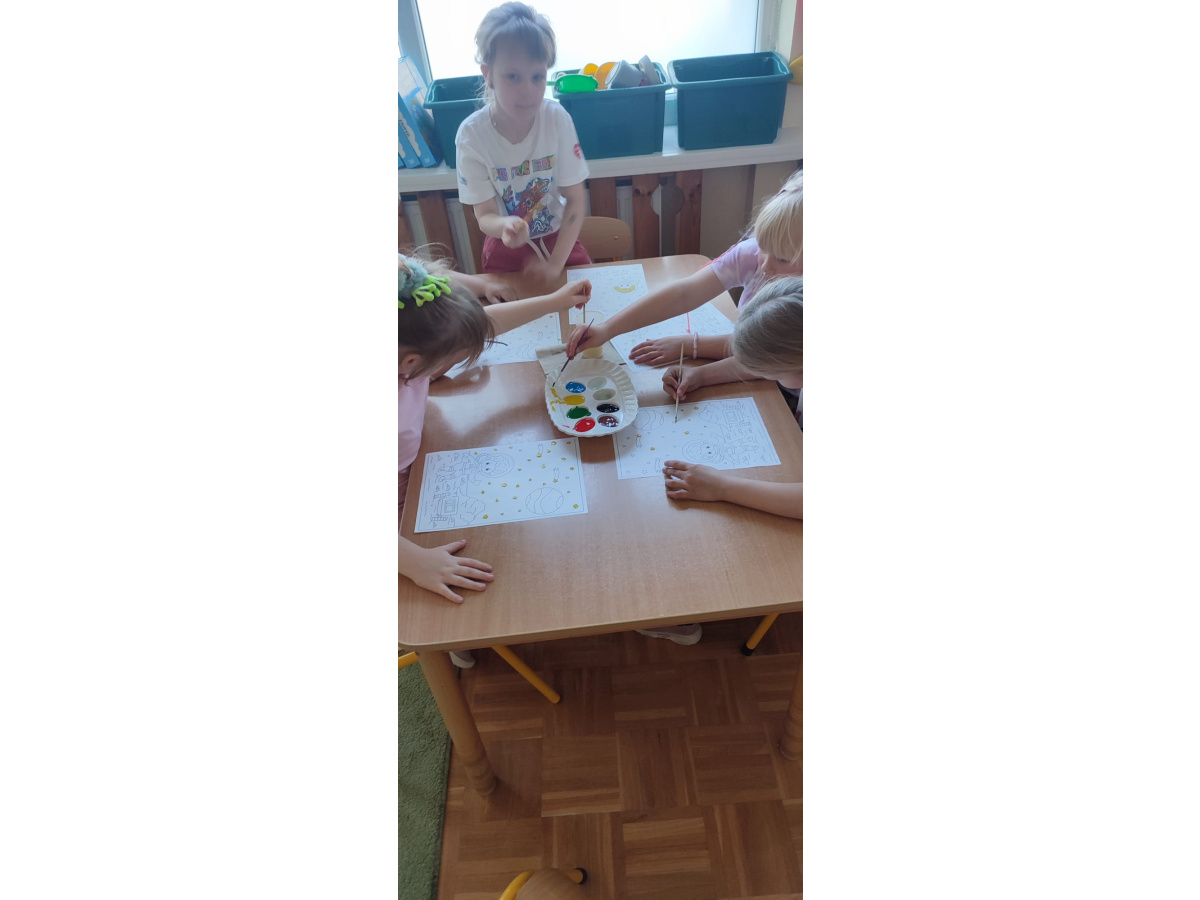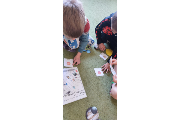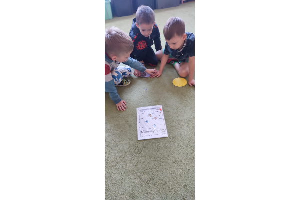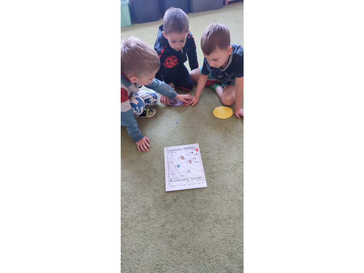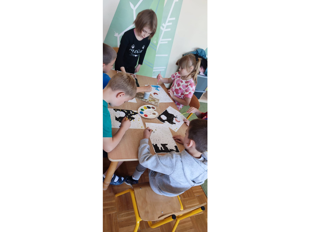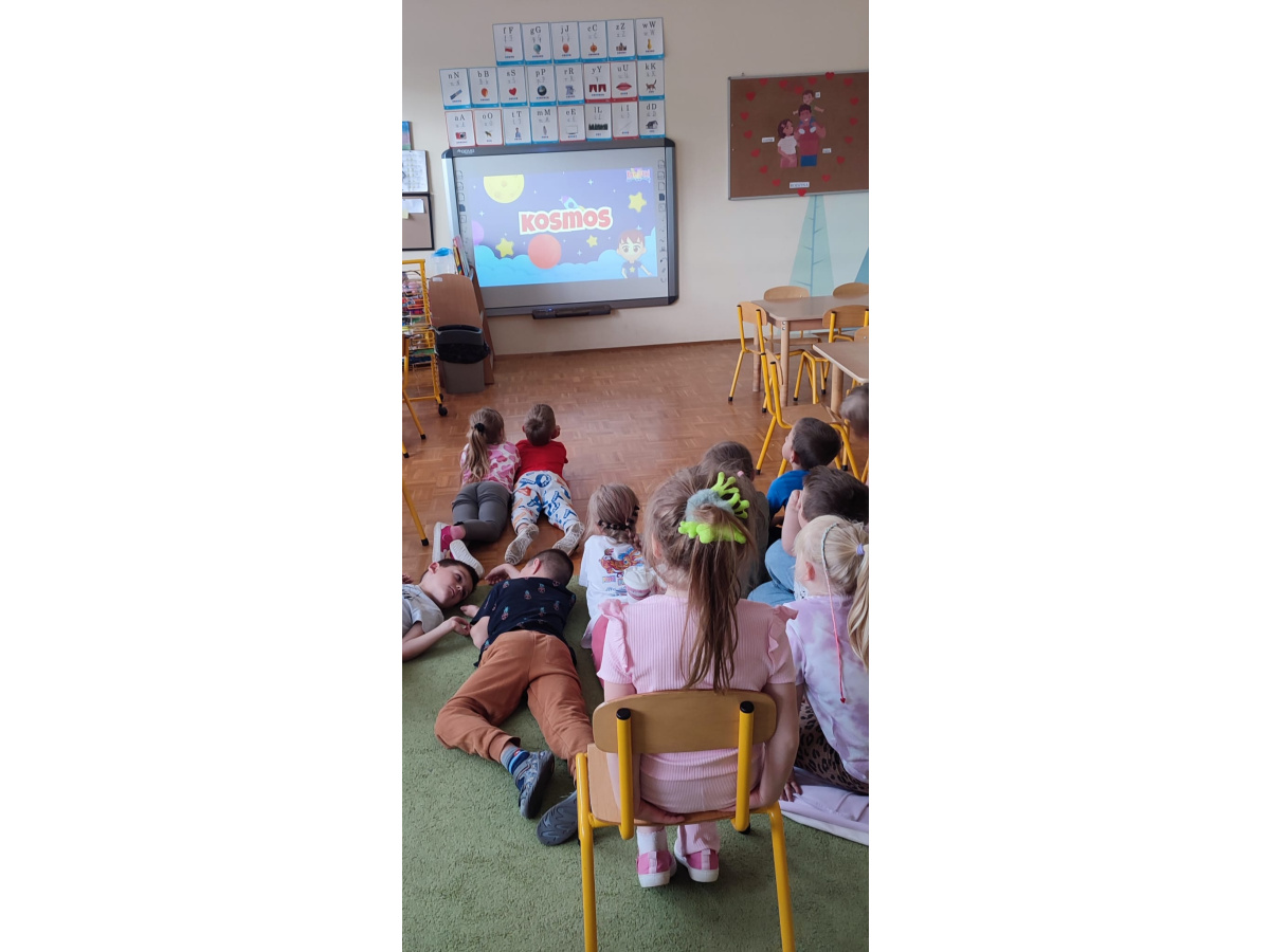W środę, 21 maja ,, Sówki" uczestniczyły z zajęciach na temat kosmosu. Dzieci obejrzały film edukacyjny, z którego dowiedziały się wielu ciekawostek związanych z tematem. Z zaciekawieniem obejrzały ilustracje przedstawiające galaktyki, rakiety, a także wspólnymi siłami odtworzyły Układ planet względem słońca. Następnie pomalowały farbami obrazek przedstawiający człowieka na księżycu. To był kosmicznie ciekawy czas!