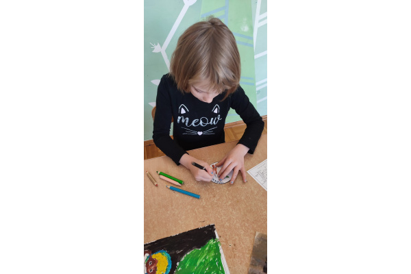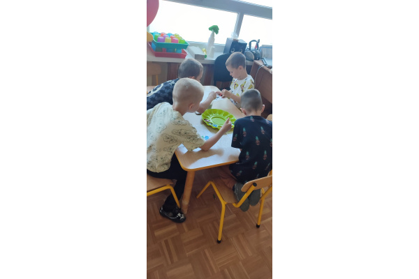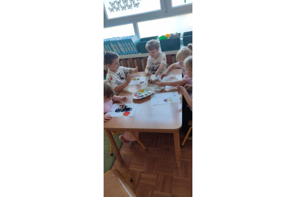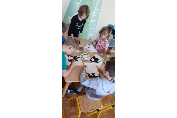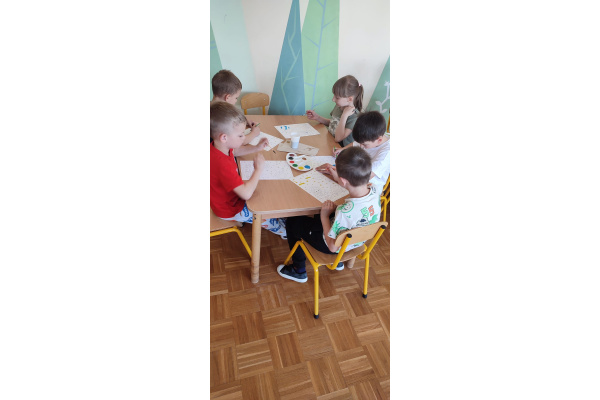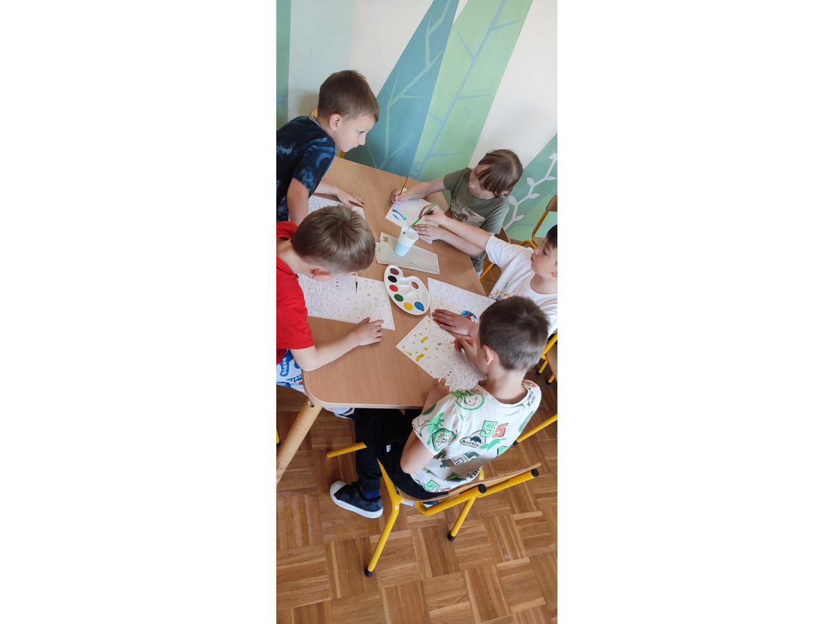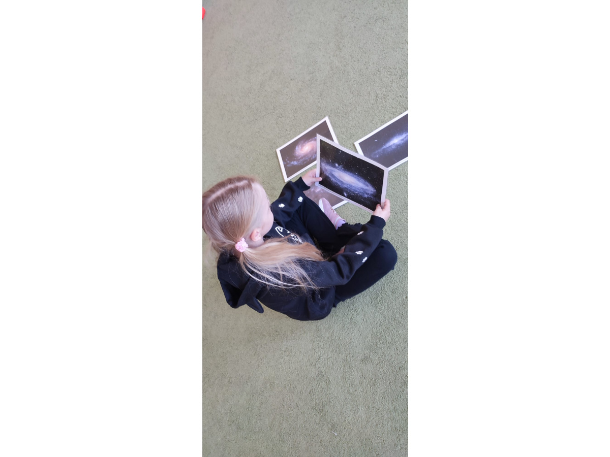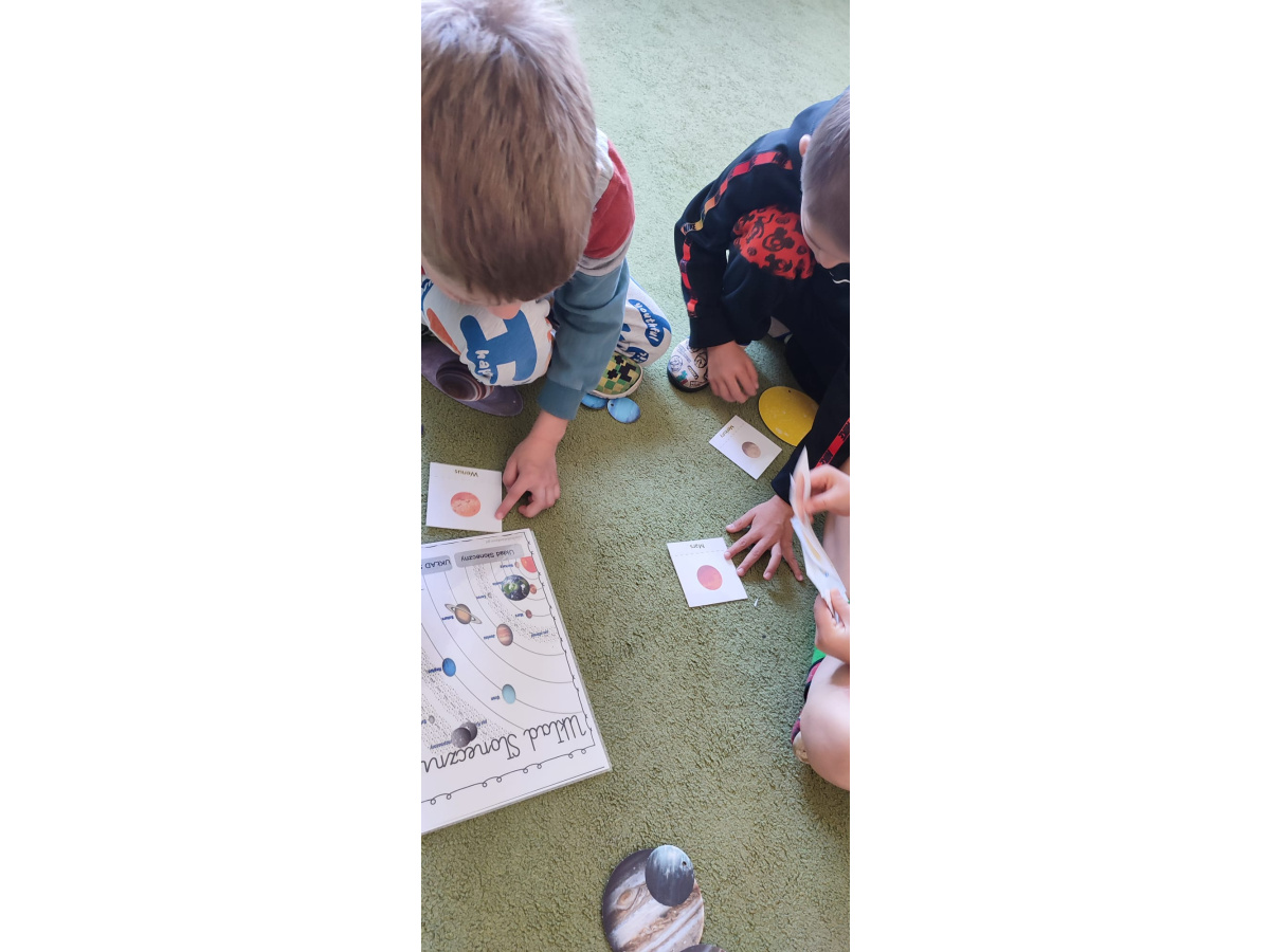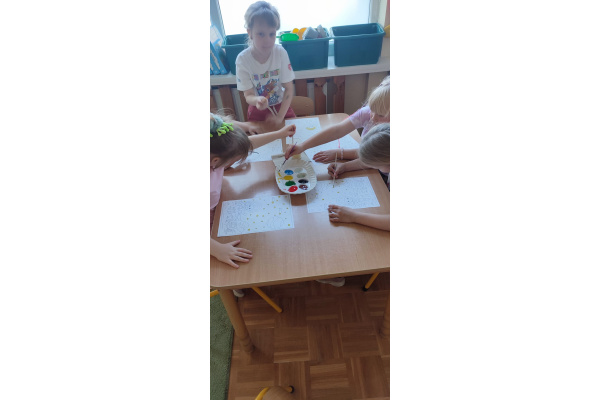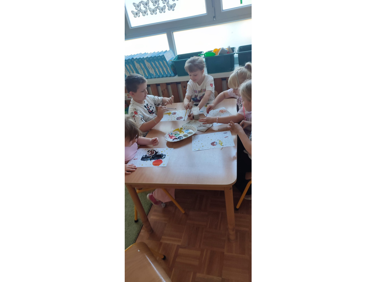 W środę, 21 maja ,, Sówki" uczestniczyły z zajęciach na temat kosmosu. Dzieci obejrzały film edukacyjny, z którego dowiedziały się wielu ciekawostek związanych z tematem. Z zaciekawieniem obejrzały ilustracje przedstawiające galaktyki, rakiety, a także wspólnymi siłami odtworzyły Układ planet względem słońca. Następnie pomalowały farbami obrazek przedstawiający człowieka na księżycu. To był kosmicznie ciekawy czas!