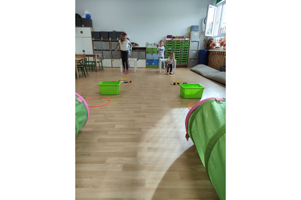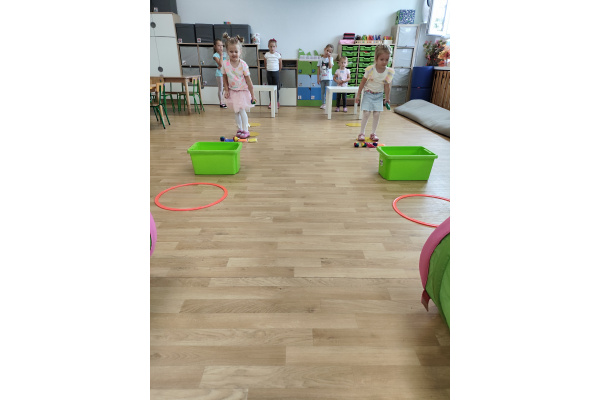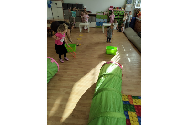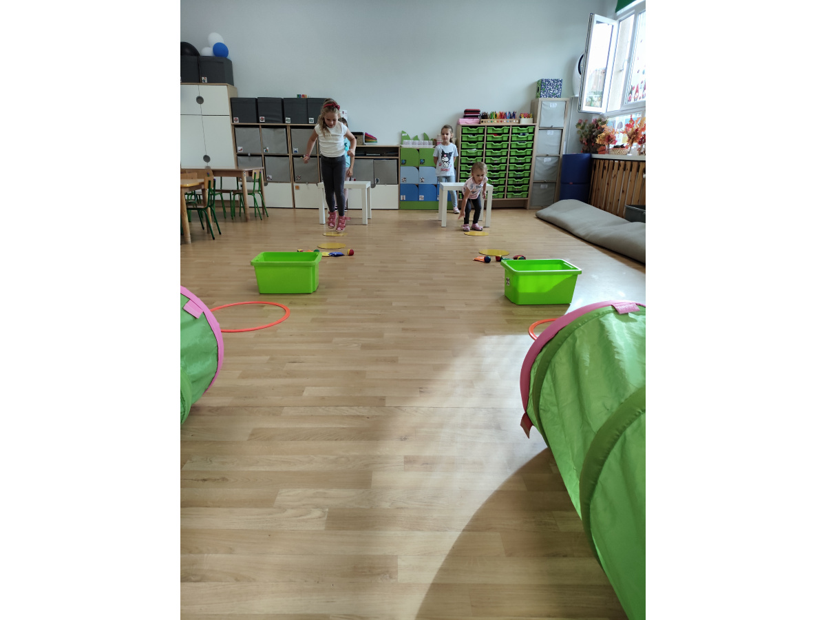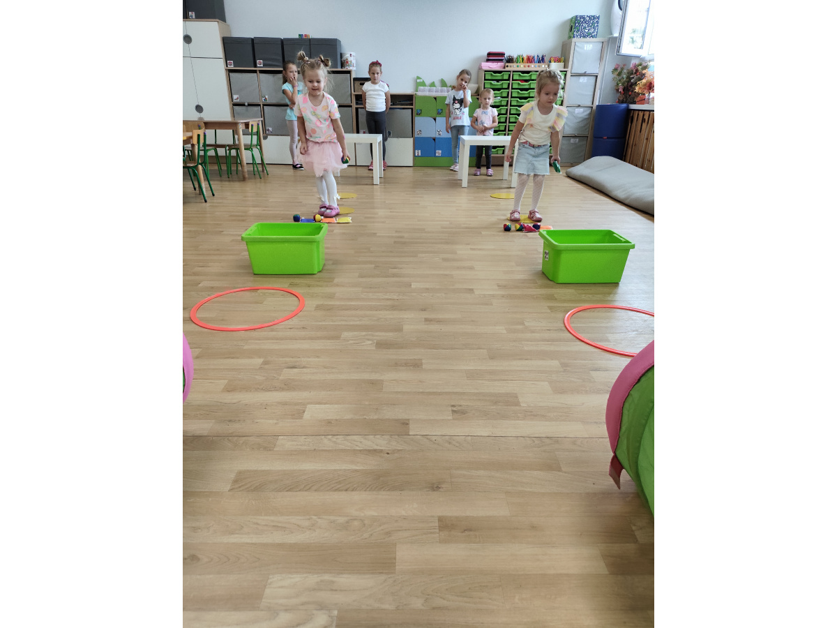 Dzień Przedszkolaka to wyjątkowe święto, które w grupie Krasnoludków obchodziliśmy z wielką radością i energią! Już od rana na dzieci czekało mnóstwo niespodzianek i wspaniałych zabaw. Jedną z głównych atrakcji był angielski sportowy tor przeszkód, podczas którego Krasnoludki mogły sprawdzić swoją sprawność, a przy okazji utrwalić angielskie słówka związane ze sportem i ruchem. Dzieci z zapałem pokonywały kolejne przeszkody, dopingując się nawzajem i świetnie się przy tym bawiąc.