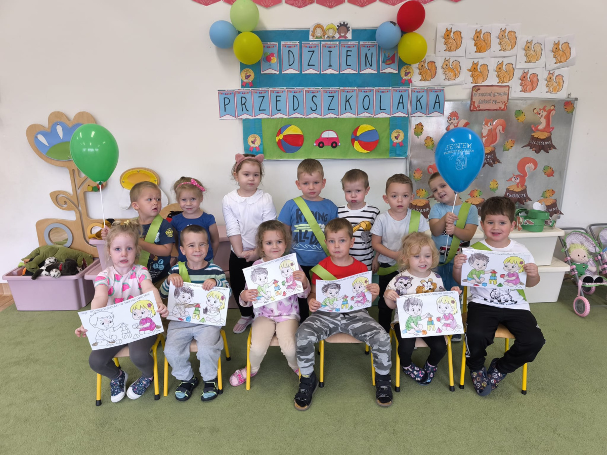 Dziś w przedszkolu wielka sprawa, święto dzieci – jest zabawa! Baloniki, tańce, śmiechy, wszędzie słychać dźwięk uśmiechy!