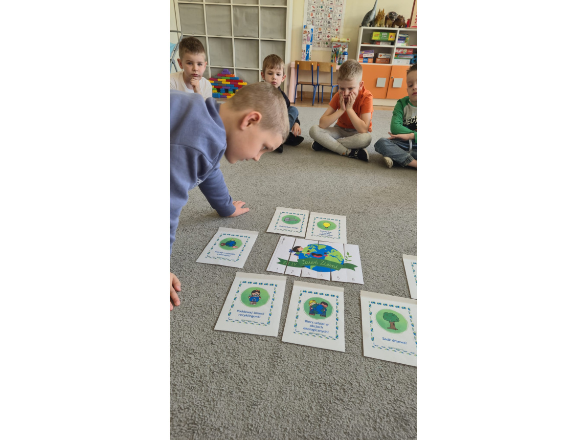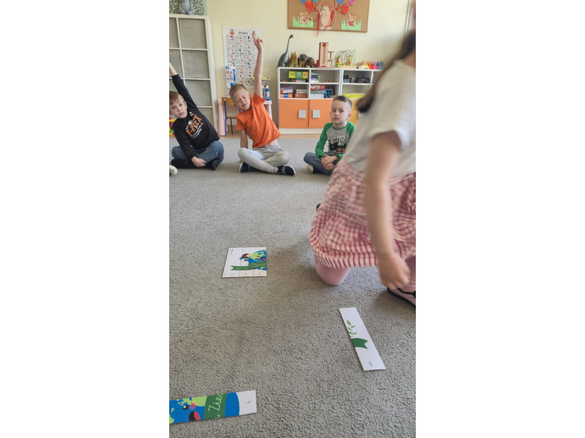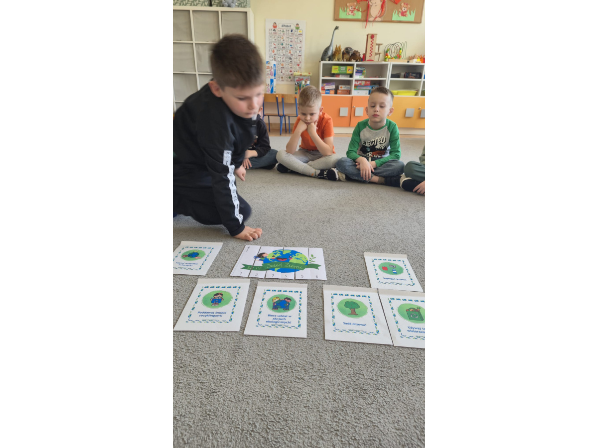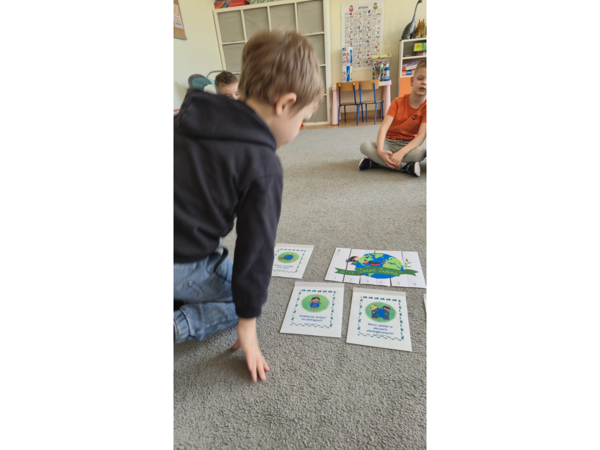 Dziś wielkie święto, Dzień Ziemi mamy, Więc uroczystą obietnicę składamy: Będziemy świat kochać i go szanować, Nigdy papierków w trawę nie chować.