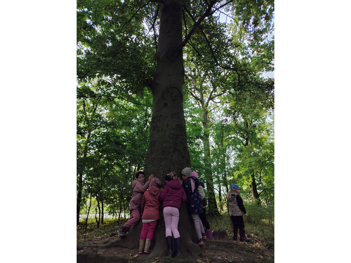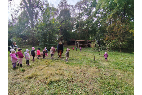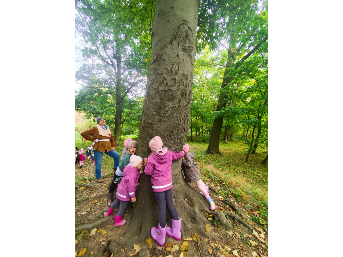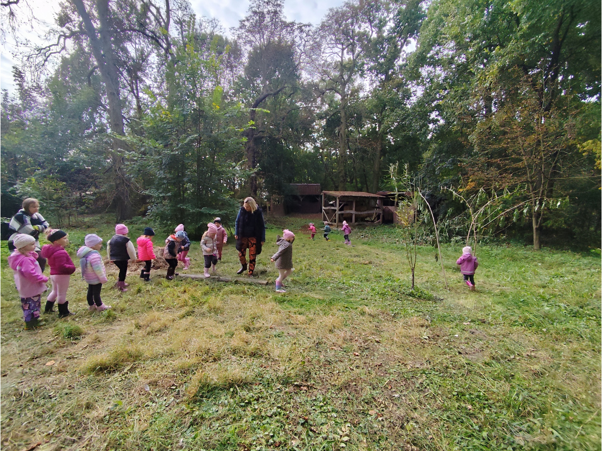 Nie zabrakło też ruchu! Podczas spaceru po parku dzieci wypatrywały zwierzątek — ptaków, wiewiórek i owadów — ucząc się uważności i obserwacji przyrody. Na zakończenie odbyły się zabawy ruchowe na świeżym powietrzu, które wywołały mnóstwo śmiechu i radości.