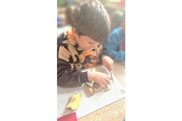 Dziś dzieci z naszego przedszkola z okazji Dnia Warzyw i Owoców przygotowywały pyszne owocowe smakołyki: sałatkę lub szaszłyki.