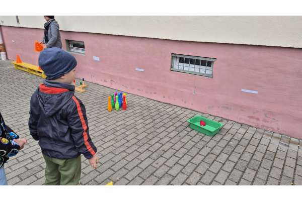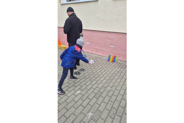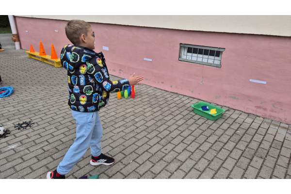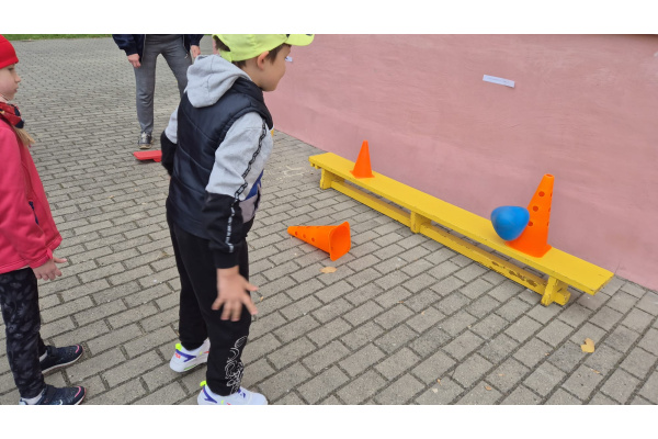 - Zbijanie pachołków piłką – dynamiczna zabawa z piłką
