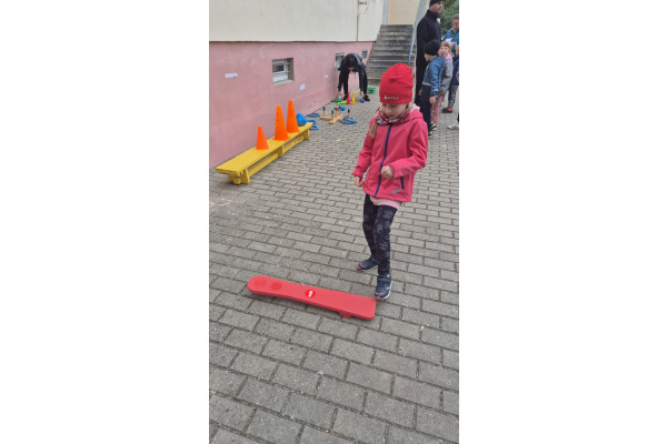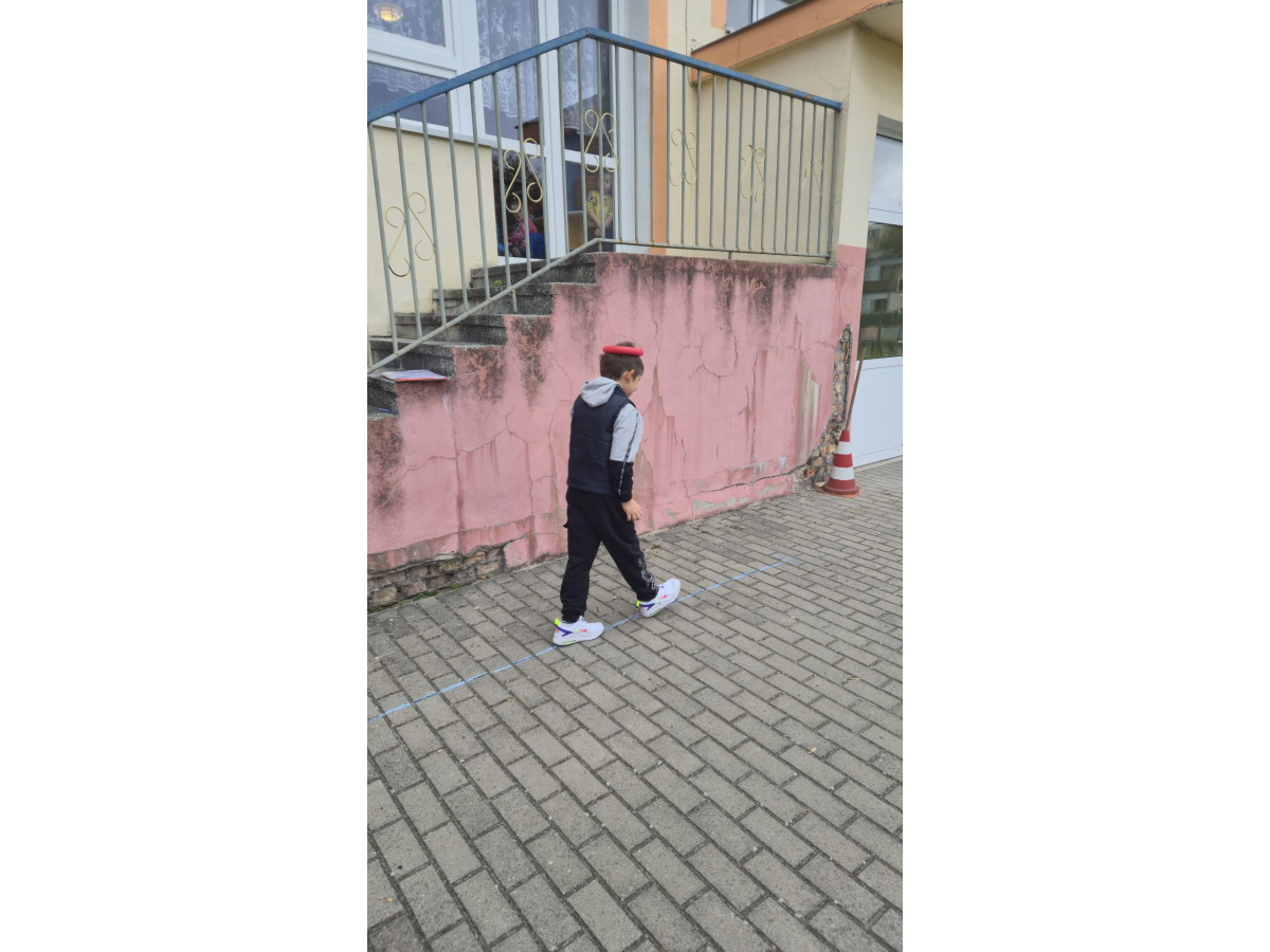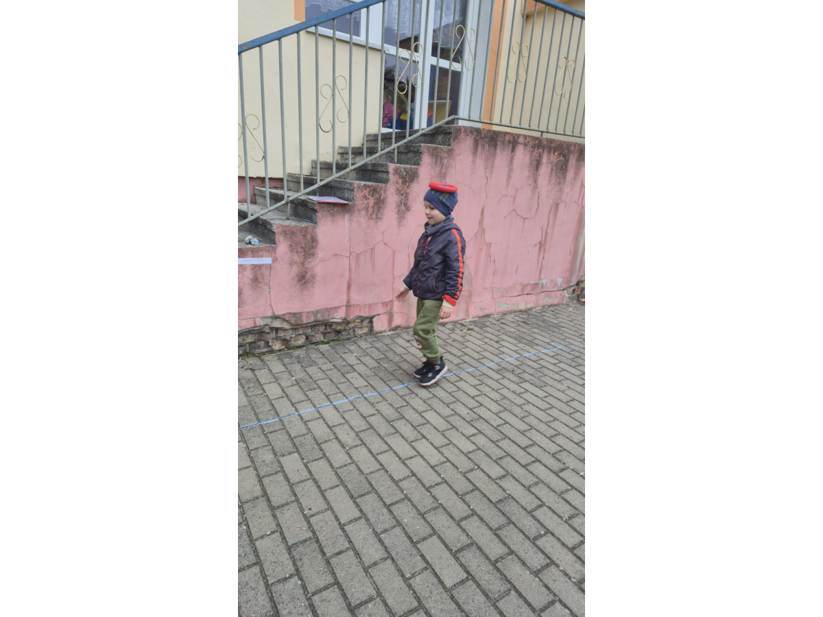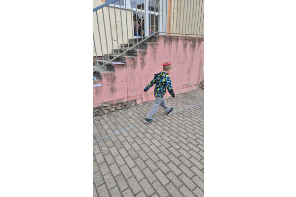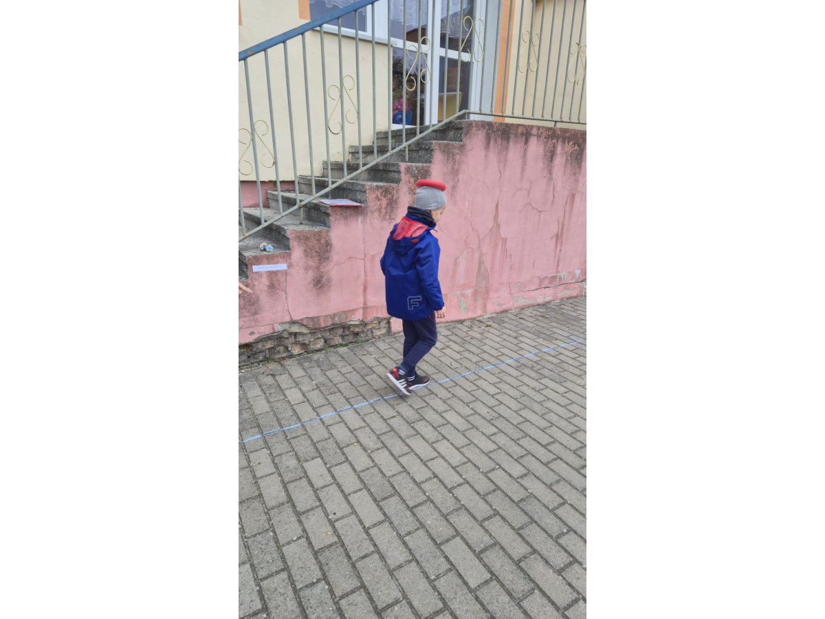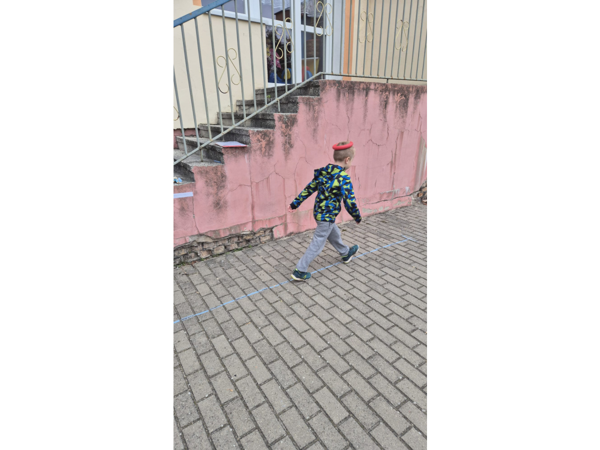 - Przejście po linii z ringo na głowie – test równowagi i skupienia
