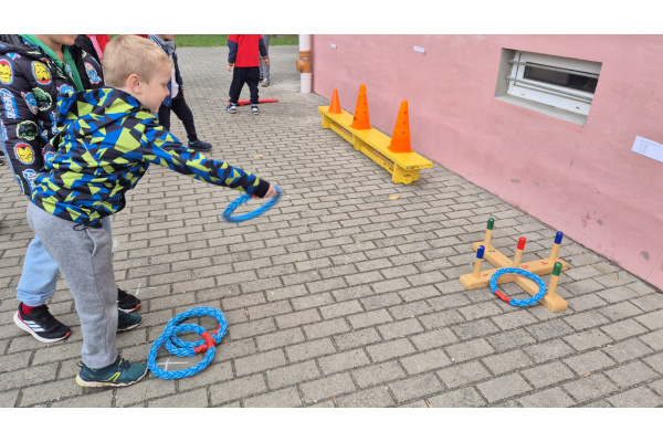 Mali sportowcy zmierzyli się z różnorodnymi konkurencjami, które wymagały zręczności, koncentracji i dobrej zabawy. Wśród wyzwań znalazły się: