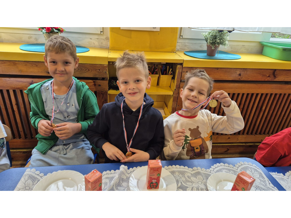 Na zakończenie olimpiady każdy uczestnik otrzymał medal oraz upominek, a wspólne świętowanie zakończyło się pysznym poczęstunkiem, który dodał energii po intensywnym dniu.