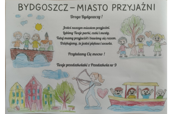 W grupie Krasnoludków, w ramach przedszkolnych Klubików Przyjaciela Bydgoszczy, dzieci realizowały kolejne zadanie – stworzenie wiersza o Bydgoszczy, w którym opowiedziały, za co ją lubią i kochają.