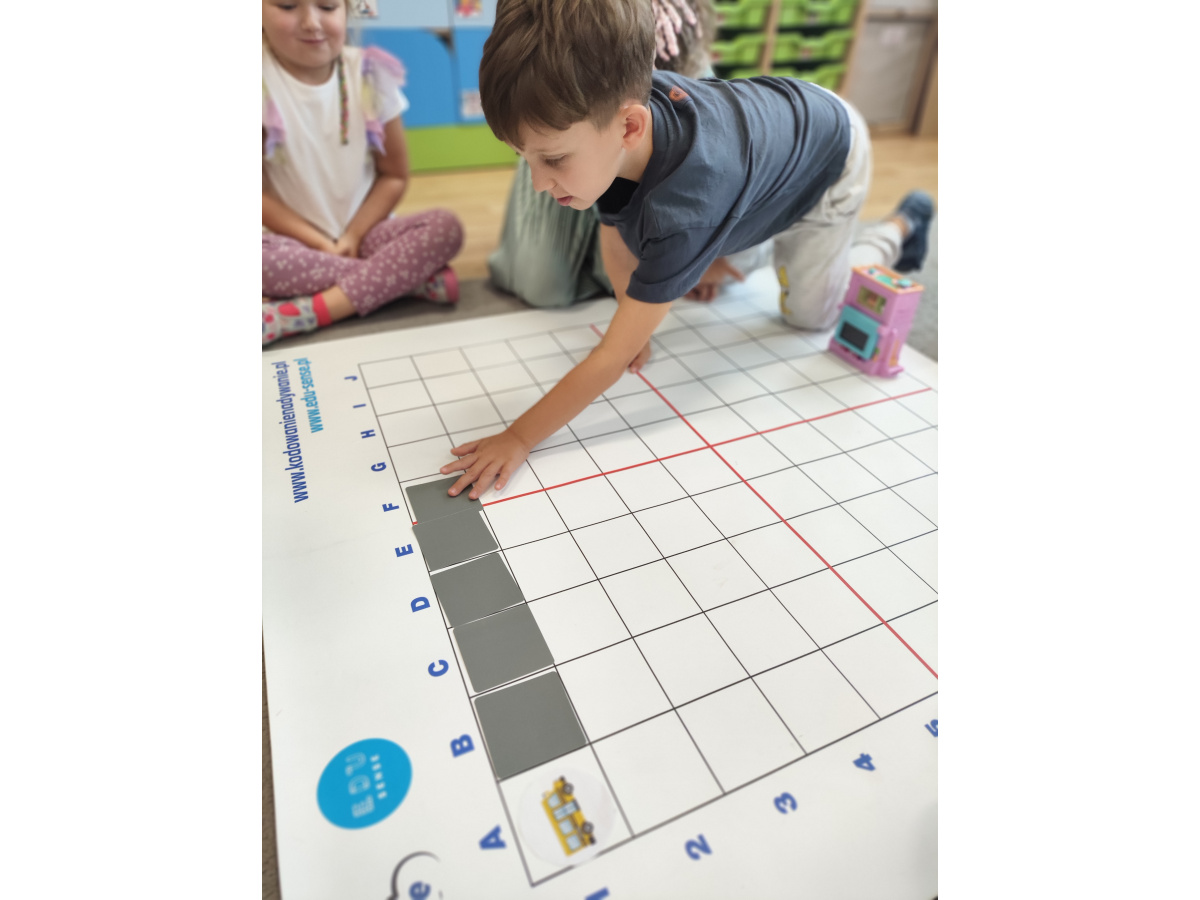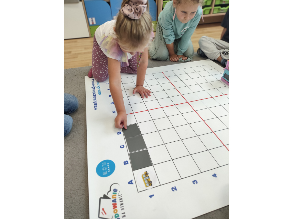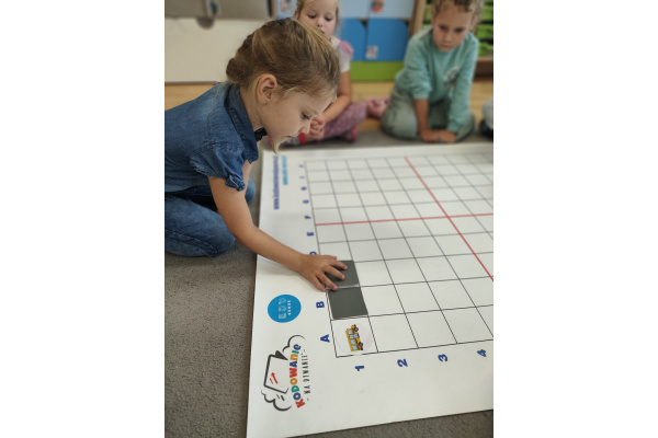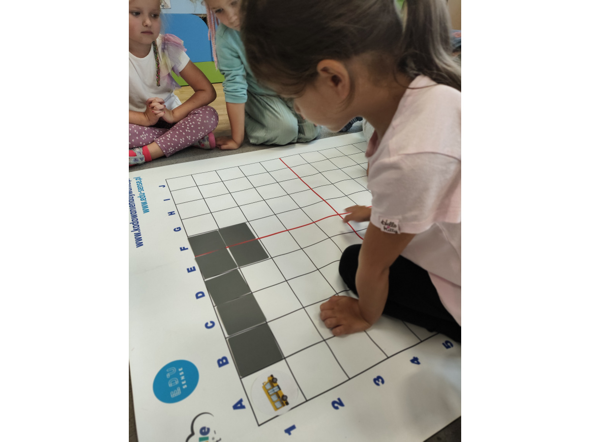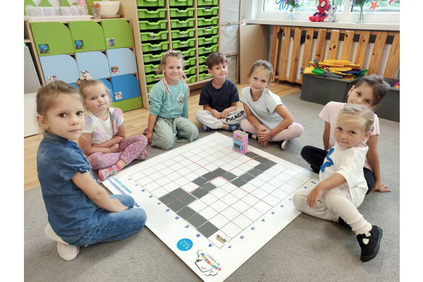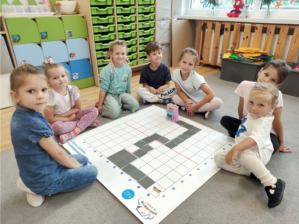 Na dywanie – kodujemy, Z uśmiechami programujemy! Bo nauka przez zabawę To przedszkolna jest podstawa!