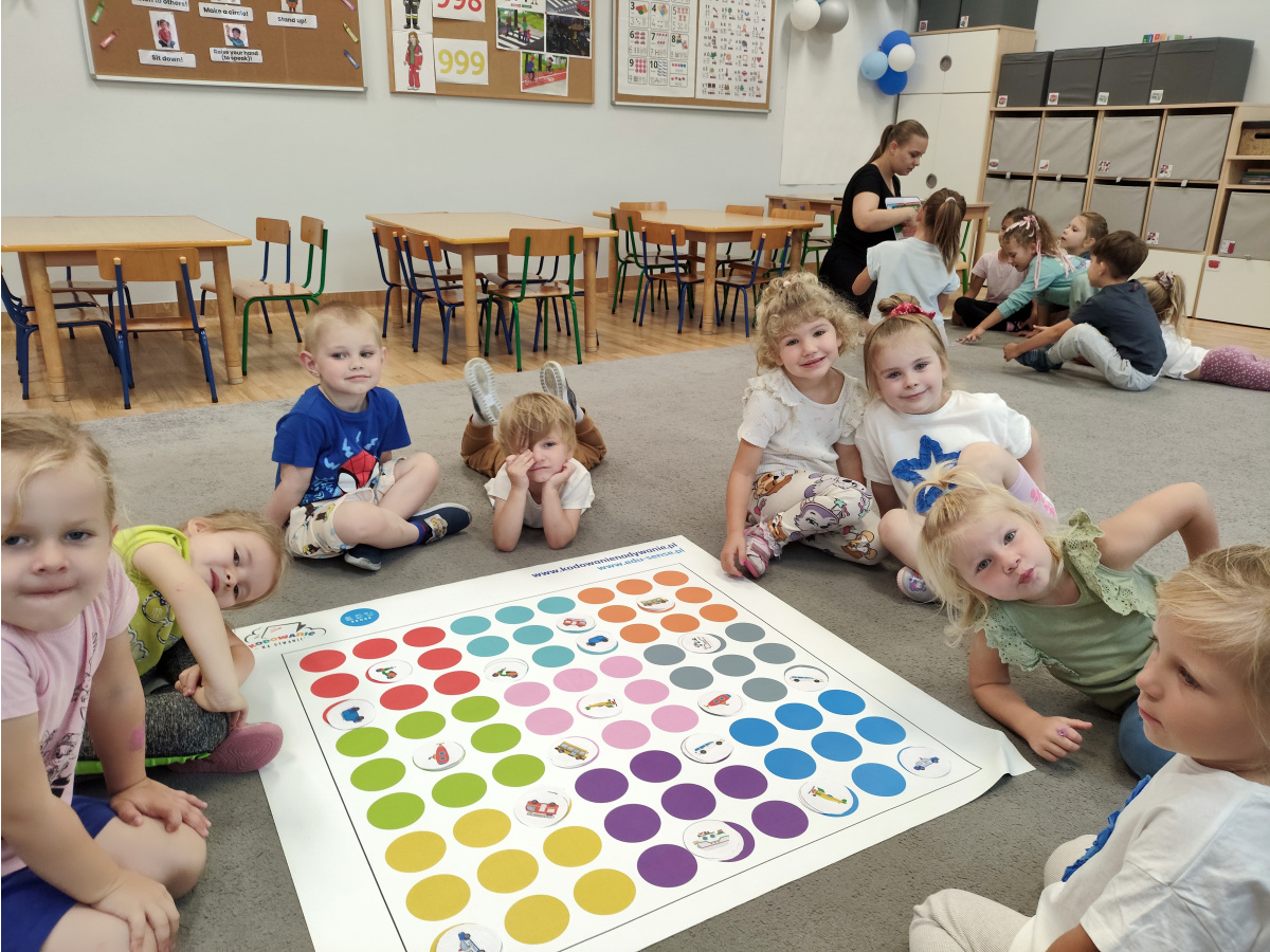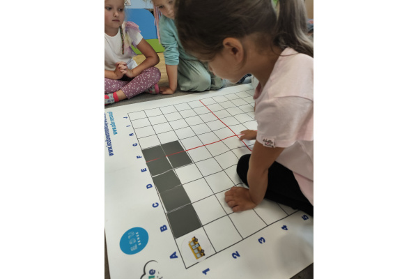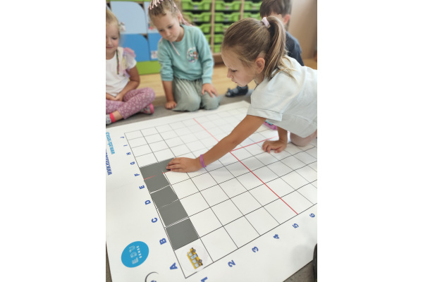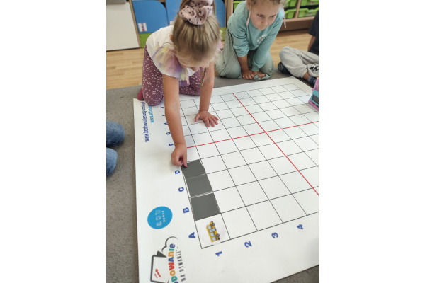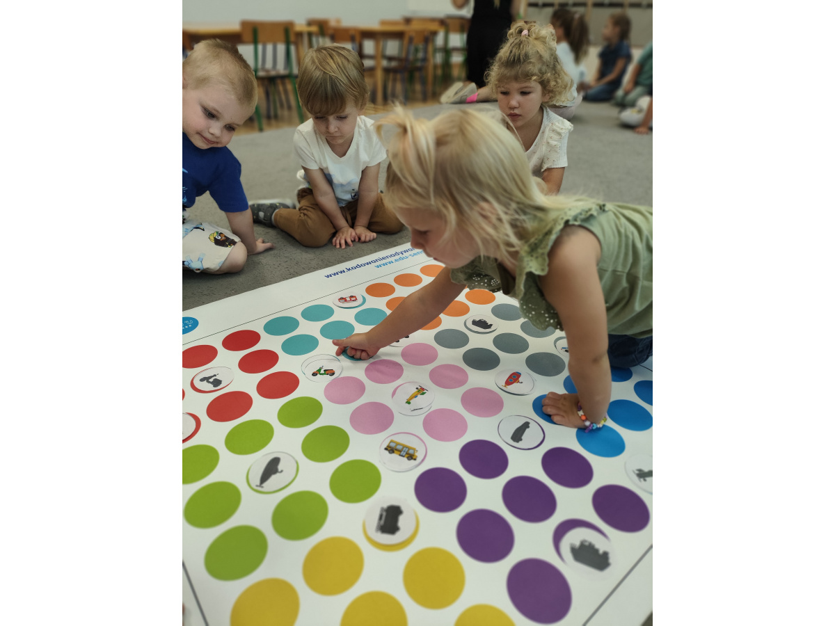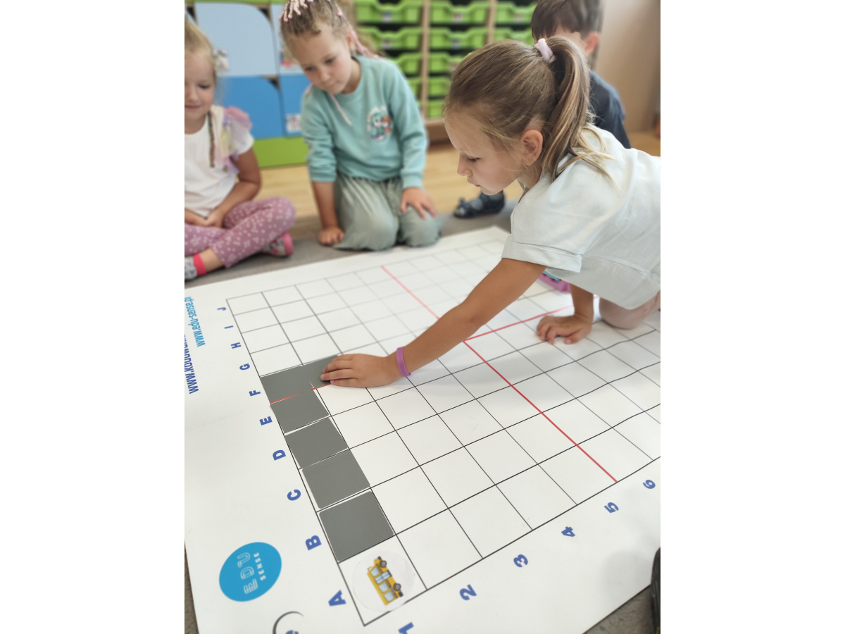 Na dywanie – kodujemy, Z uśmiechami programujemy! Bo nauka przez zabawę To przedszkolna jest podstawa!
