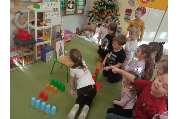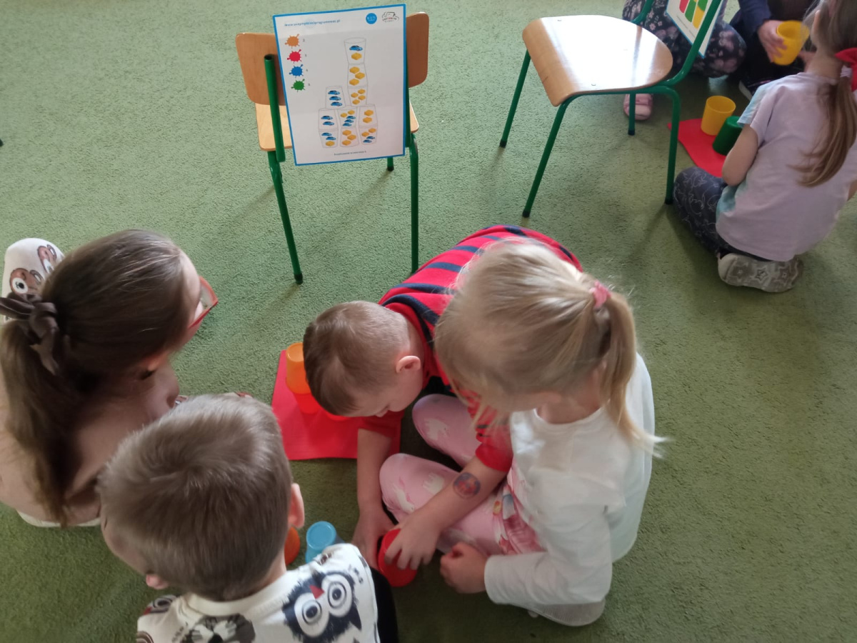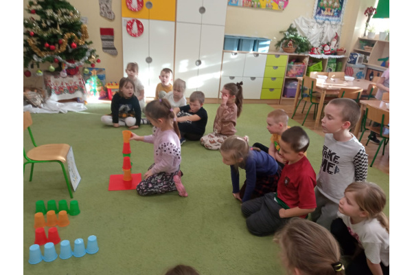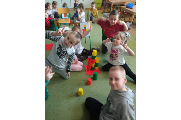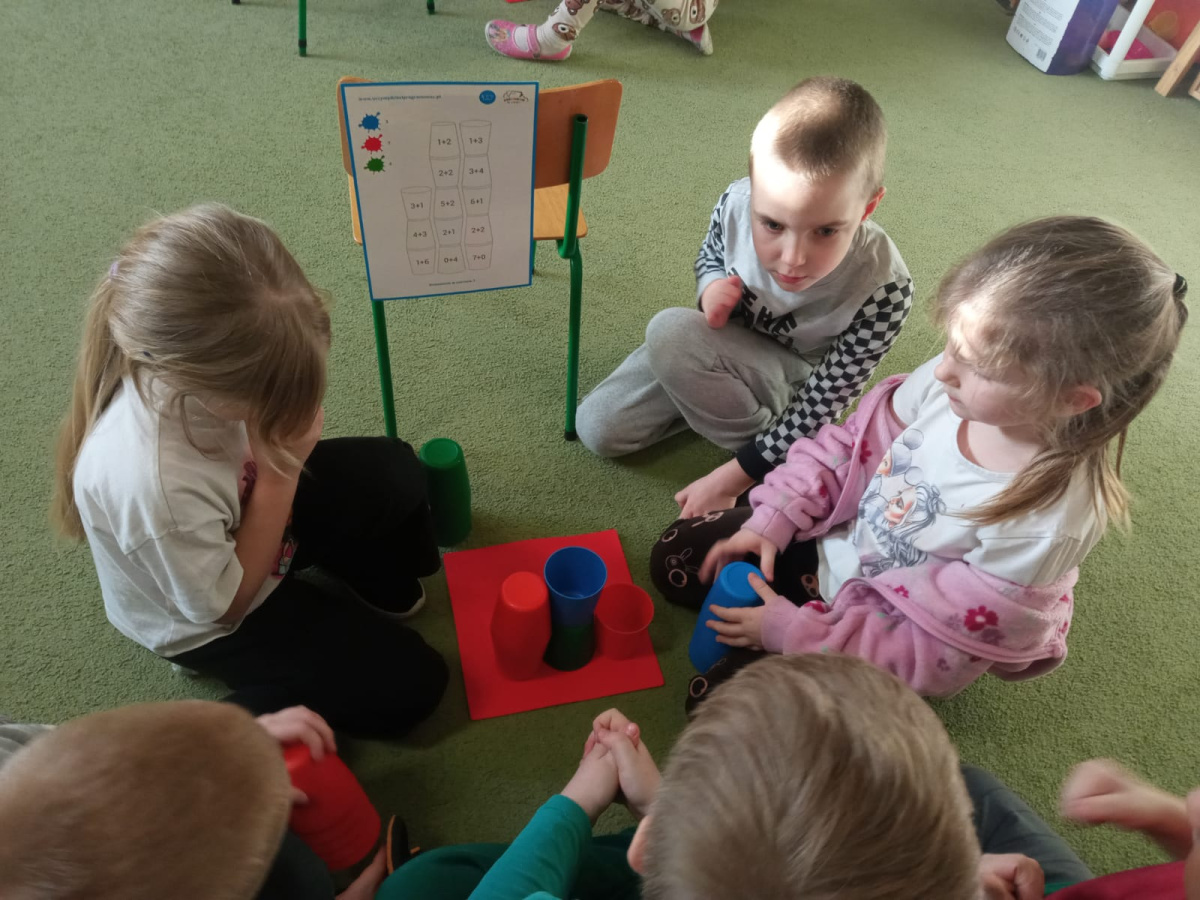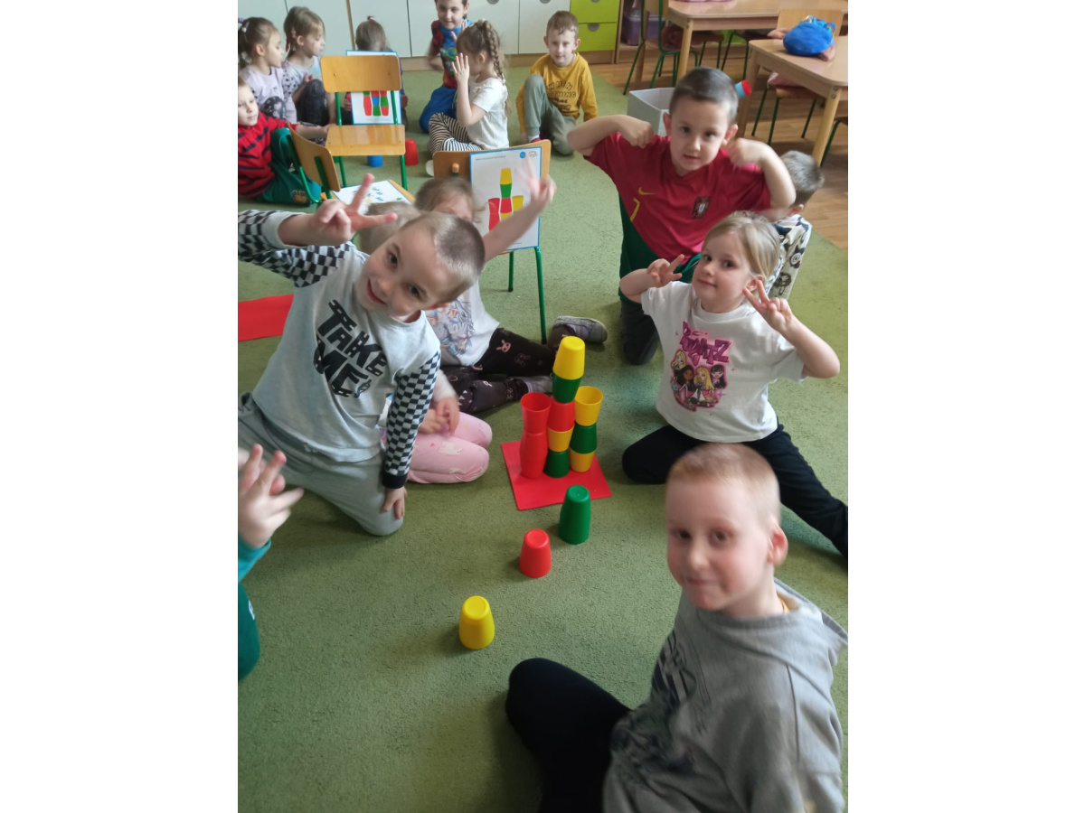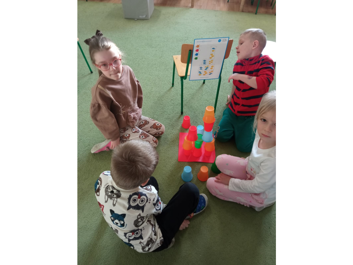 Kodowanie - wieża z kolorowych kubeczków
