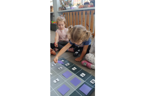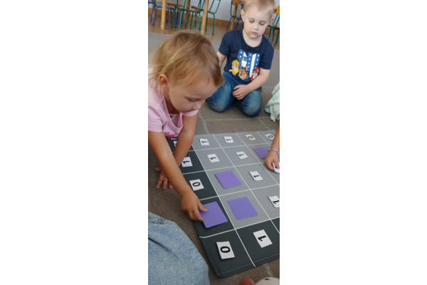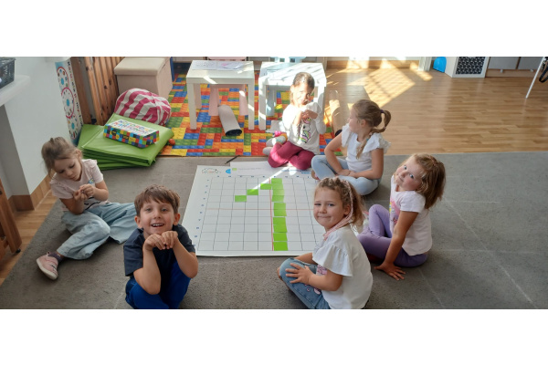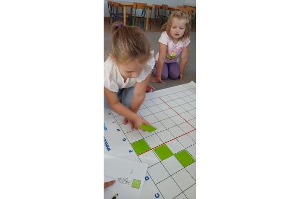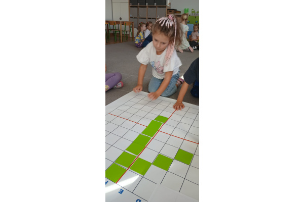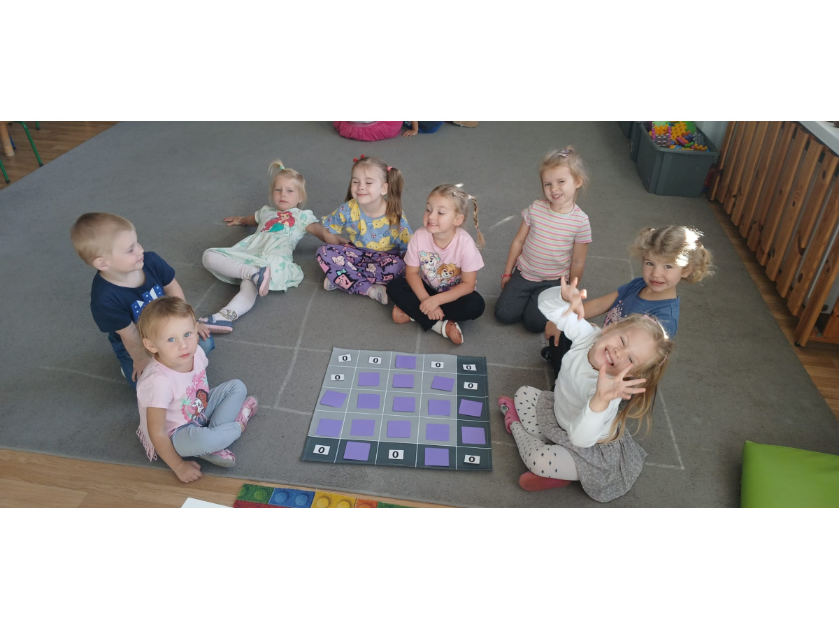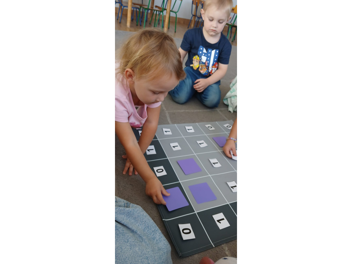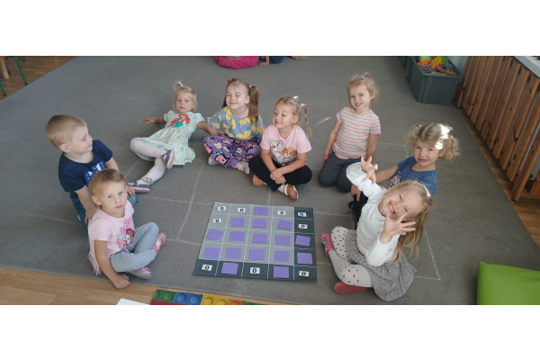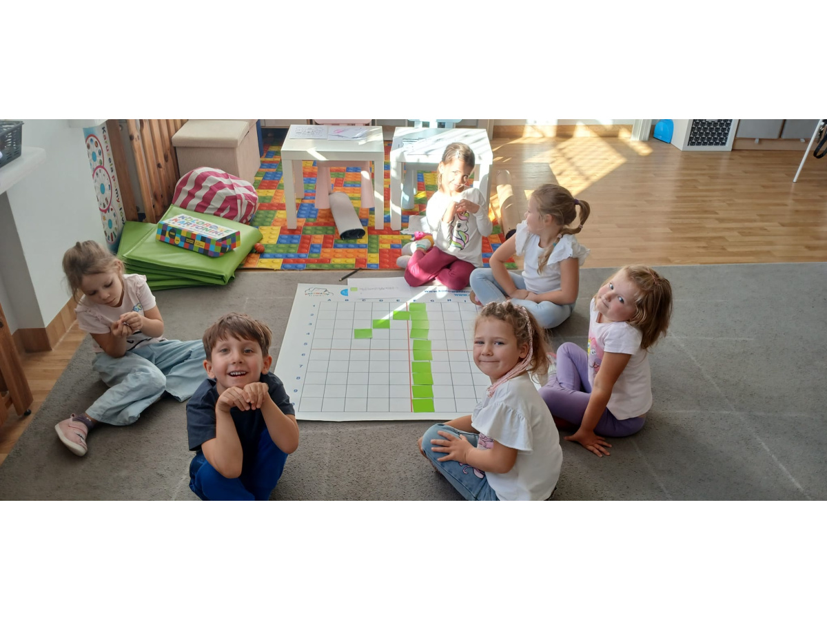 Na dywanie – kodujemy, Z uśmiechami programujemy! Bo nauka przez zabawę To przedszkolna jest podstawa!