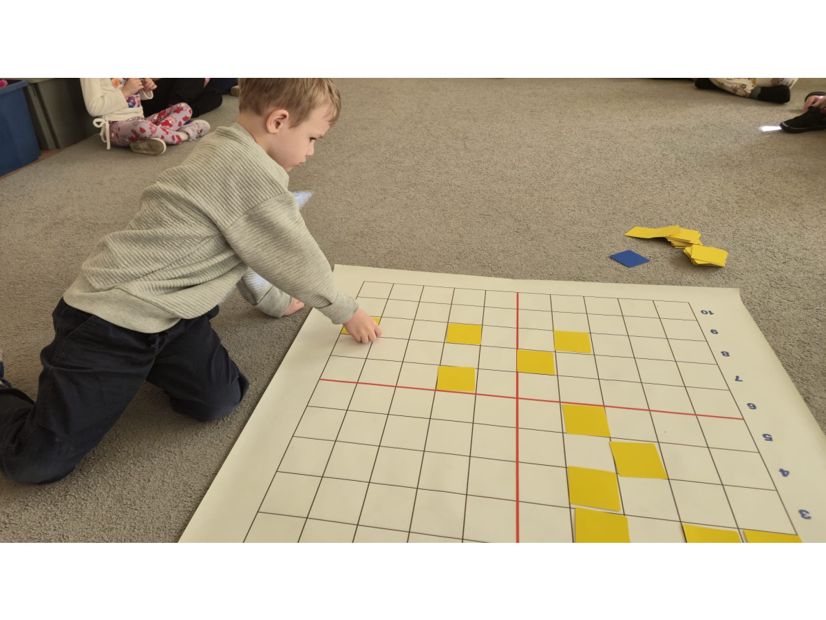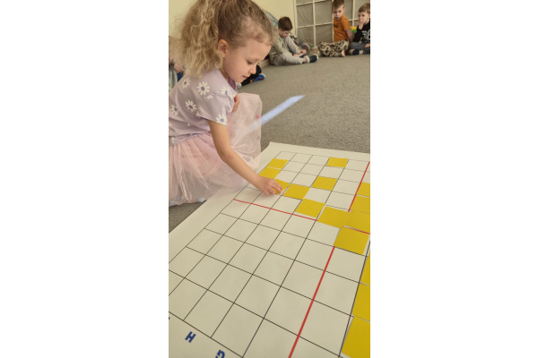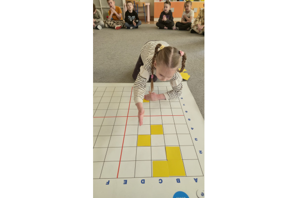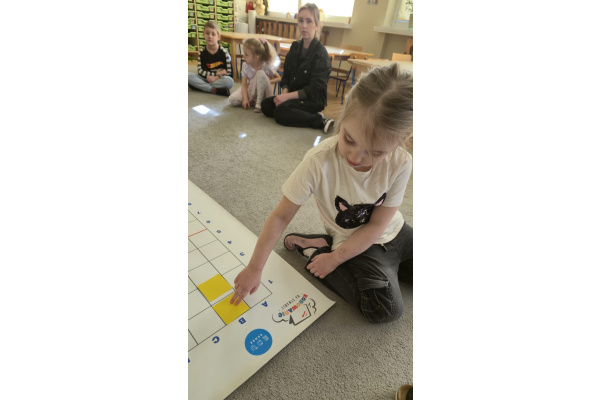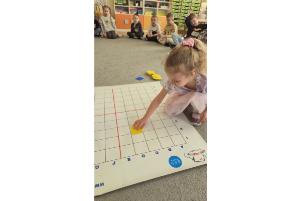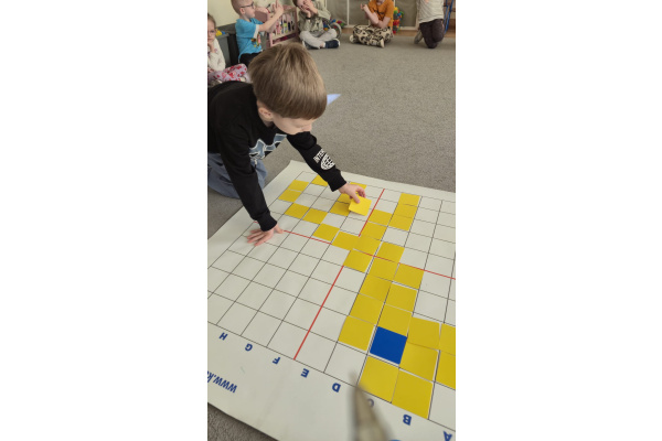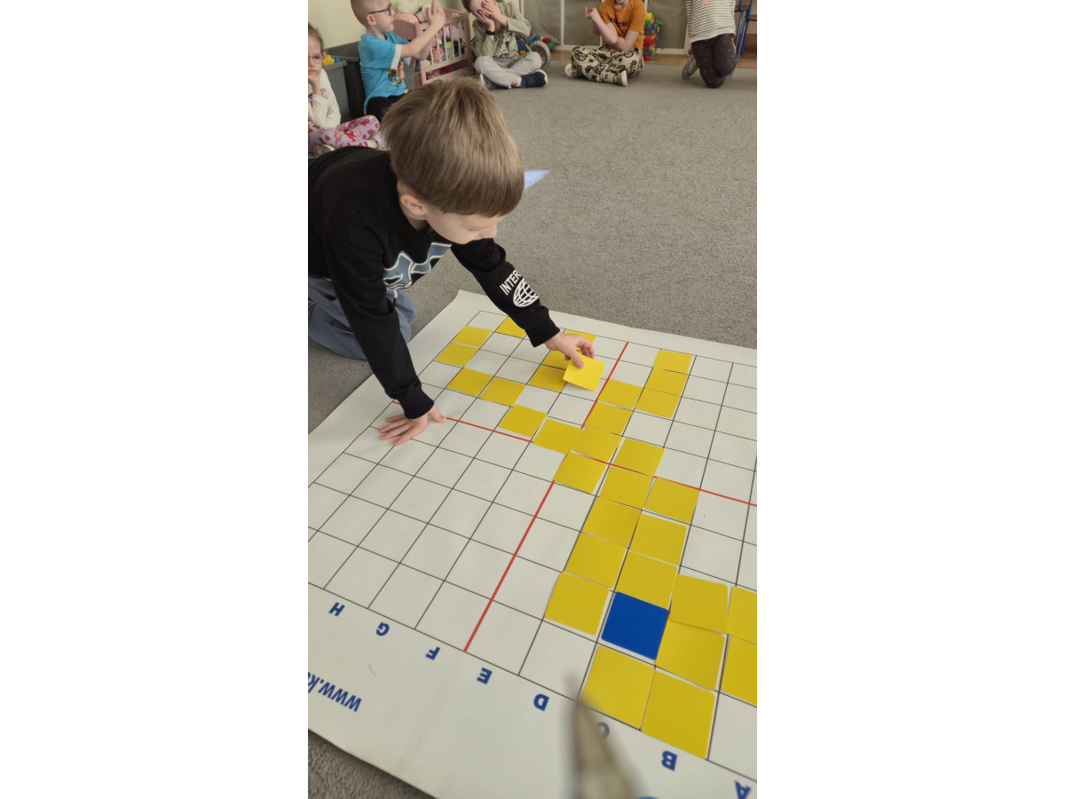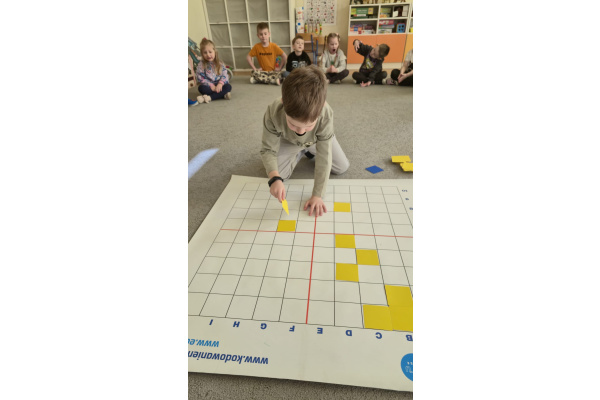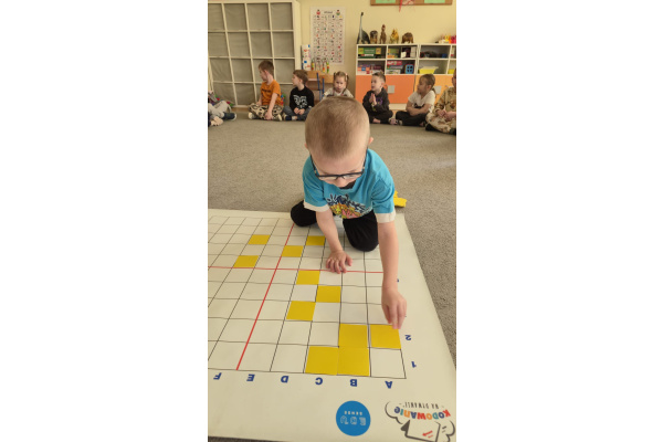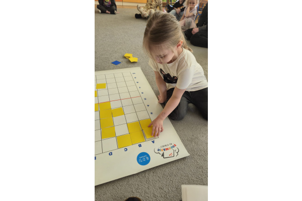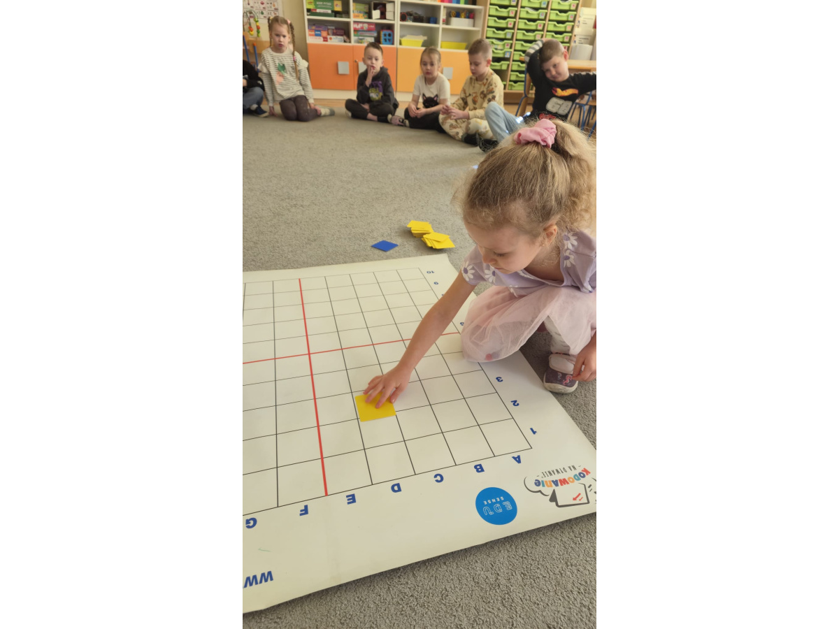 Na dywanie – kodujemy, Z uśmiechami programujemy! Bo nauka przez zabawę To przedszkolna jest podstawa!