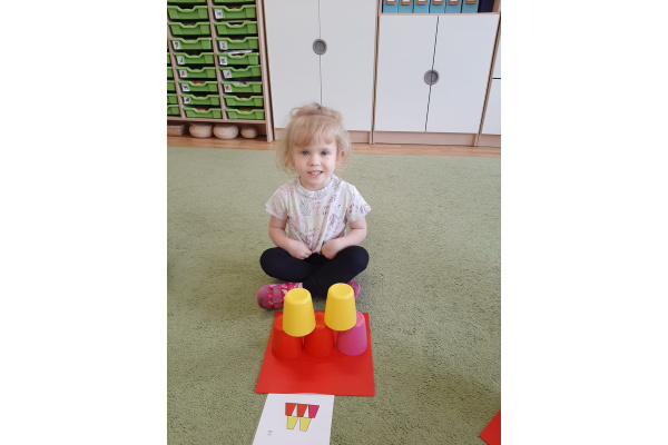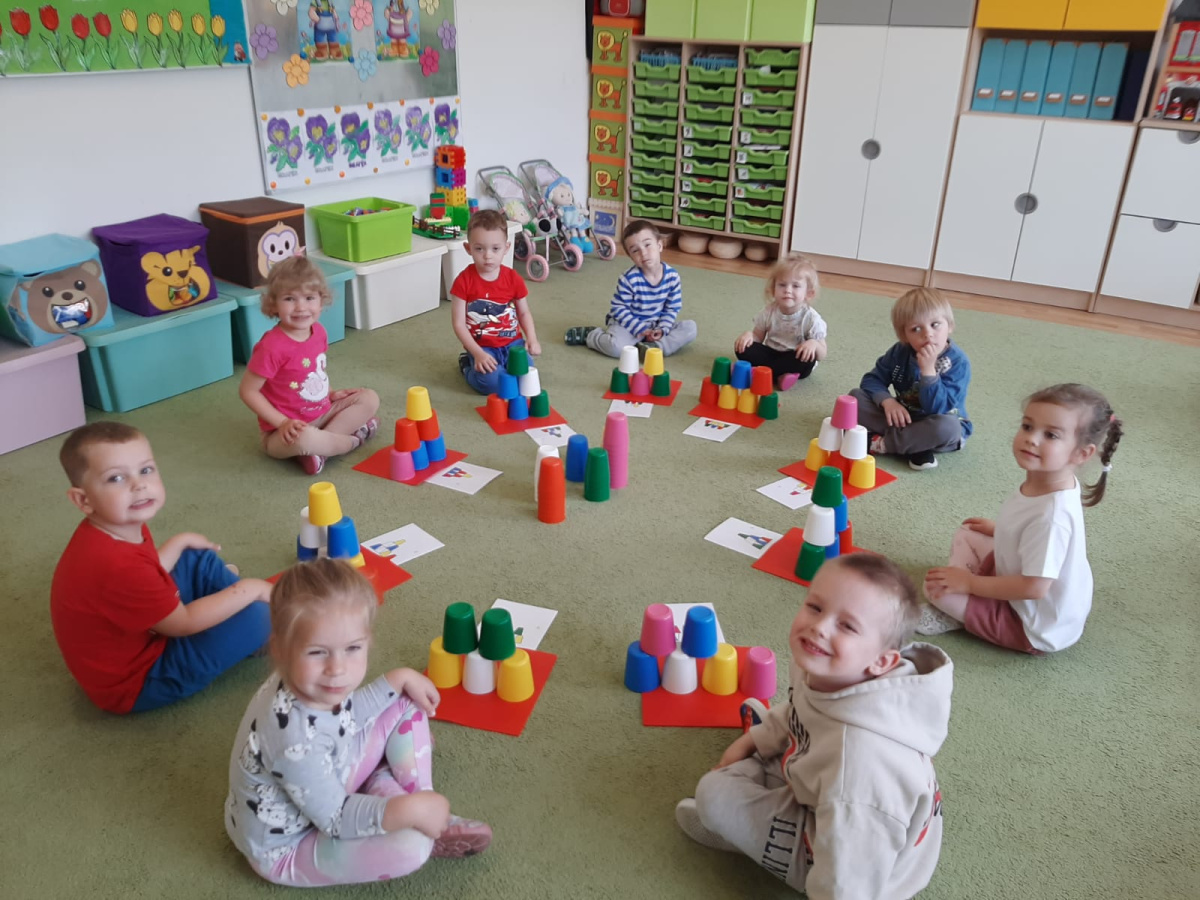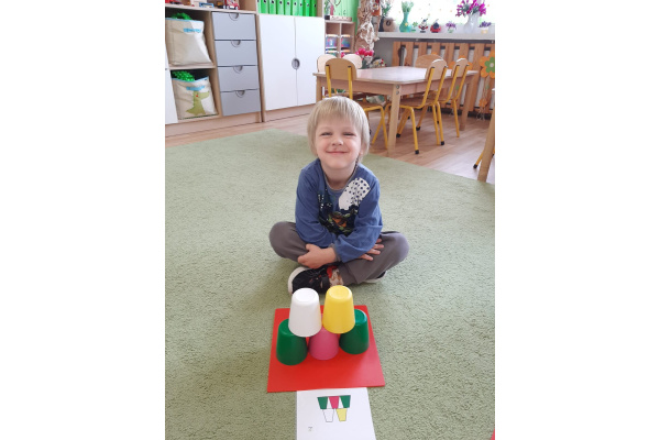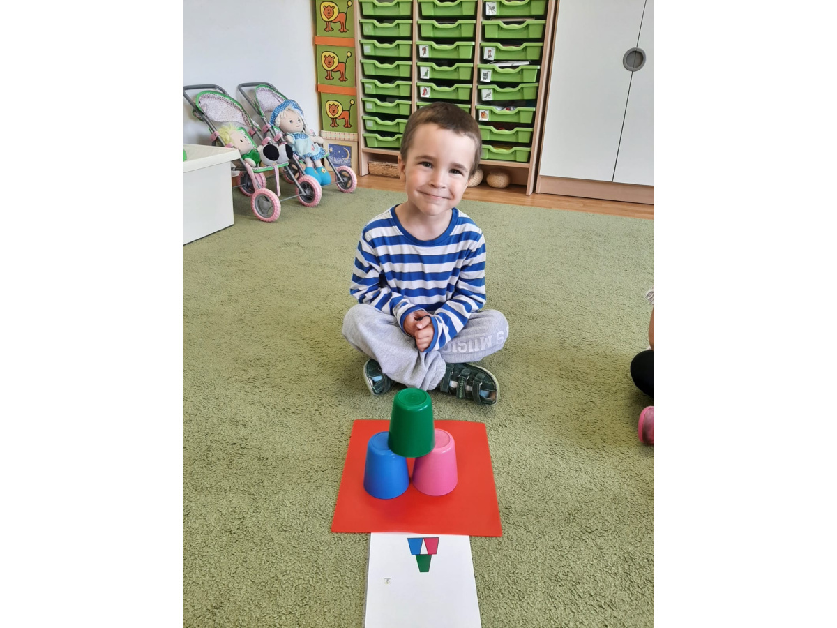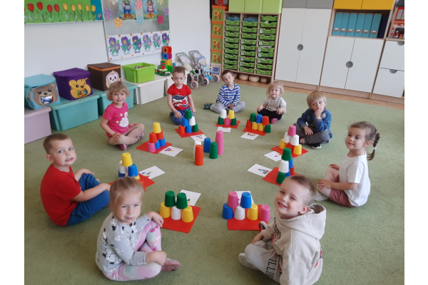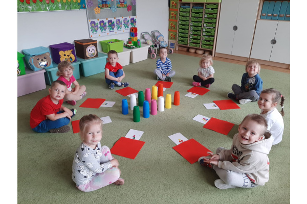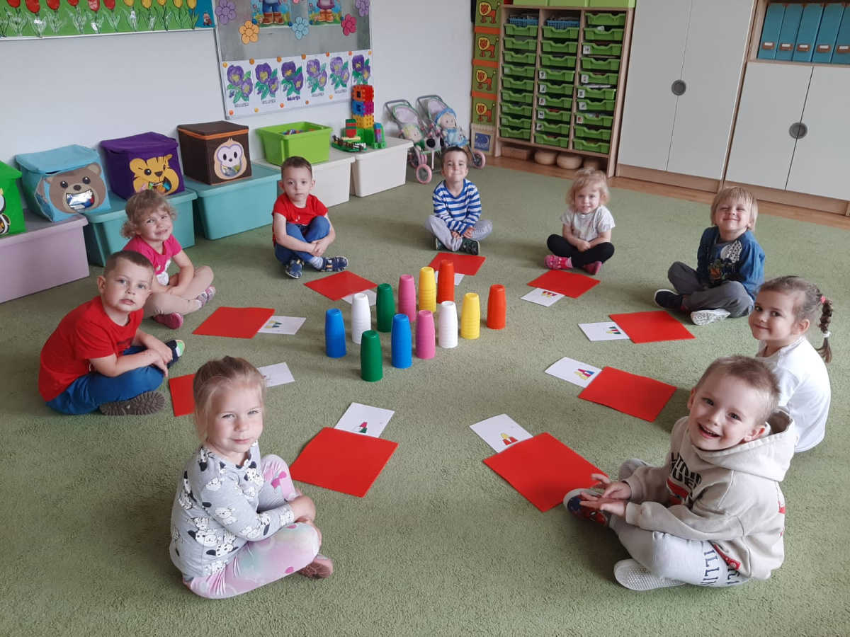 Kolorowe kropki po macie wędrowały, Posłuchaj uważnie i zaznacz, jak się przemieszczały.