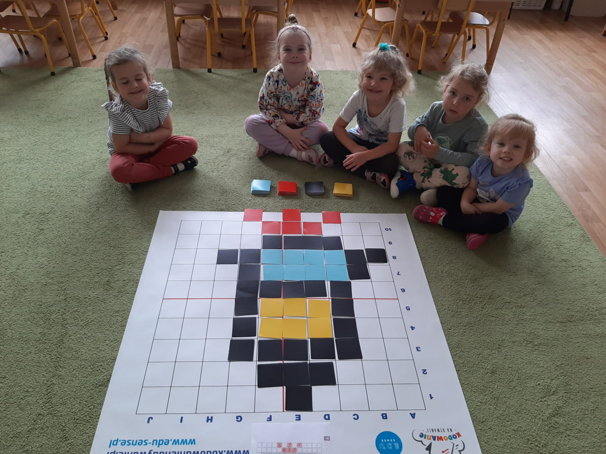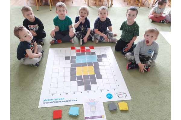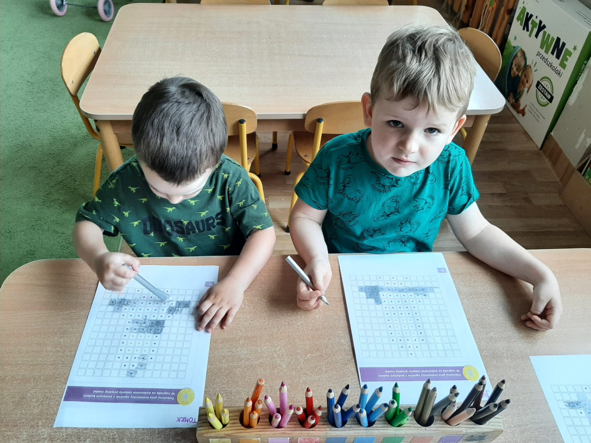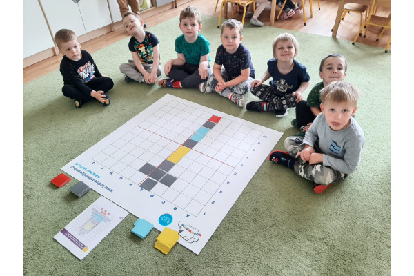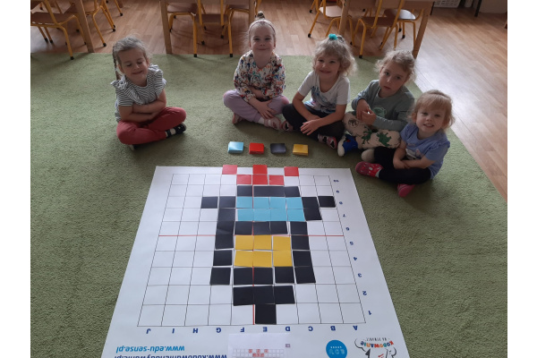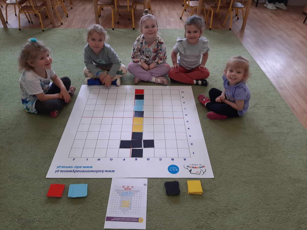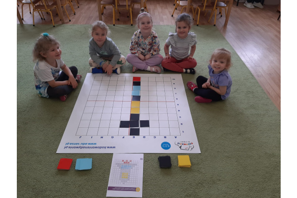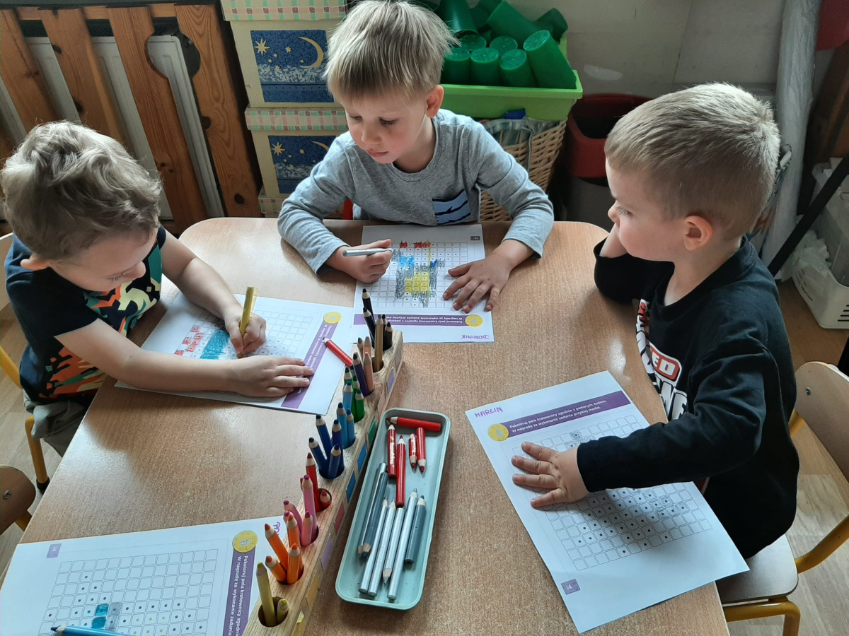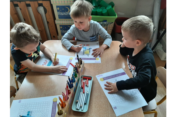 Kolorowe kropki po macie wędrowały, Posłuchaj uważnie i zaznacz, jak się przemieszczały.
