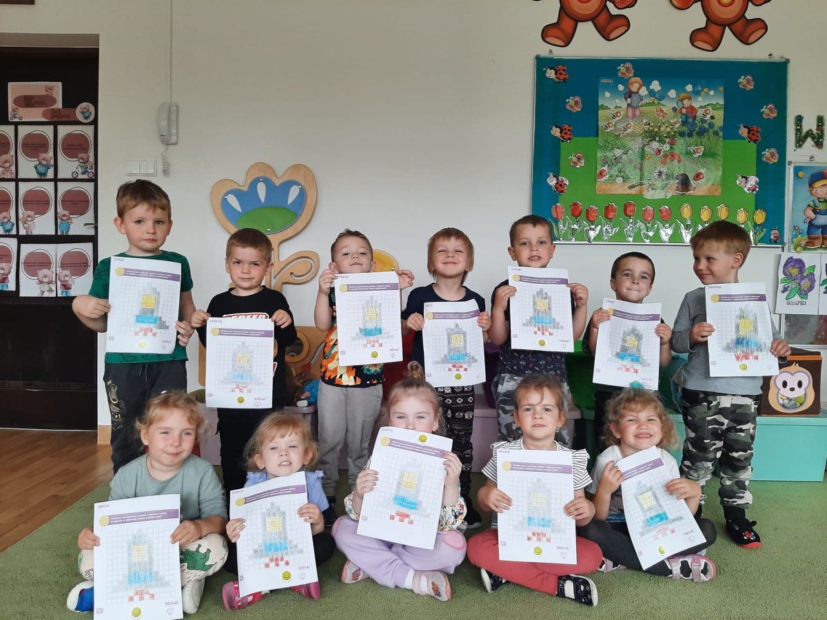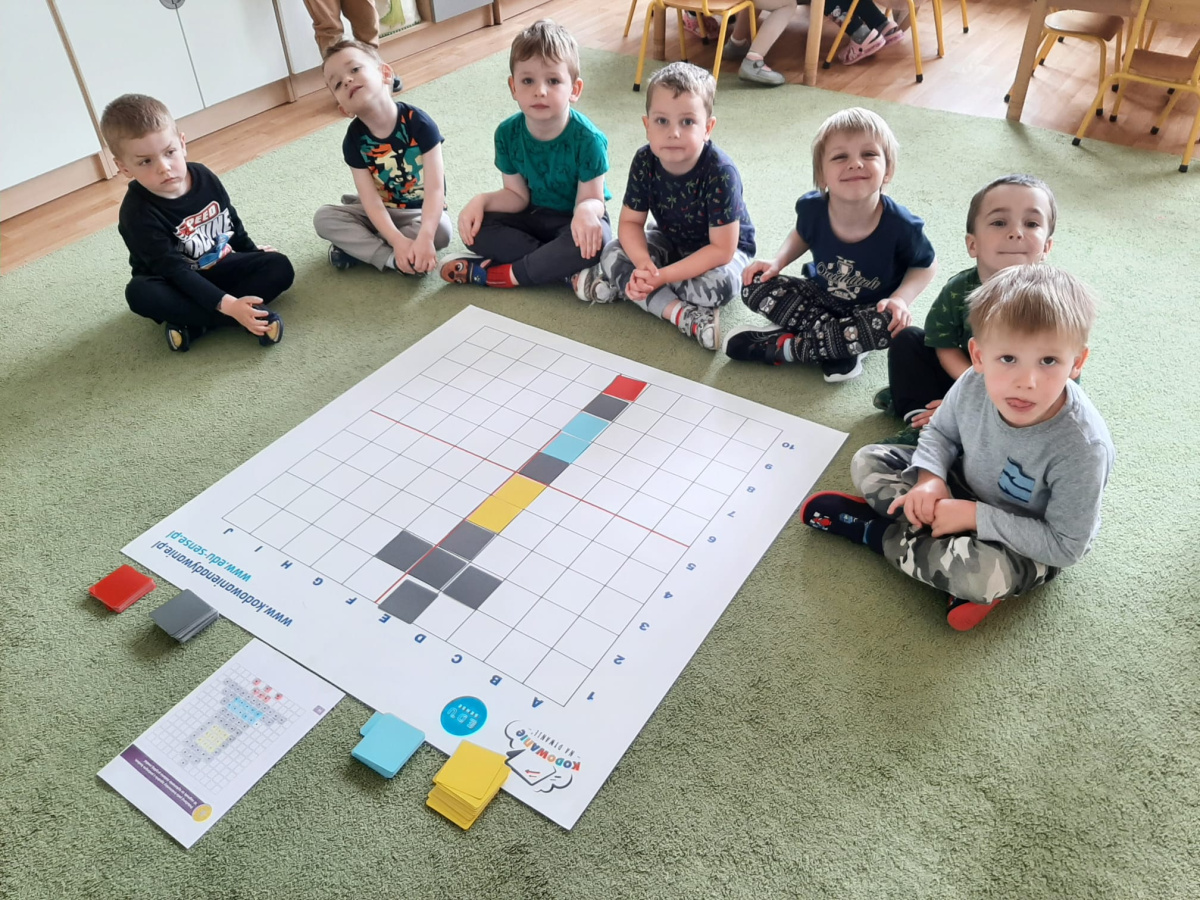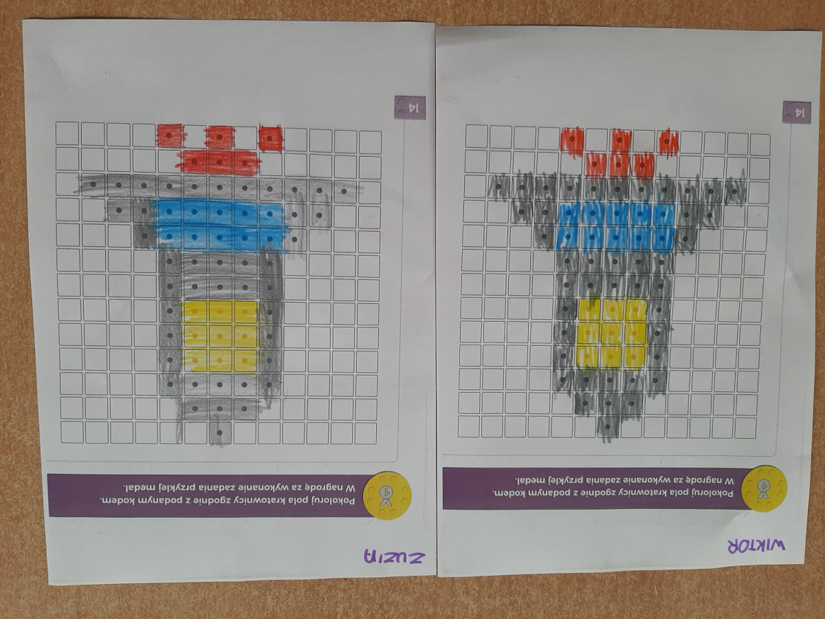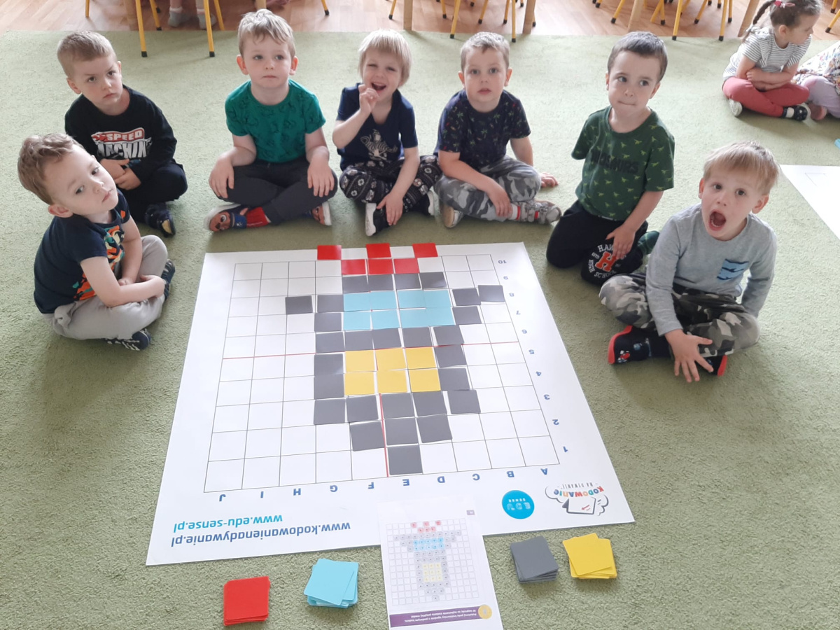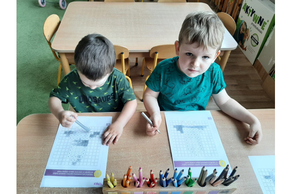 Kolorowe kropki po macie wędrowały, Posłuchaj uważnie i zaznacz, jak się przemieszczały.