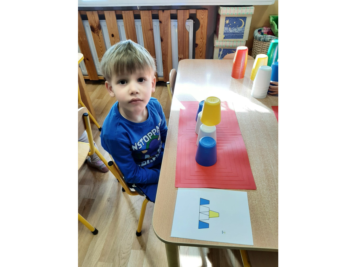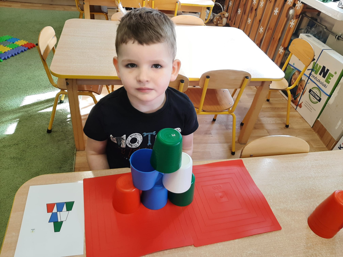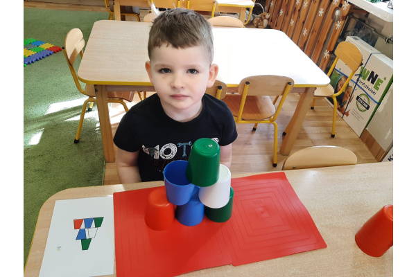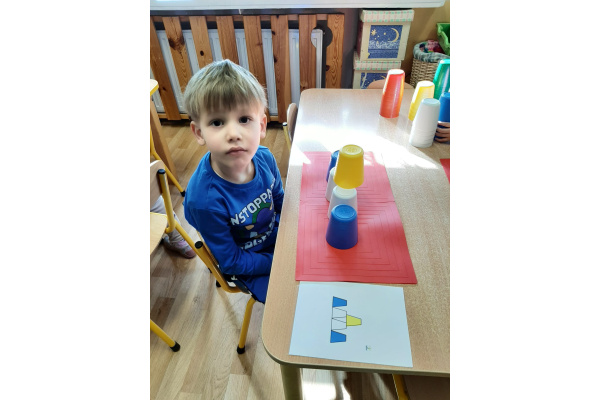 Kodowanie - układanie na macie kolorowych kubków według zakodowanego wzoru