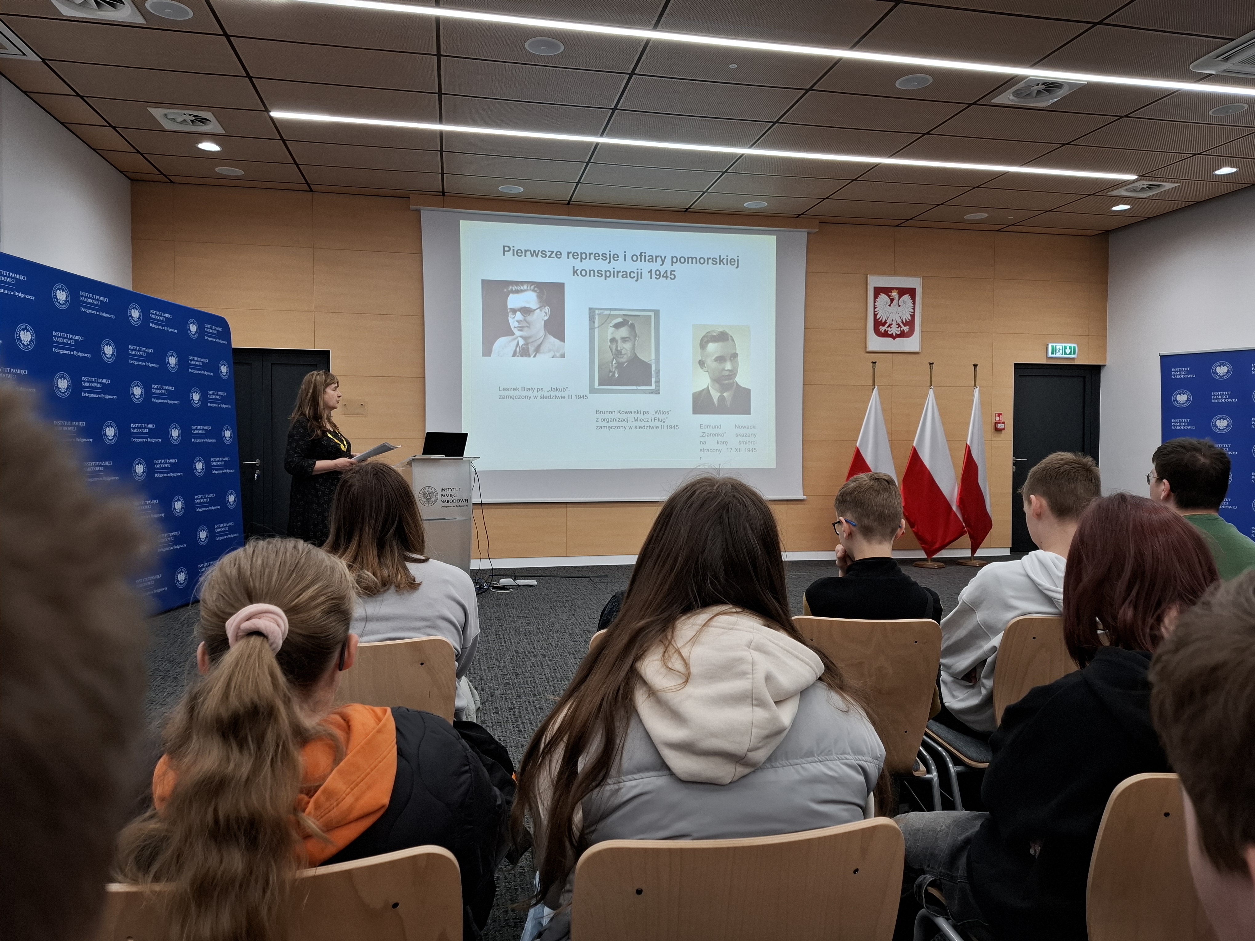 W dniu 08.05.2025 r. w Delegaturze IPN w Bydgoszczy (sala konferencyjna im. Mariana Rejewskiego) z uczniami klasy 7a i 7b uczestniczyliśmy w konferencji edukacyjnej, w celu upamiętnienia 80. rocznicy zakończenia II wojny światowej w Europie.
