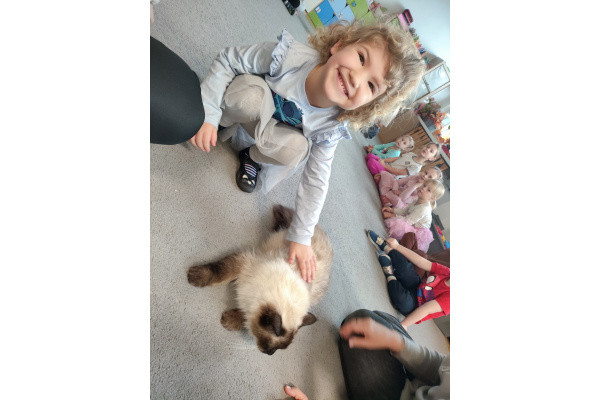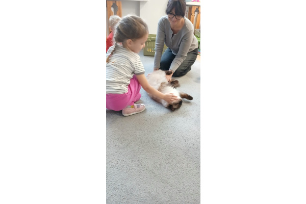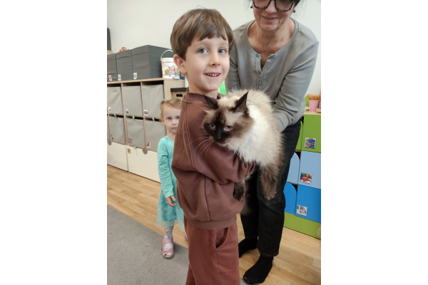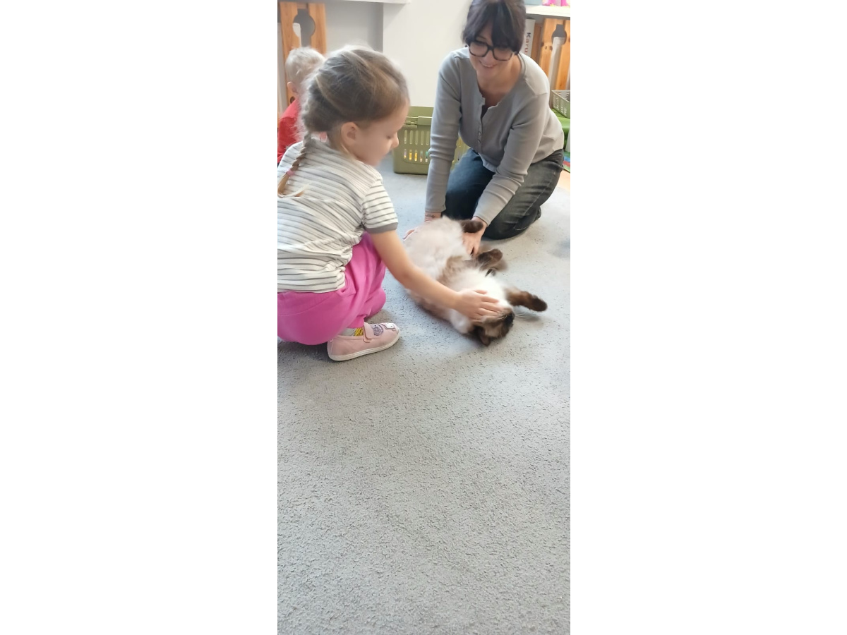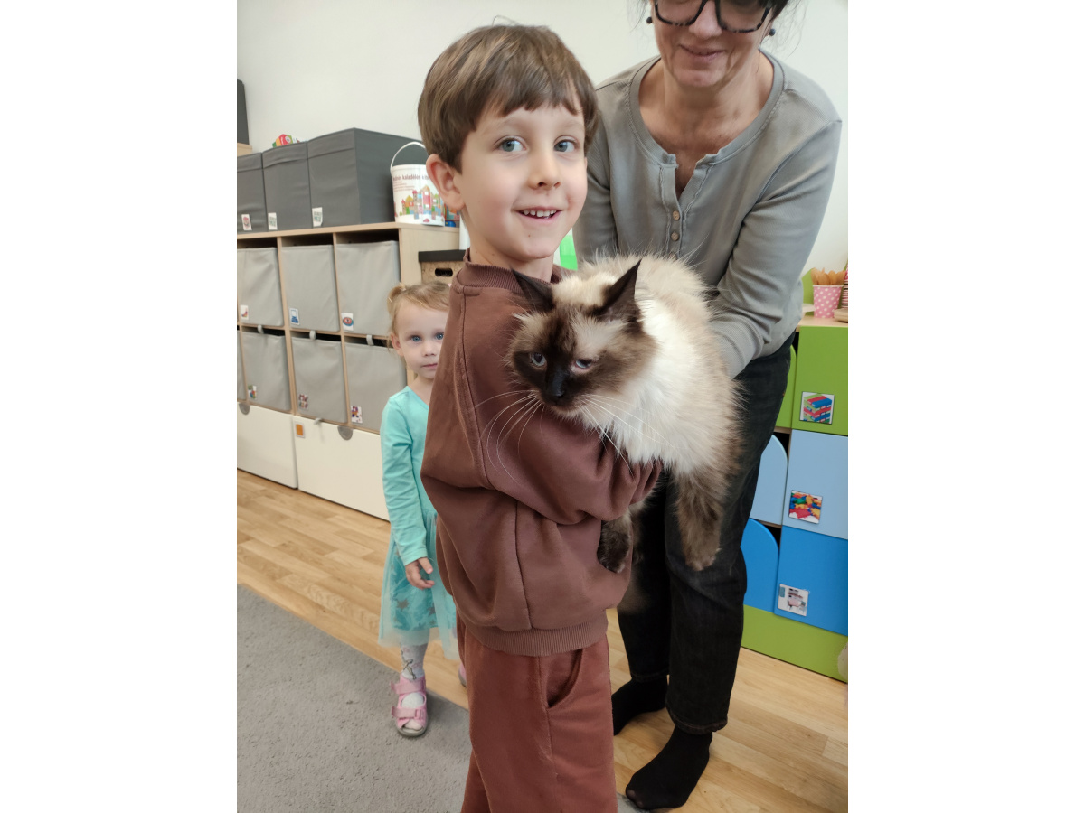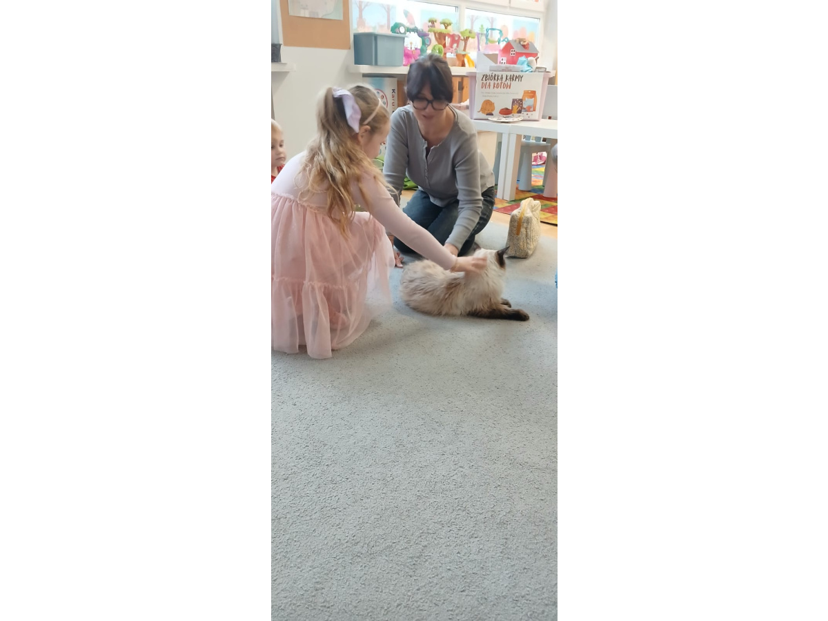 Serdecznie dziękujemy naszym gościom za fantastyczne spotkanie pełne wiedzy, empatii i… kocich psot. Wierzymy, że dzięki takim wydarzeniom w naszych przedszkolakach rozwija się prawdziwa przyjaźń ze zwierzętami – bo kto wie, może wśród Krasnoludków rośnie przyszły weterynarz albo opiekun schroniska?