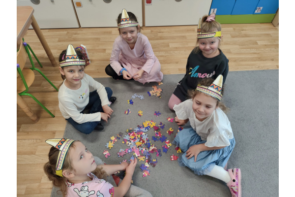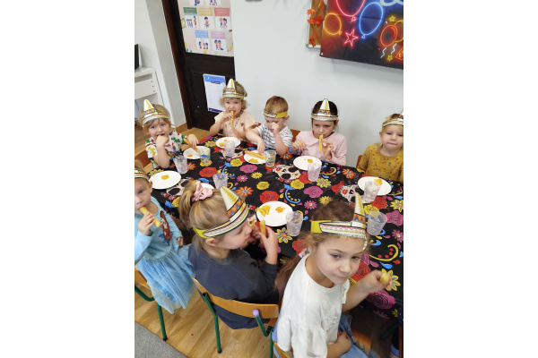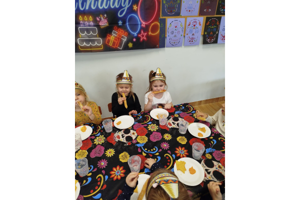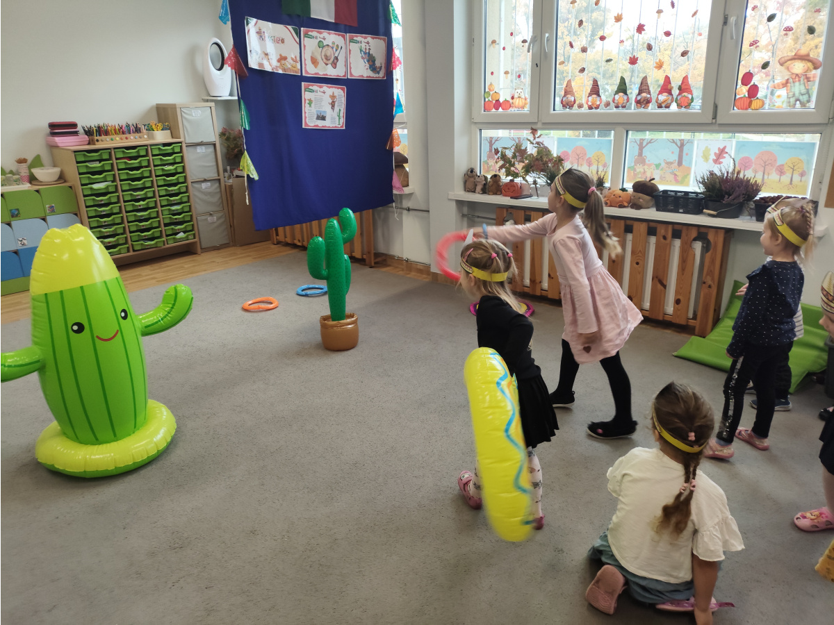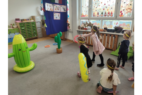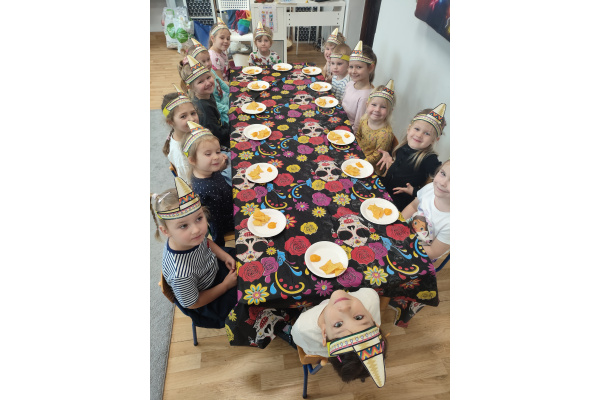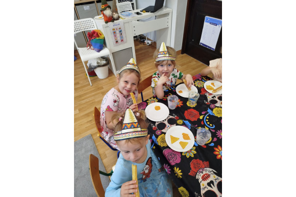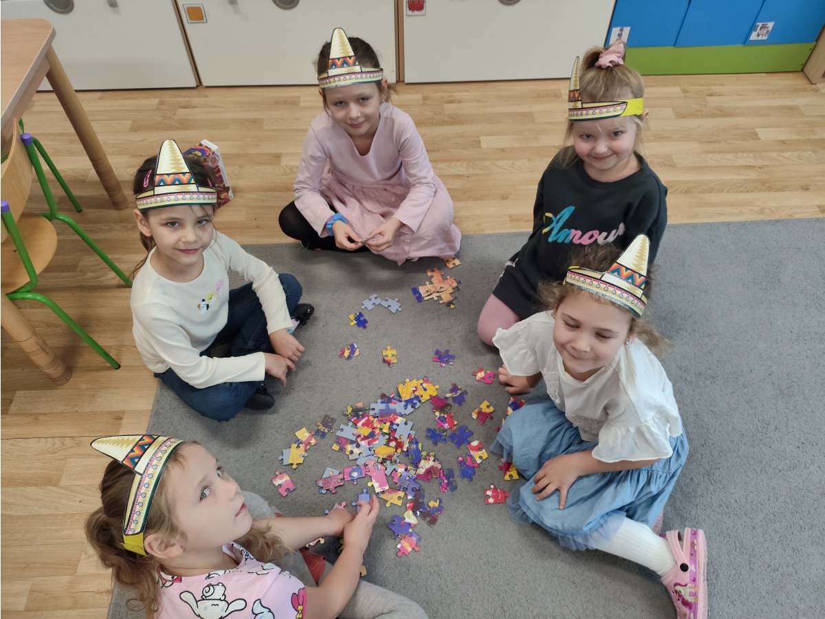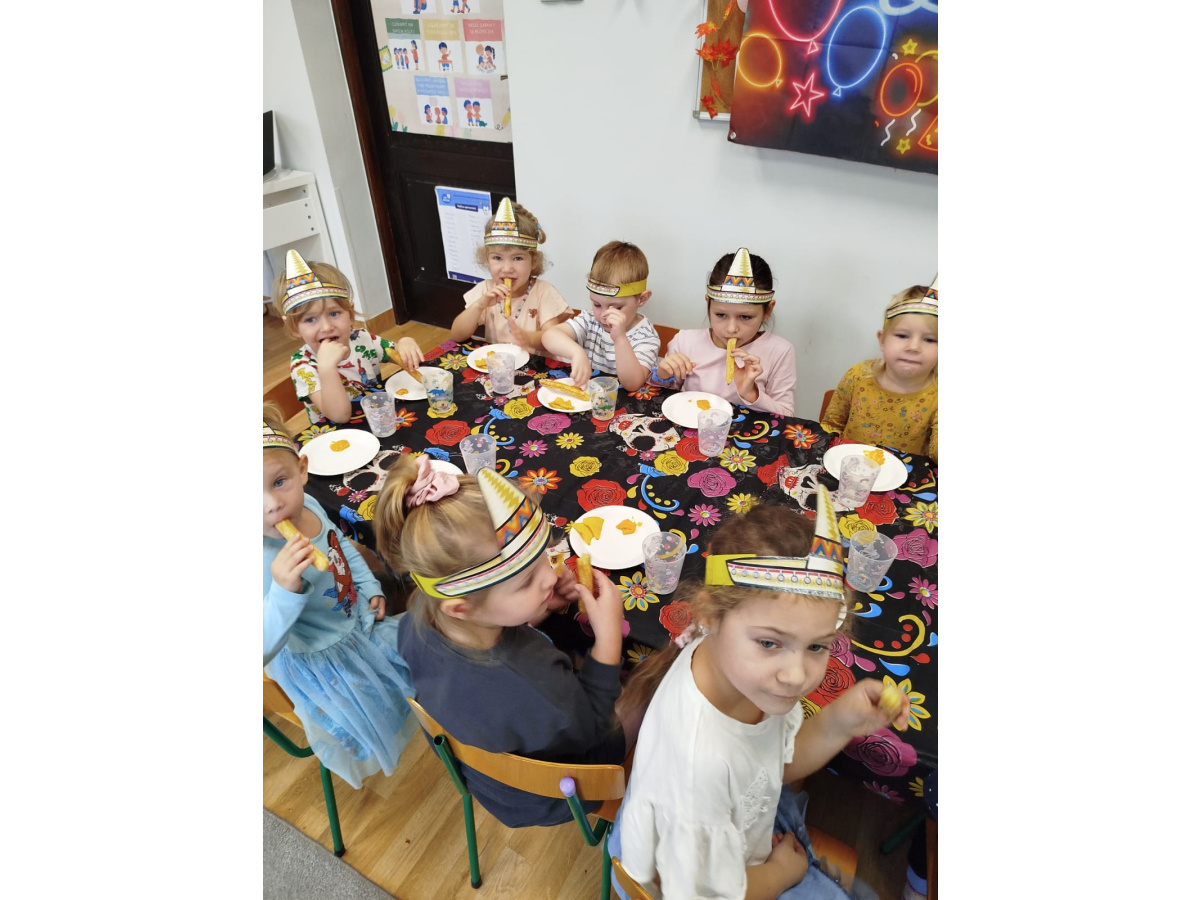 Krasnoludki bawiły się w rzuty do kaktusa, grały w tradycyjne meksykańskie gry oraz układały tematyczne puzzle, rozwijając przy tym spostrzegawczość i zdolności manualne. Tego dnia poznały także najbardziej popoluarne meksykańskie dania, a w przedszkolu miały okazję posmakować nachosów z sosem serowym oraz słodkiego przysmaku jakim są churossy.