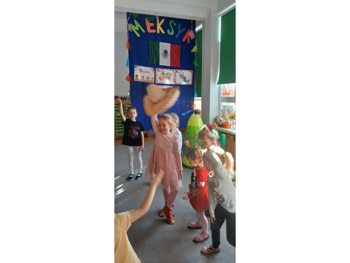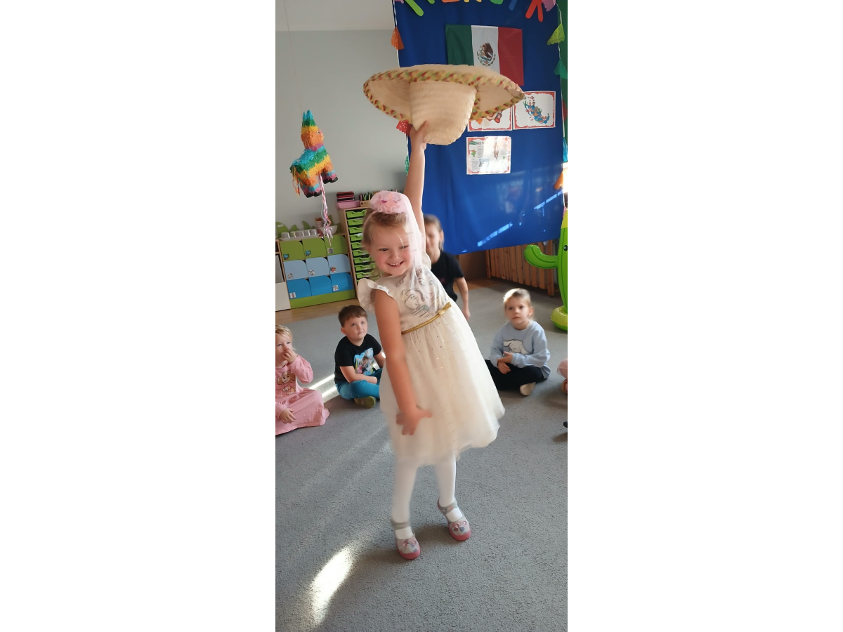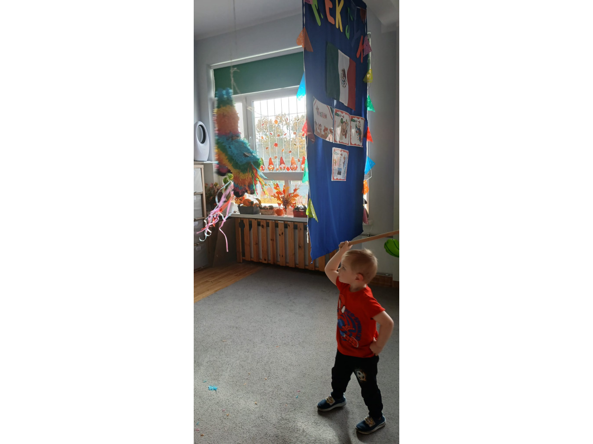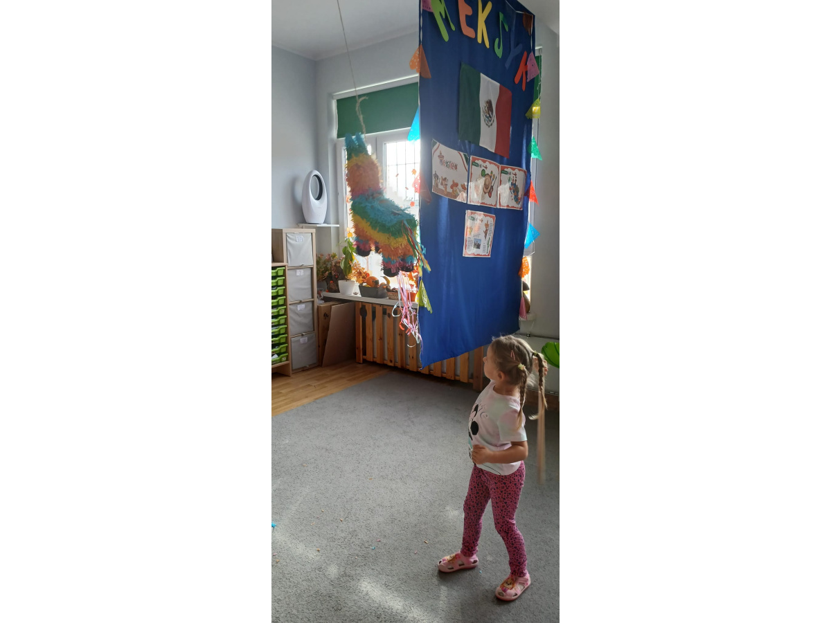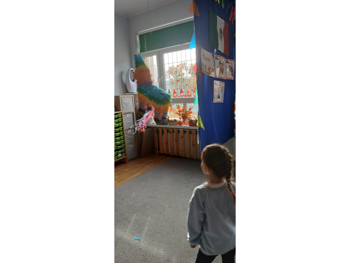 Pierwszego dnia dzieci przygotowały dekoracje w sali, które wprowadziły meksykański klimat. Poznały Ann – Meksykankę, która przesłała im list pełen ciepłych słów i ciekawostek o swoim kraju. Największą atrakcją była zabawa z piniatą, z której po rozbiciu wypadły słodkie niespodzianki!