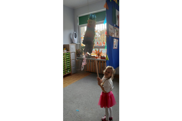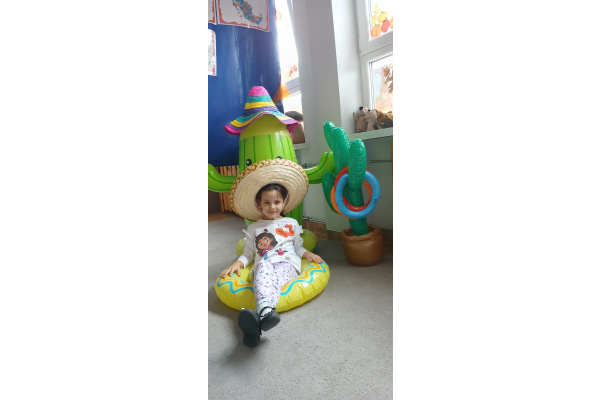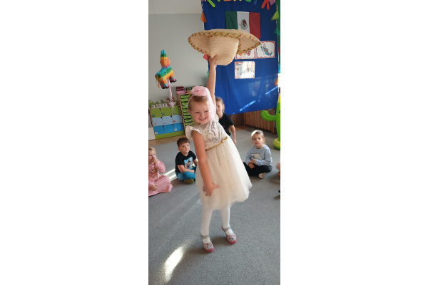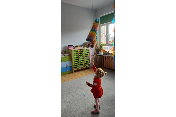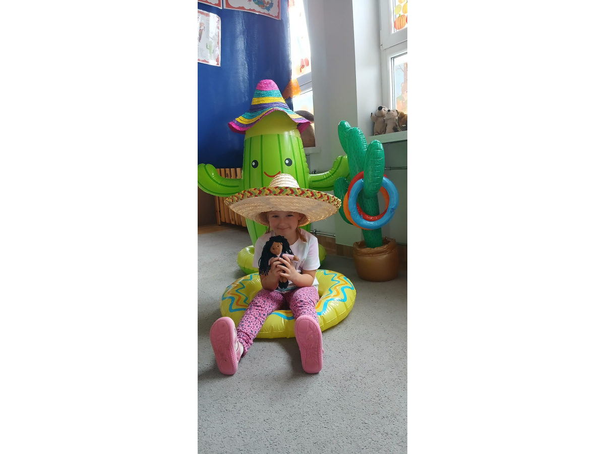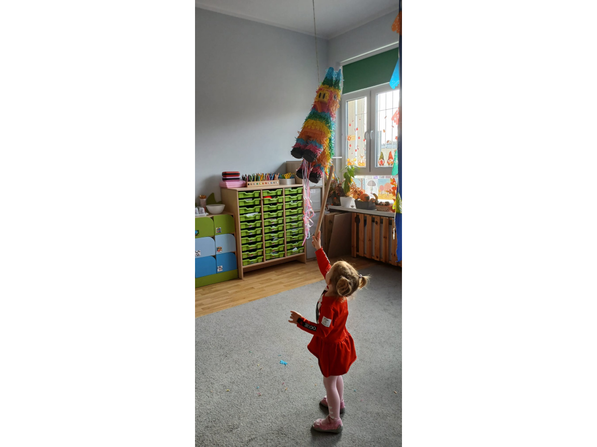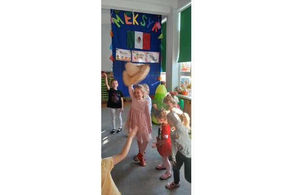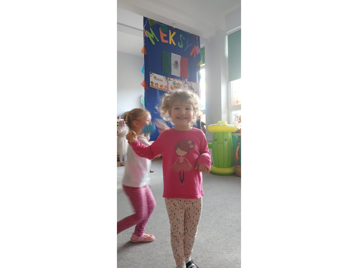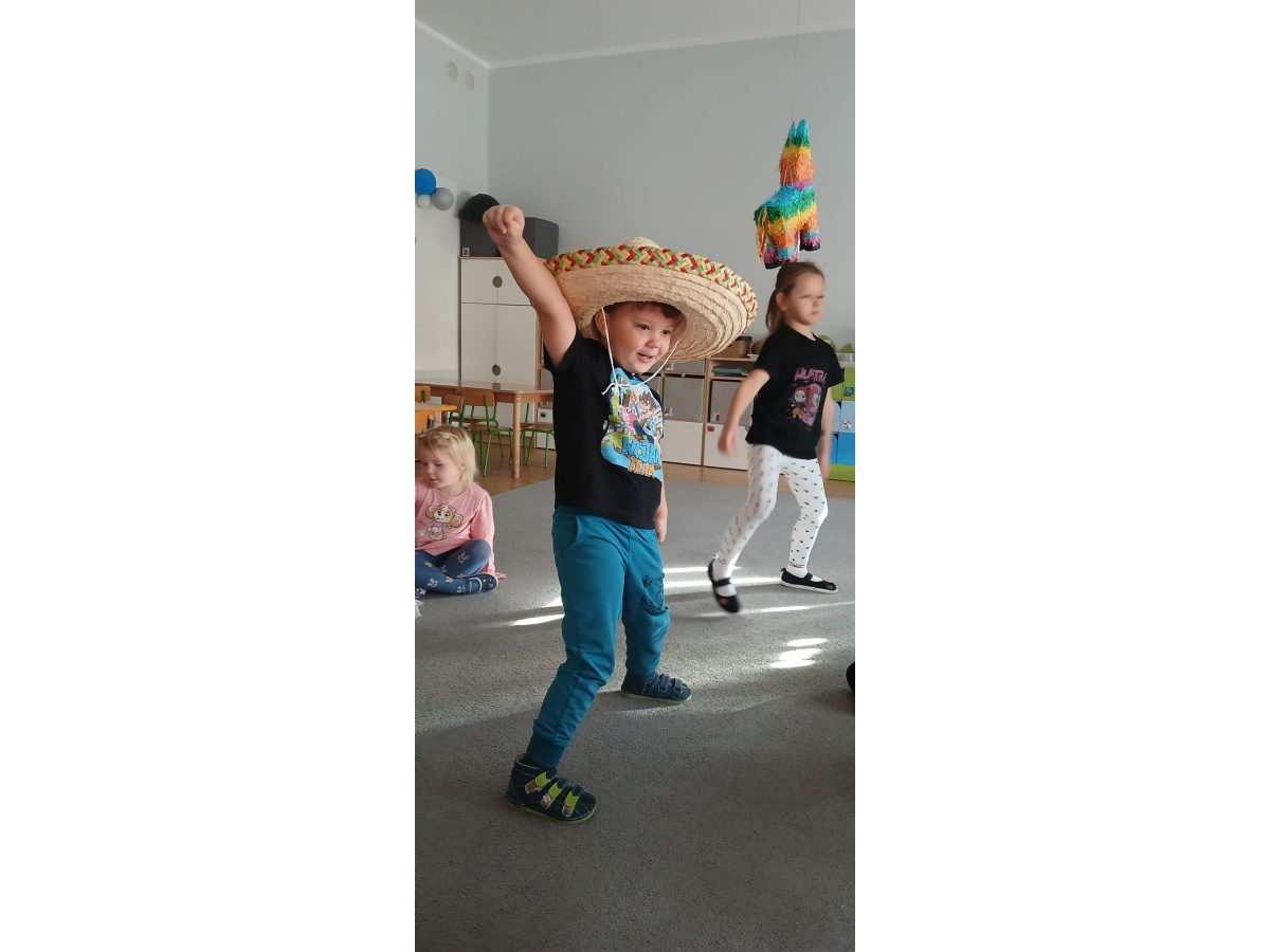 Pierwszego dnia dzieci przygotowały dekoracje w sali, które wprowadziły meksykański klimat. Poznały Ann – Meksykankę, która przesłała im list pełen ciepłych słów i ciekawostek o swoim kraju. Największą atrakcją była zabawa z piniatą, z której po rozbiciu wypadły słodkie niespodzianki!