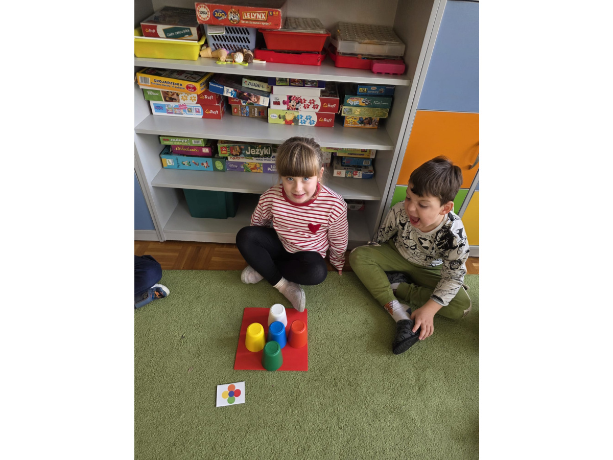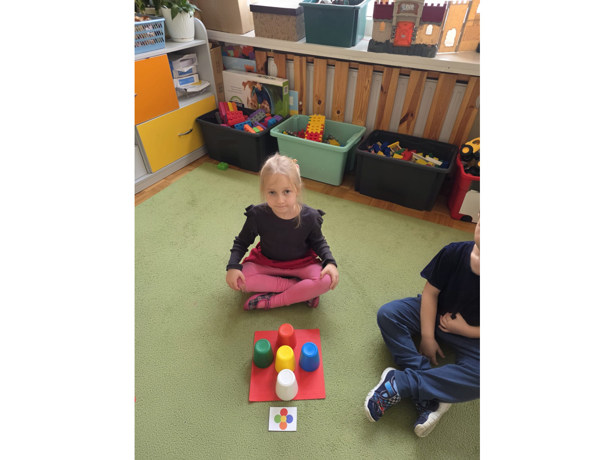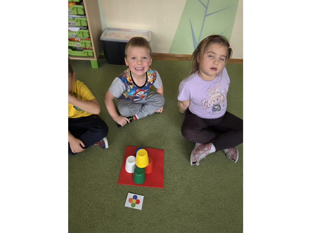 Kodowanie za pomocą kubków. Utrudnieniem było brak koloru pomarańczowego ale z tym super sobie poradziliśmy.