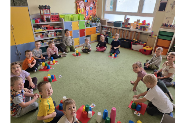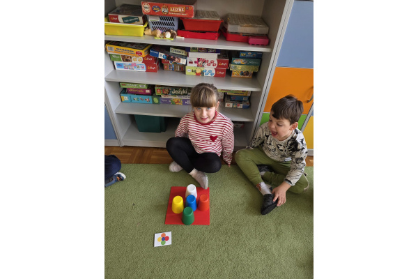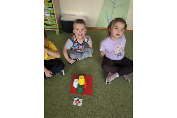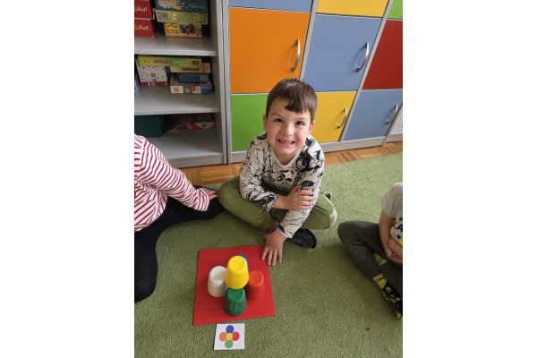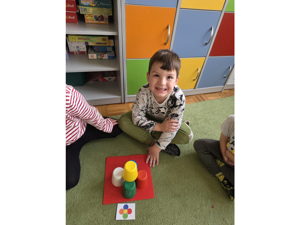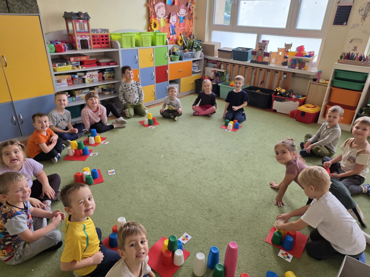 Kodowanie za pomocą kubków. Utrudnieniem było brak koloru pomarańczowego ale z tym super sobie poradziliśmy.