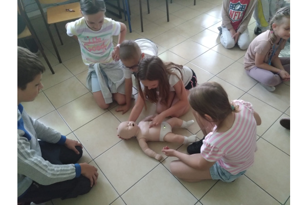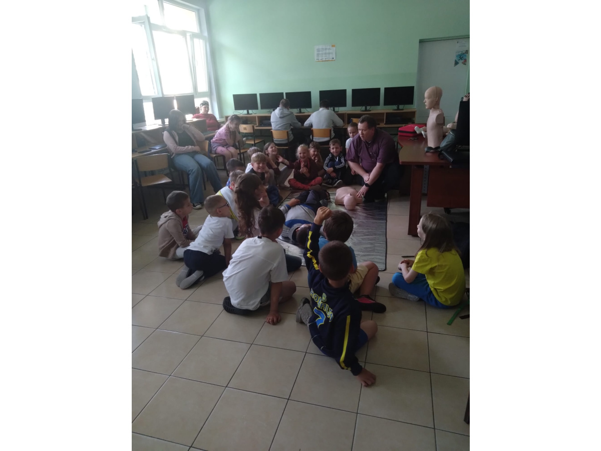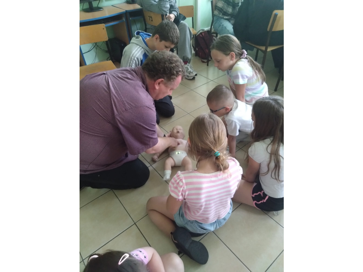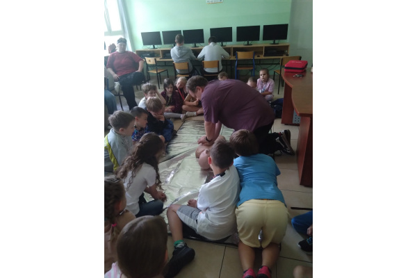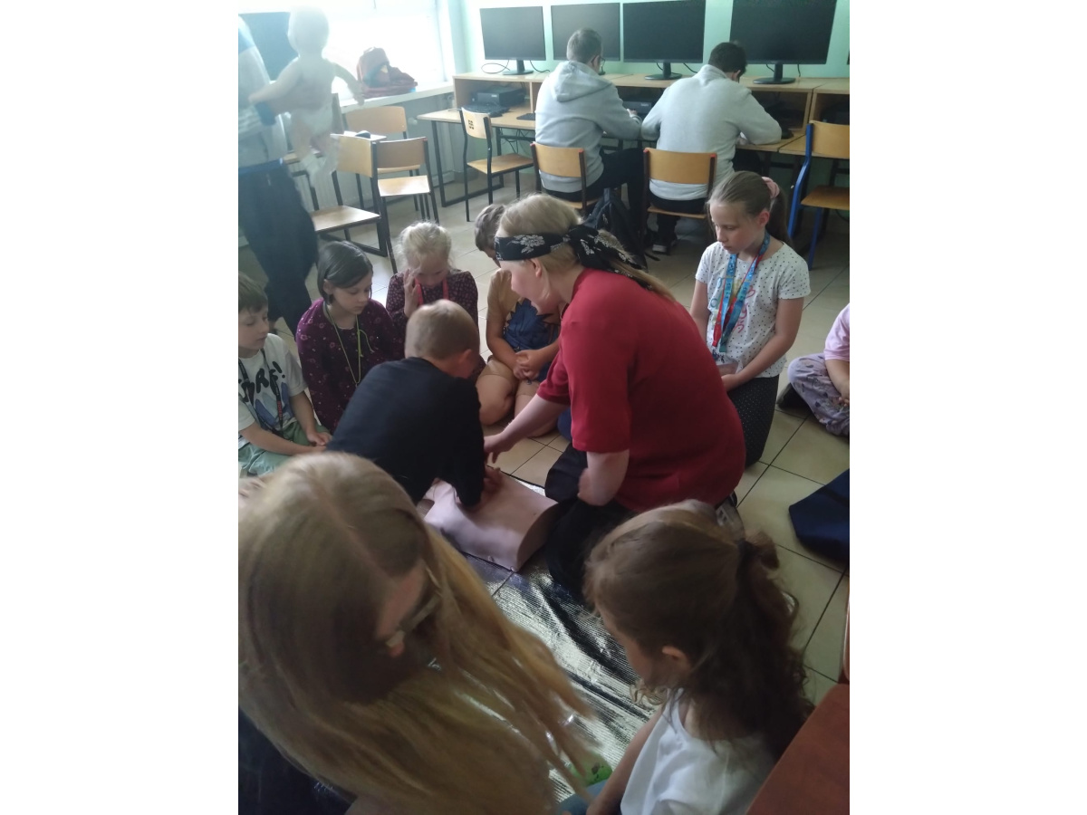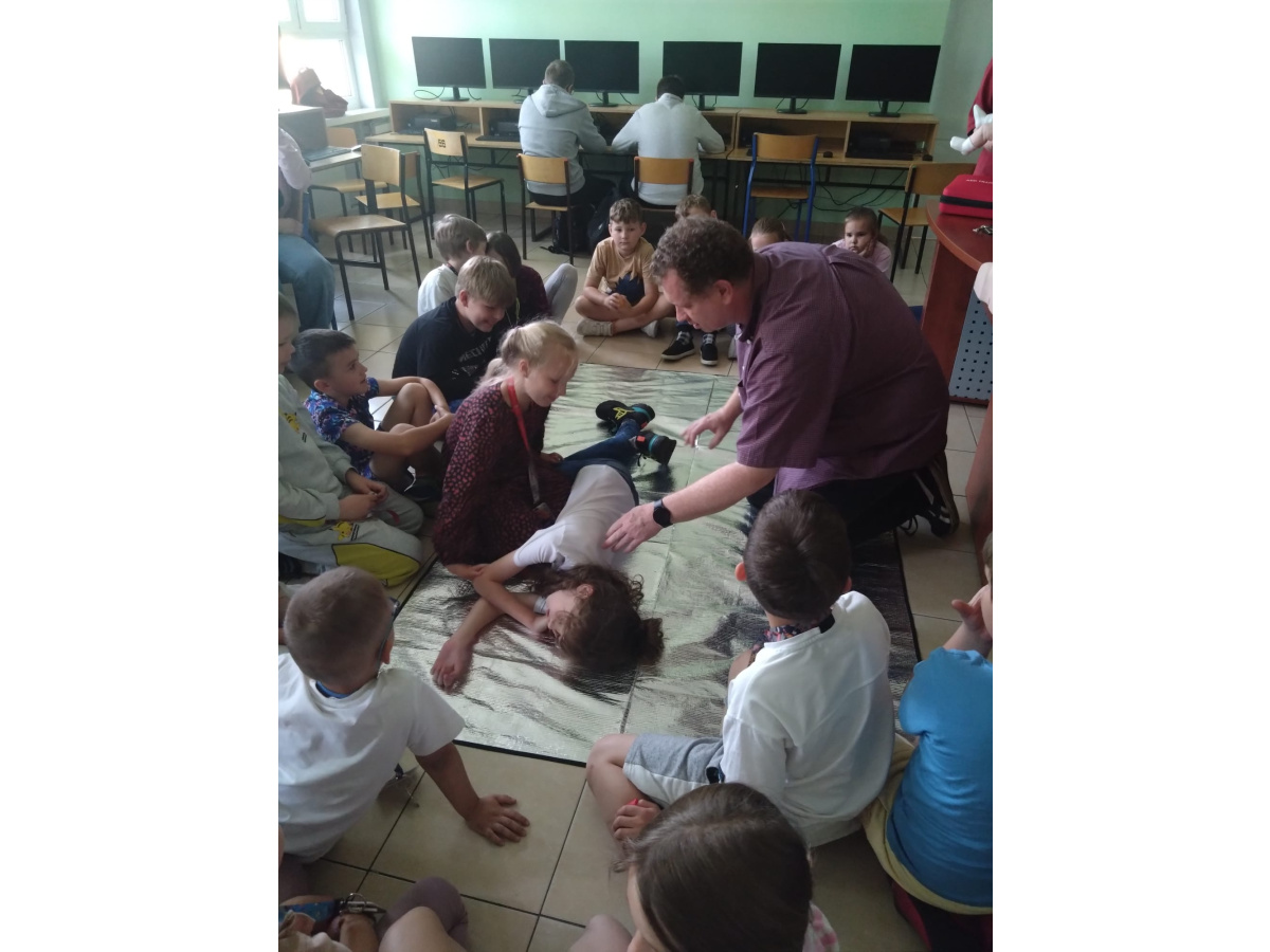 W dniu 17 czerwca 2025 roku w klasie 1a odbyła się wyjątkowa lekcja dotycząca pierwszej pomocy. Zajęcia prowadził Pan Łukasz, który jest doświadczonym instruktorem w tej dziedzinie. W roli pomocników wystąpili uczniowie klasy 8, którzy z zaangażowaniem wspierali młodszych kolegów i koleżanki.