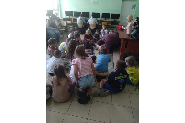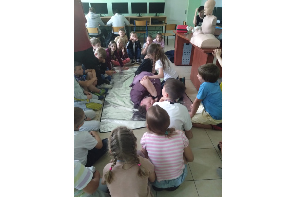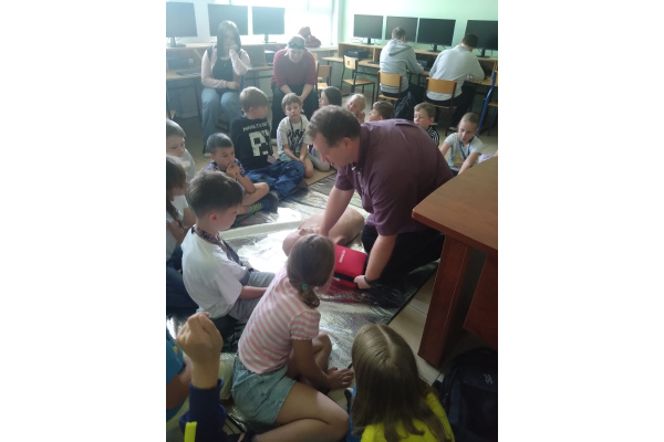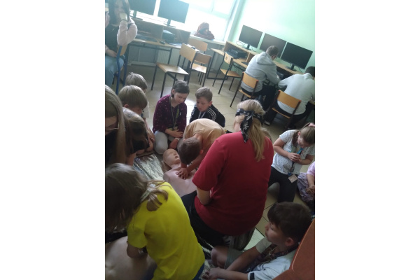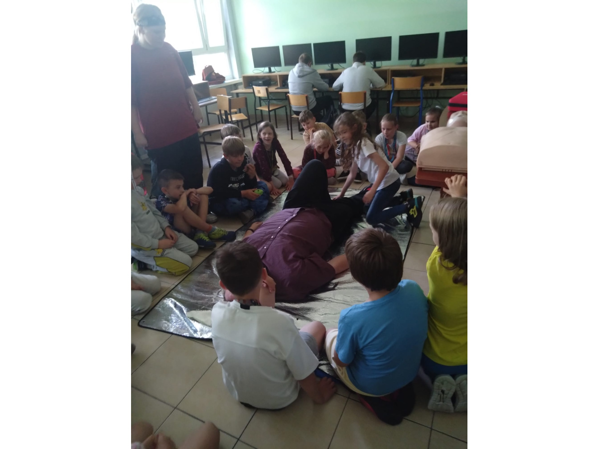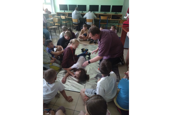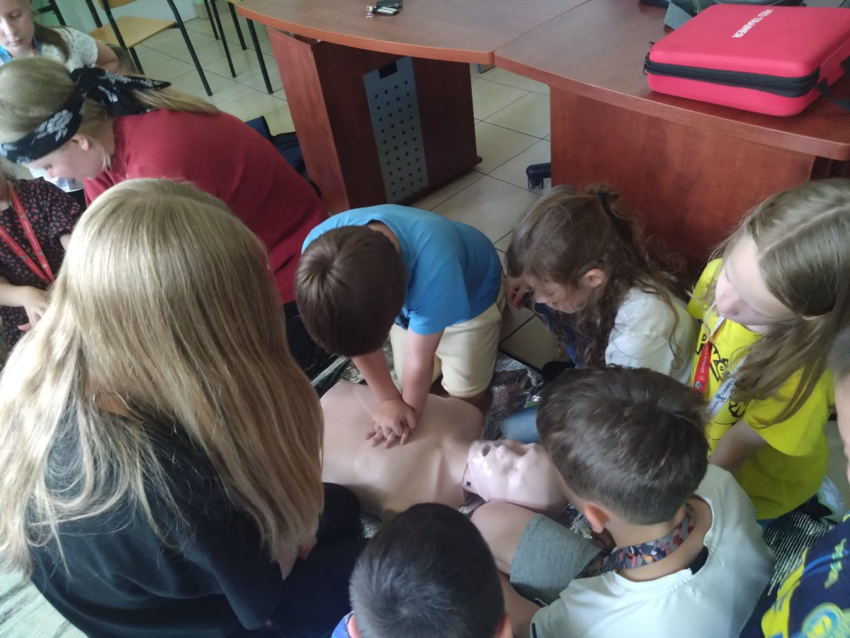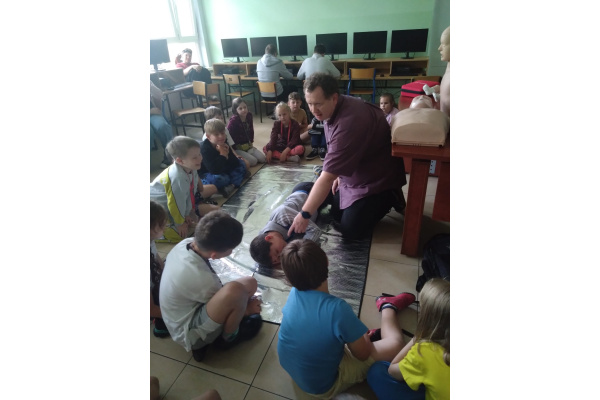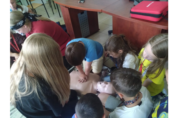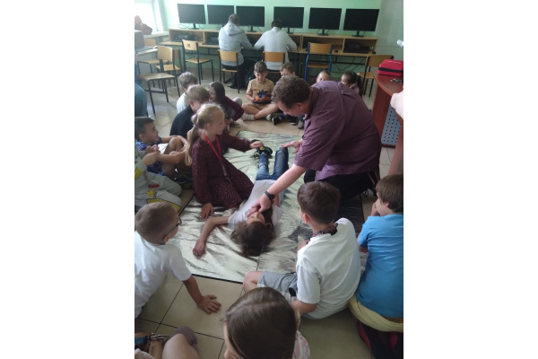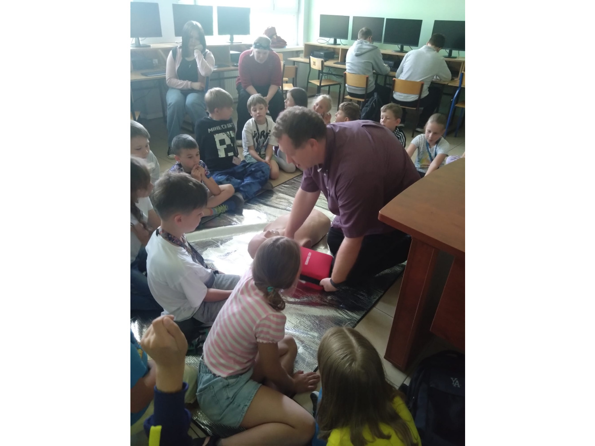W dniu 17 czerwca 2025 roku w klasie 1a odbyła się wyjątkowa lekcja dotycząca pierwszej pomocy. Zajęcia prowadził Pan Łukasz, który jest doświadczonym instruktorem w tej dziedzinie. W roli pomocników wystąpili uczniowie klasy 8, którzy z zaangażowaniem wspierali młodszych kolegów i koleżanki.