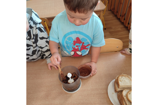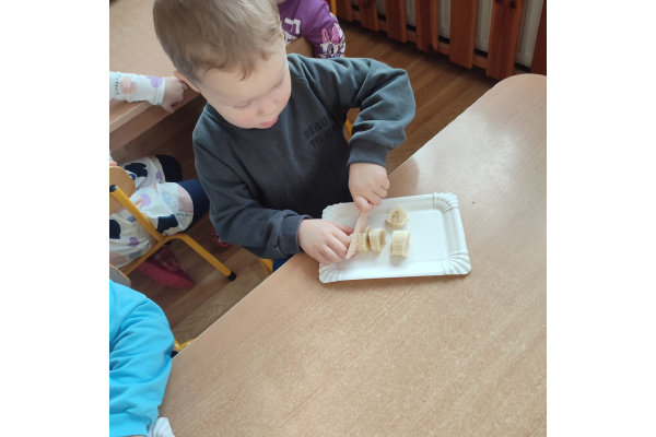 Dziś dzieci z naszego przedszkola z okazji Dnia Warzyw i Owoców przygotowywały pyszne owocowe smakołyki: sałatkę lub szaszłyki.