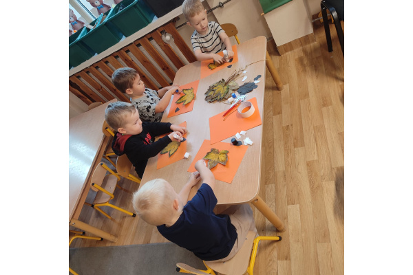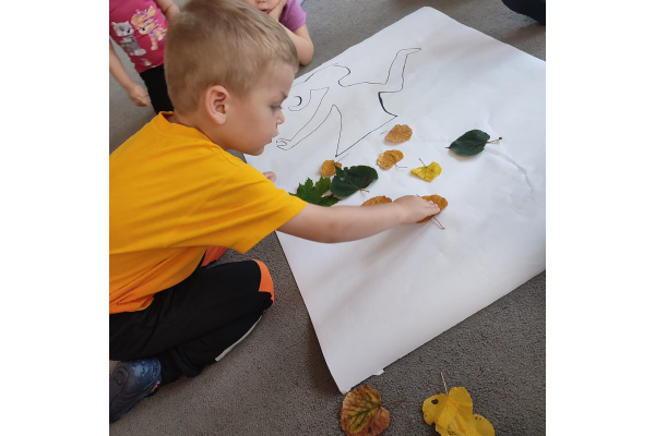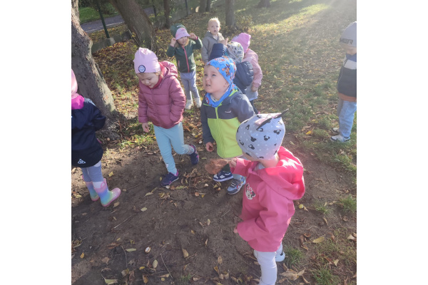 Dzieci z grupy „Misie” z radością udały się na dwór, aby wspólnie poszukać oznak jesieni