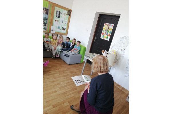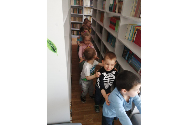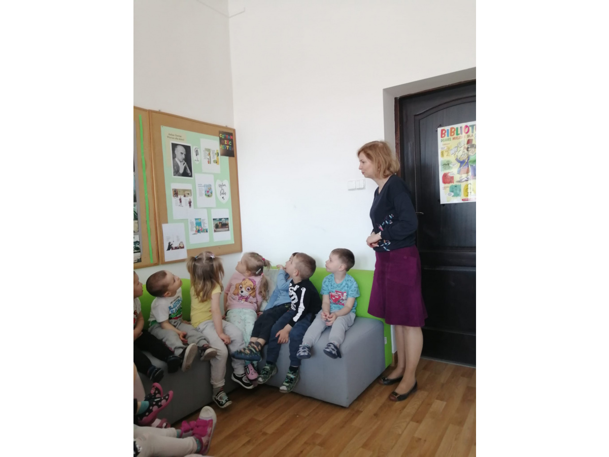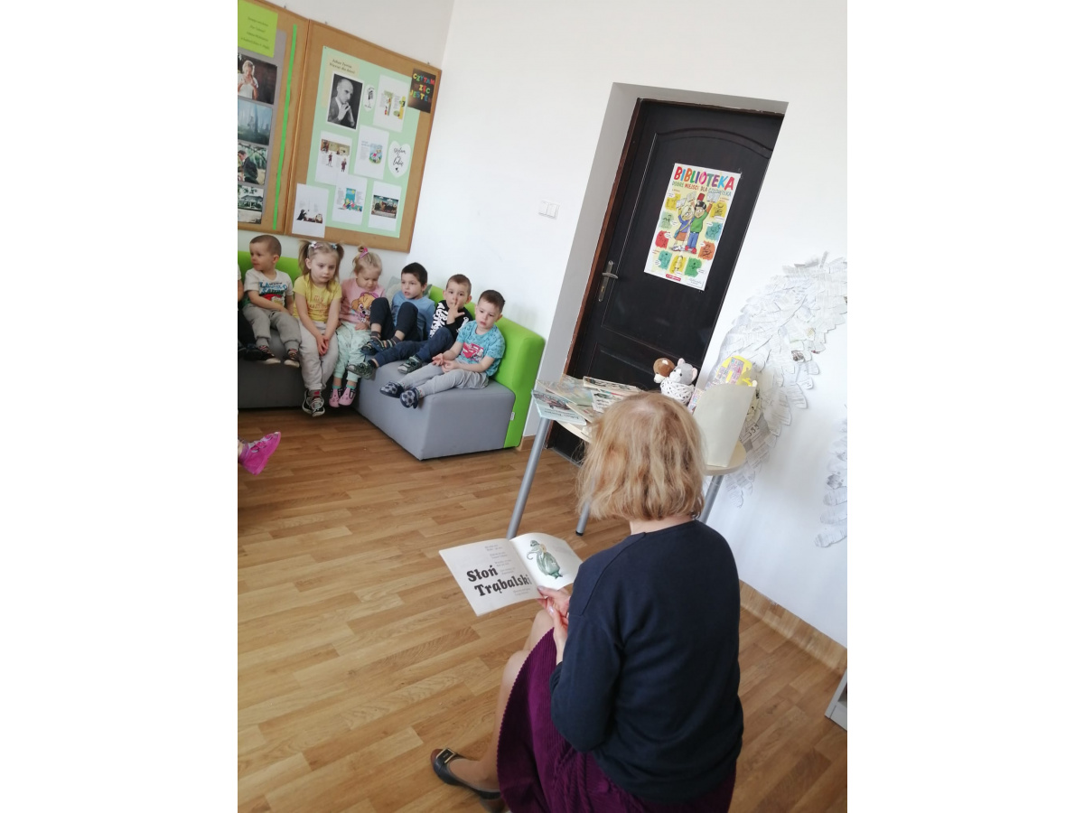 Grupa Misiów odwiedziłam dzisiaj 28.04 bibliotekę szkolną. Słuchały wierszy Juliana Tuwima. Tak jak w wierszu lokomotywa dzieci stworzyły własną lokomotywę i dzięki niej zwiedziły całą bibliotekę.