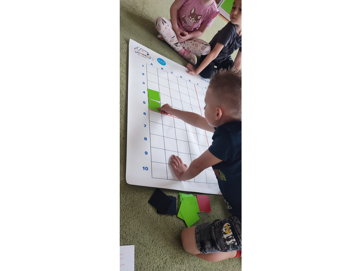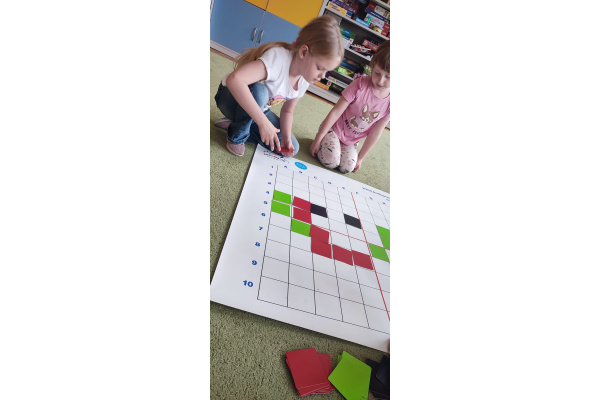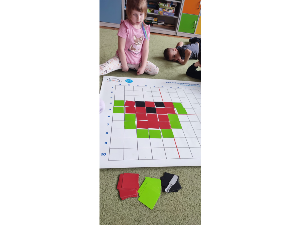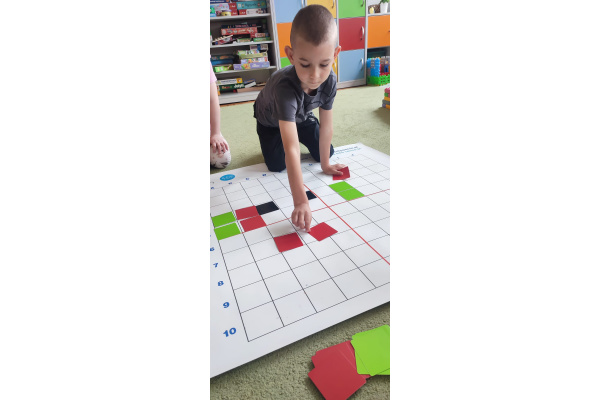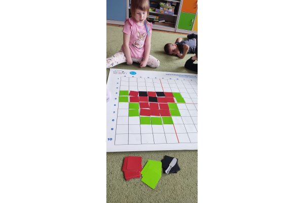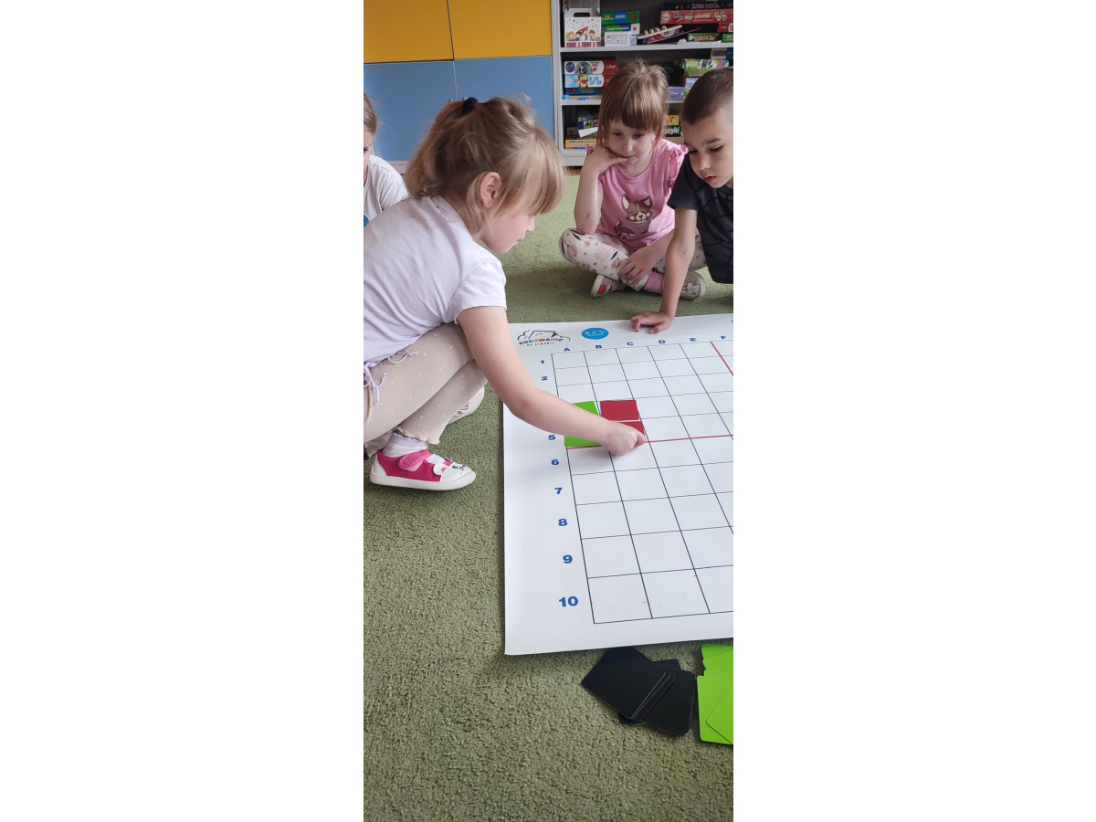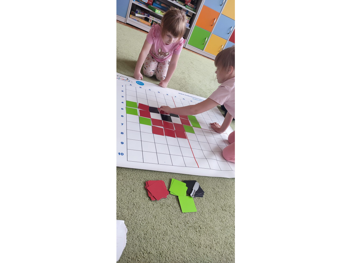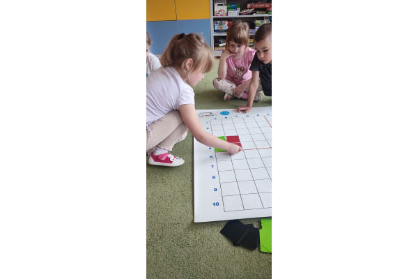 Kolorowe kropki po macie wędrowały, Posłuchaj uważnie i zaznacz, jak się przemieszczały.