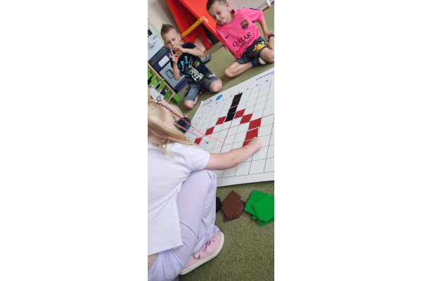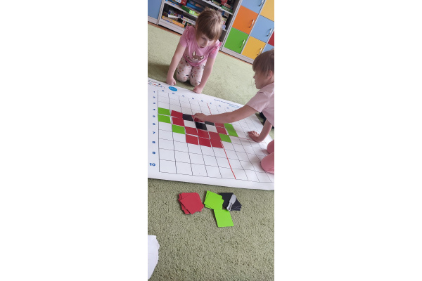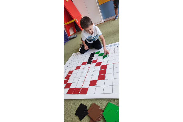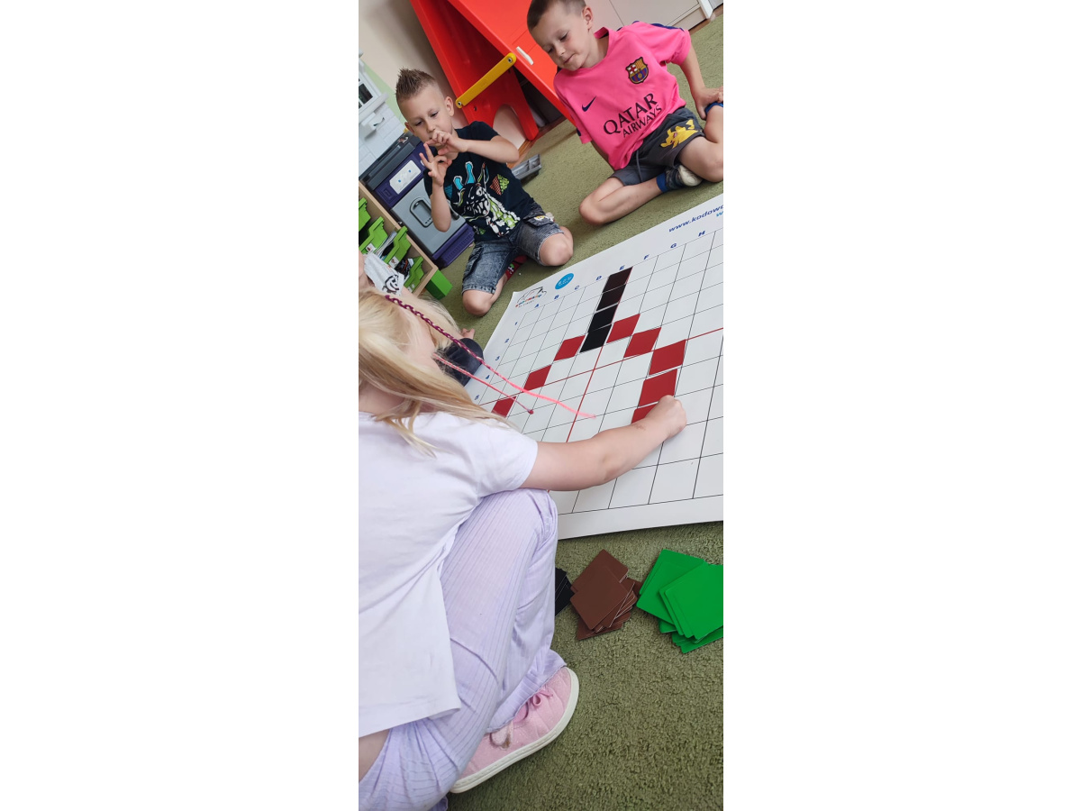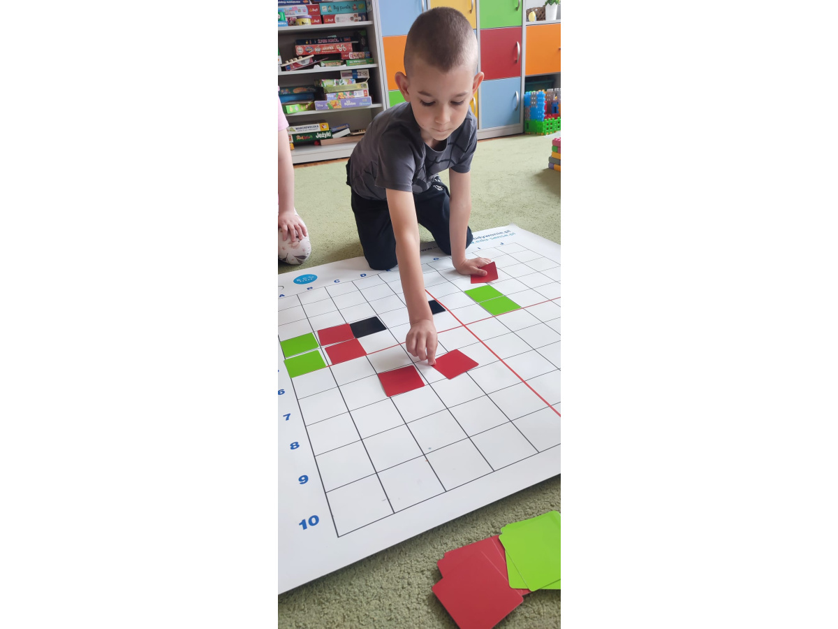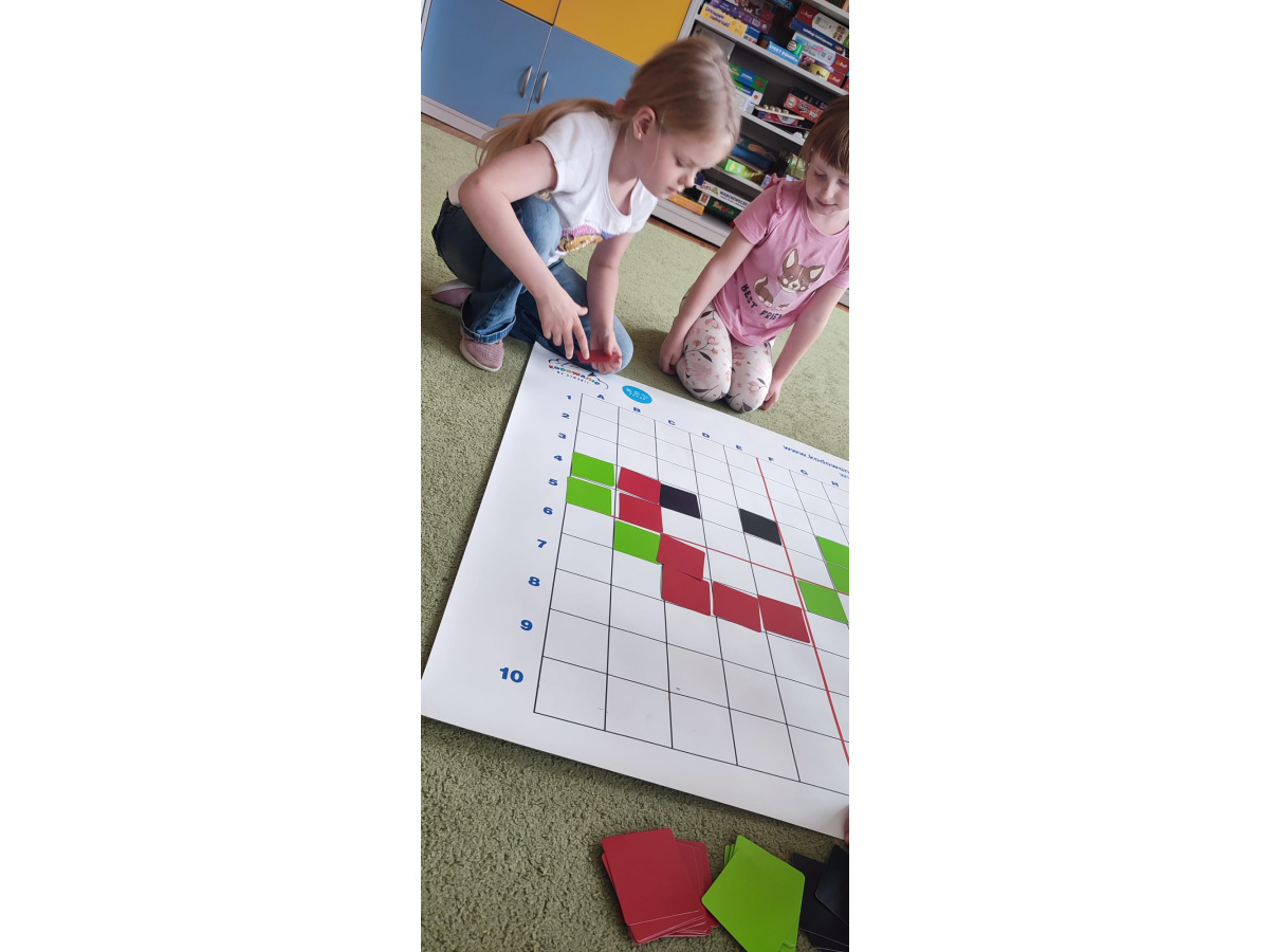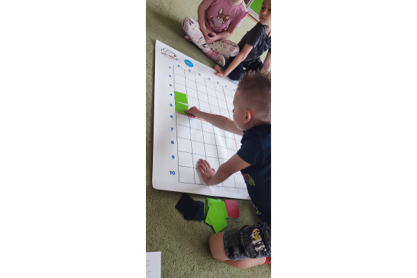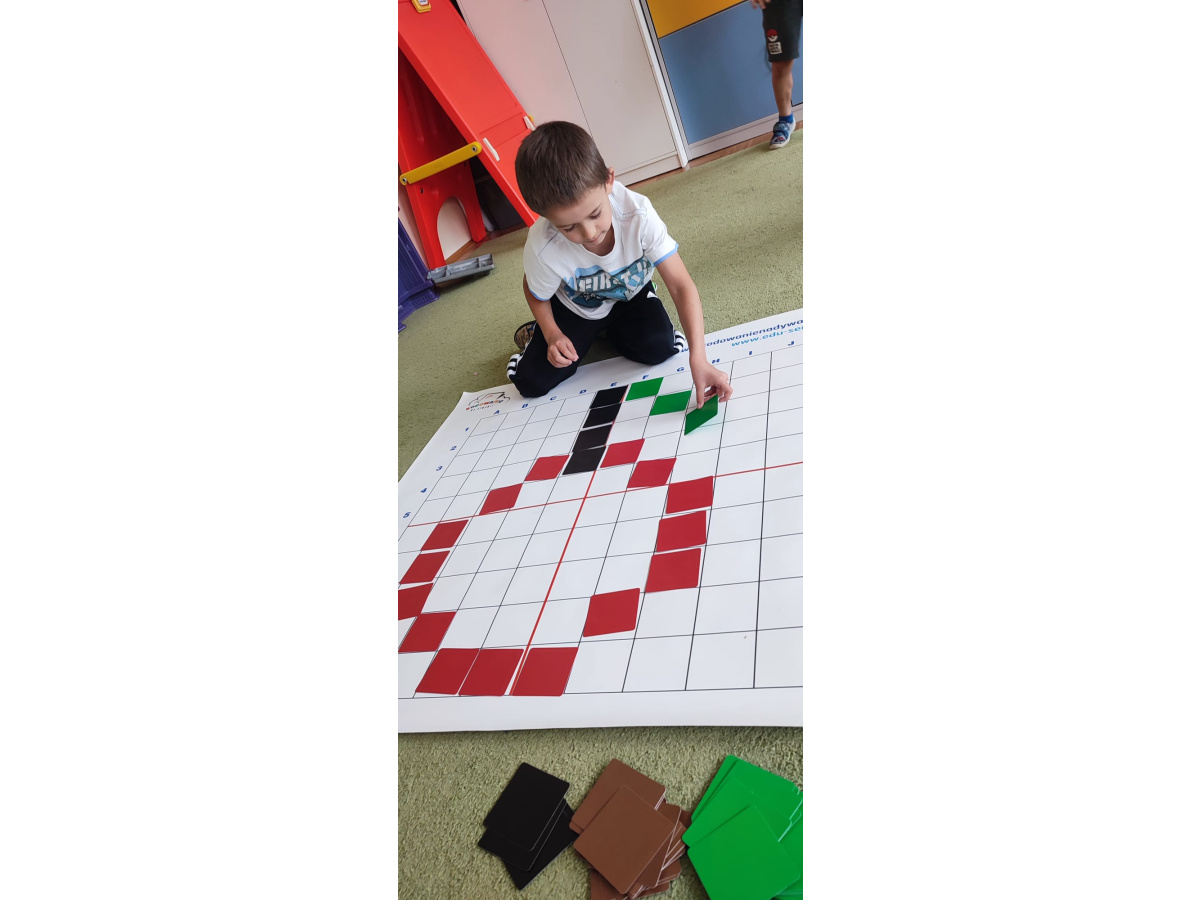 Kolorowe kropki po macie wędrowały, Posłuchaj uważnie i zaznacz, jak się przemieszczały.